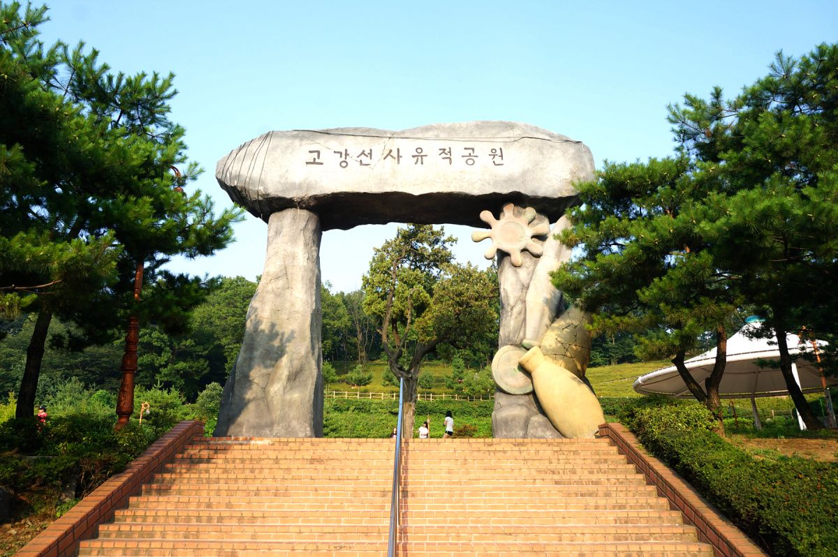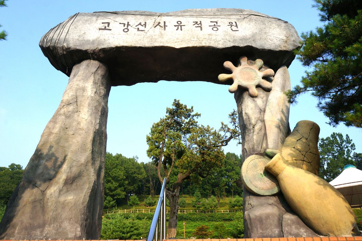 고강선사유적공원은 정문의 모양도 고인돌 모양을 하고 있습니다.