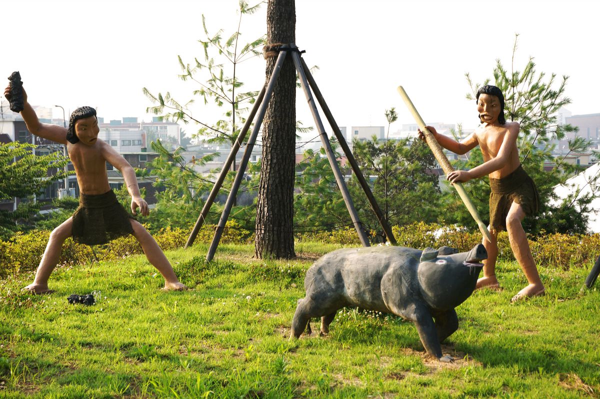 공원을 들어서면서 보이는 사냥을 하는 모형들은 석기시대를 재현해 놓은 것으로