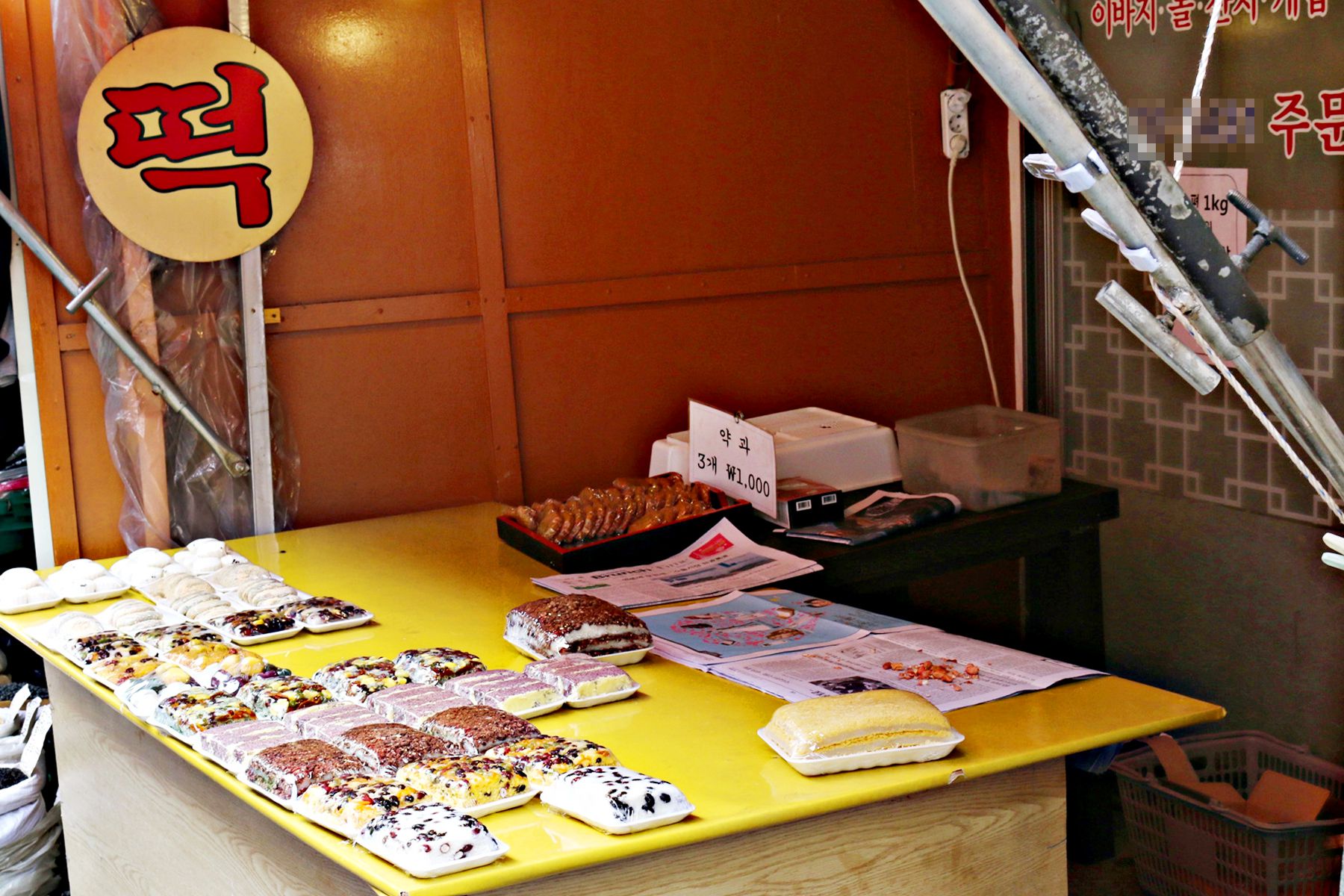 쫄깃쫄깃 막 뽑아낸 먹음직스러운 떡도 지나가는 손님의 발길을 잡고,