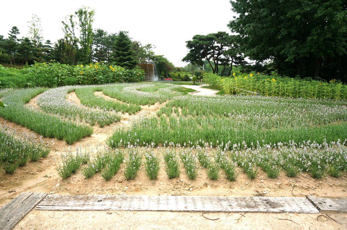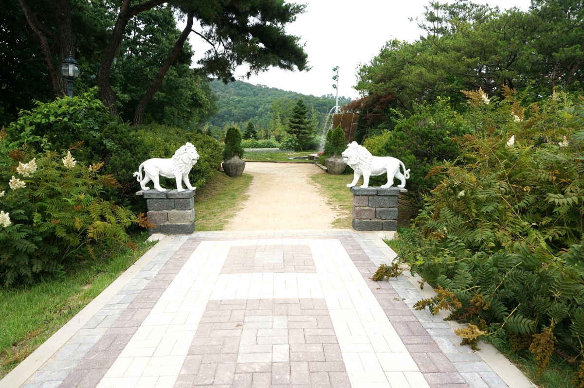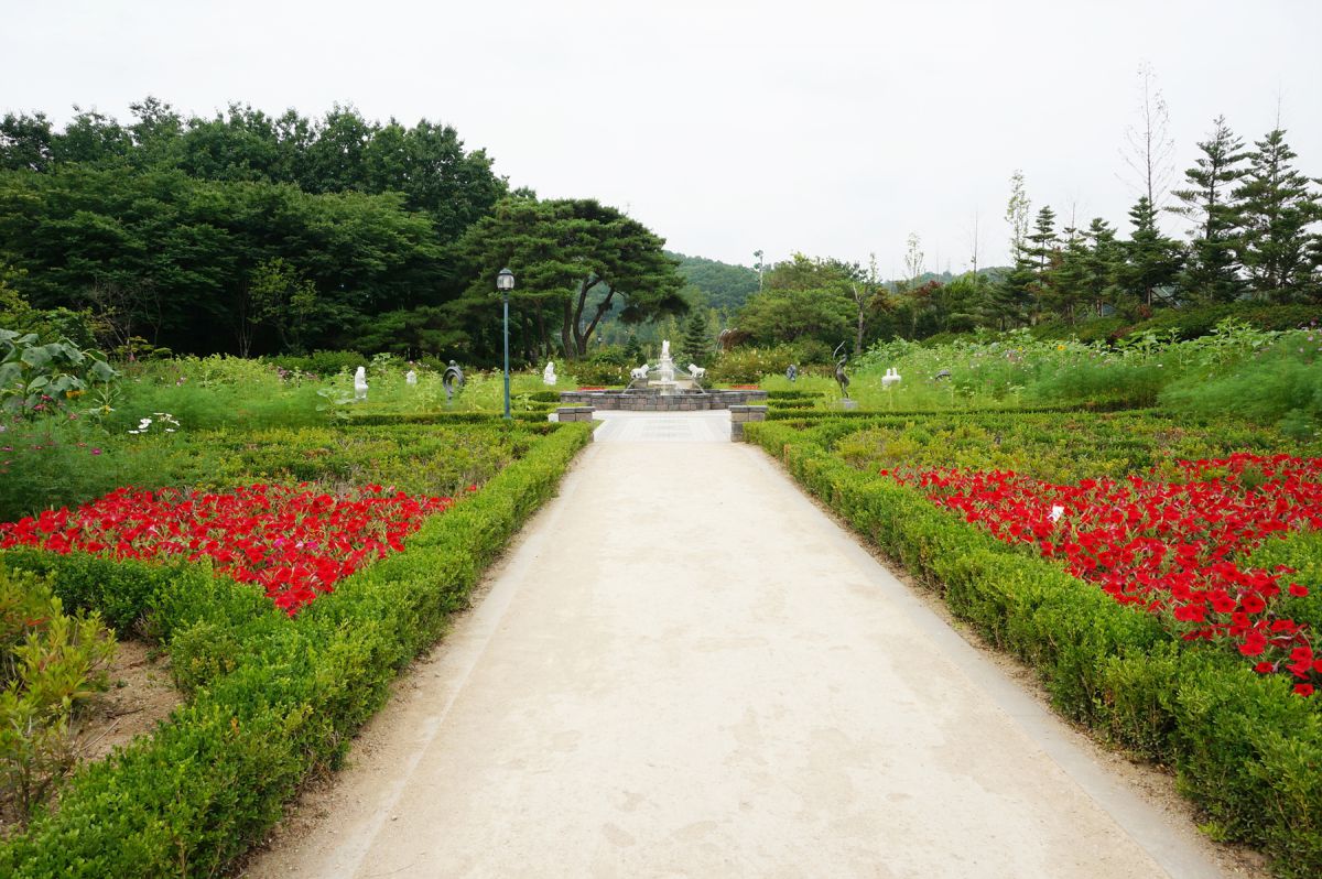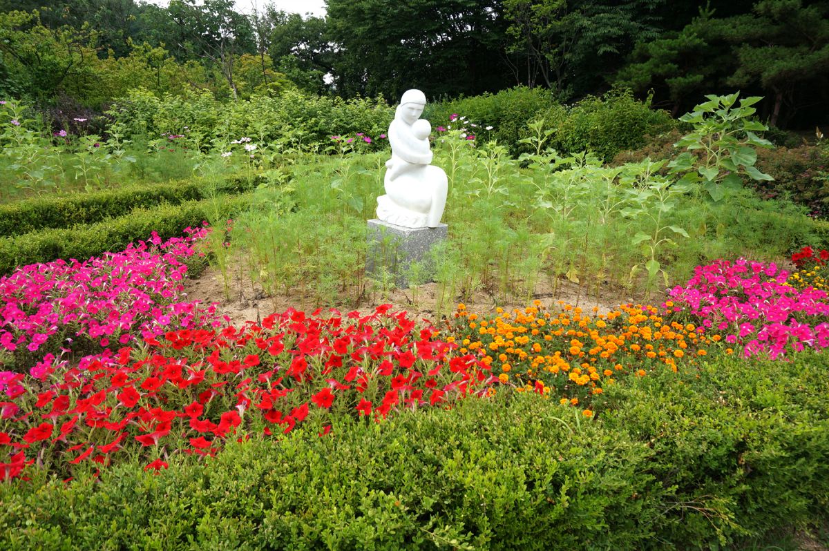 나무와 꽃과 조각품이 한 작품이 되어 이곳을 찾은 방문객에게 감동을 주고 있습니다.