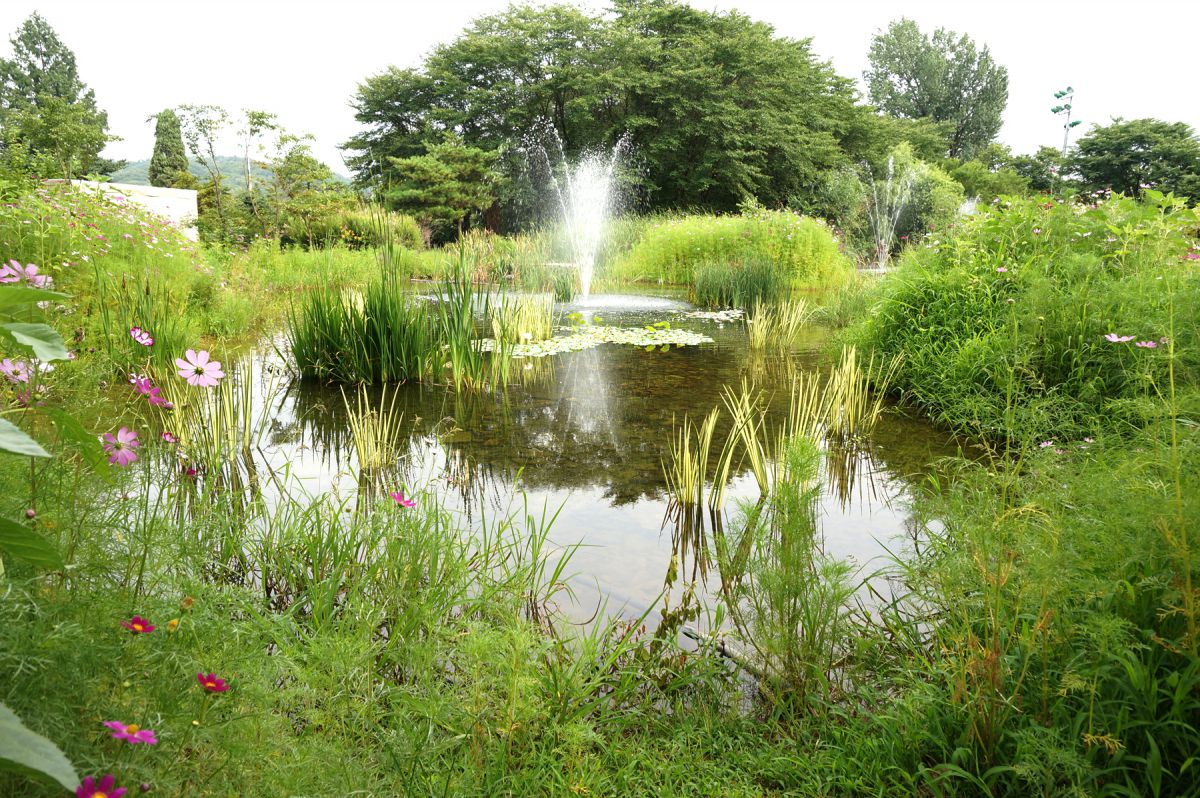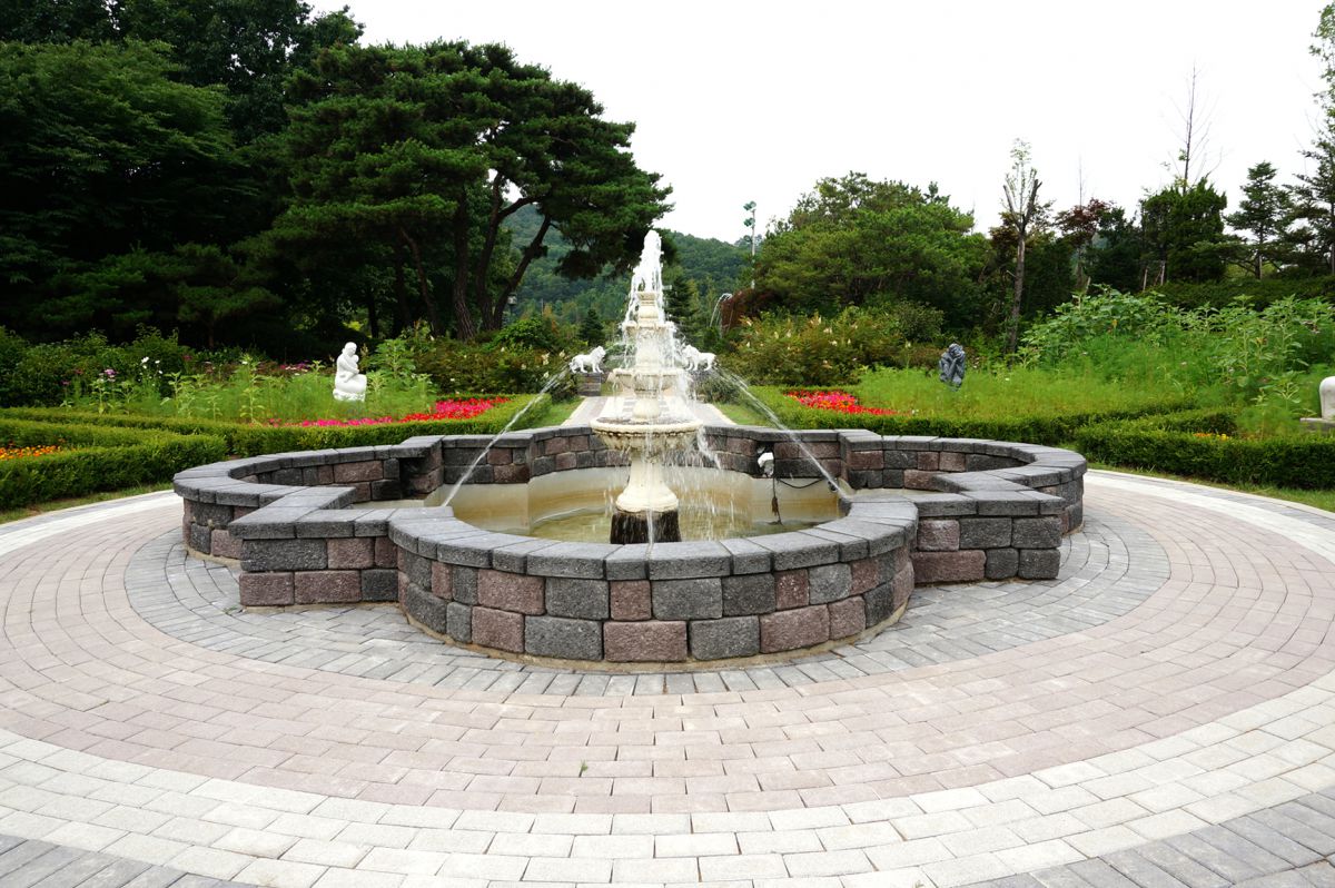 가운데 자리한 분수가 꽃들과 조화를 이뤄 아기자기한 정원의 모습을 완성하고 있습니다.