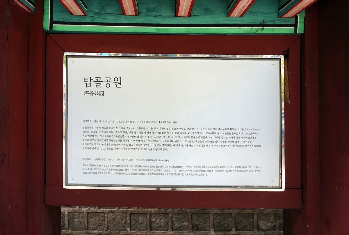 1991년에 탑골공원으로 이름이 바뀌었다고 합니다.
