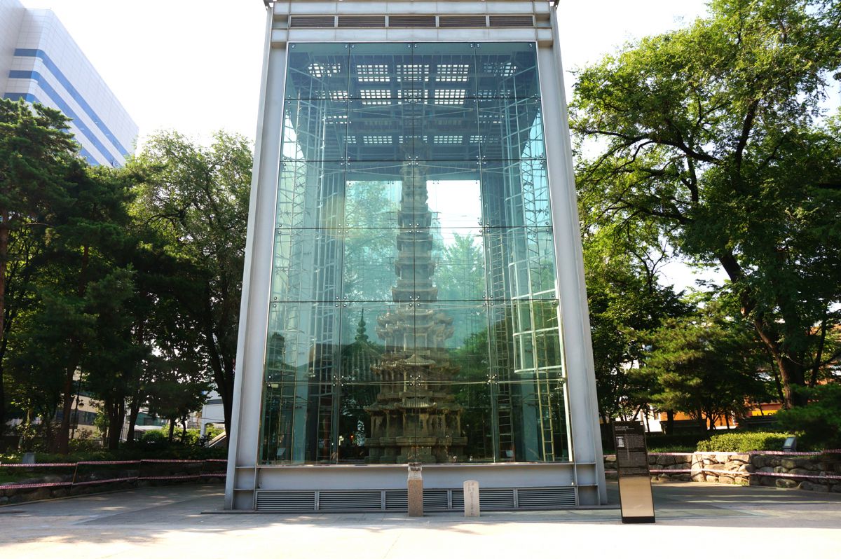 매연과 산성비로 인한 손상을 방지하기 위해 유리벽으로 보호하고 있습니다.