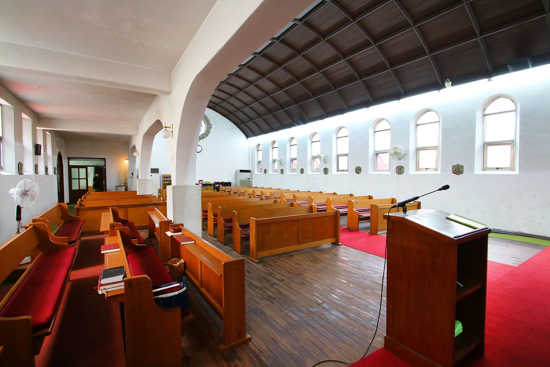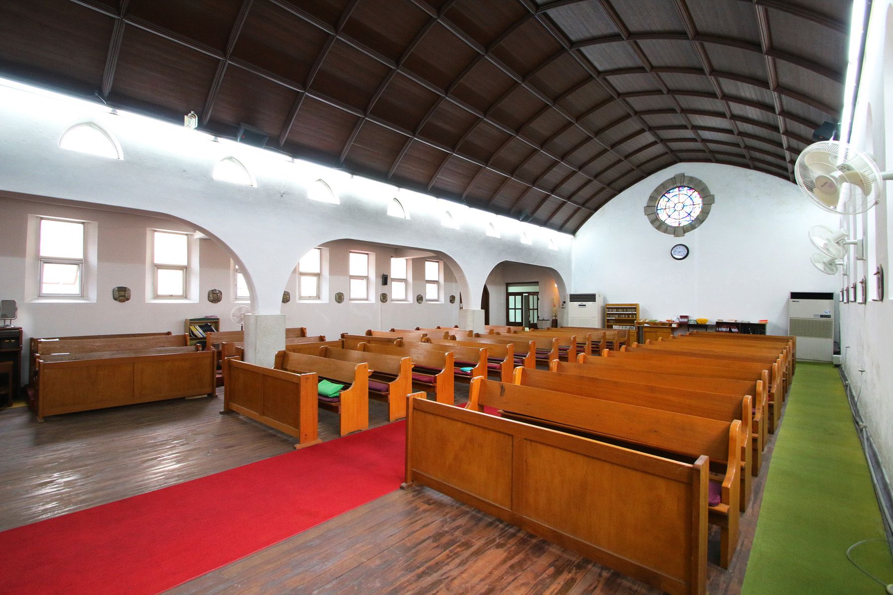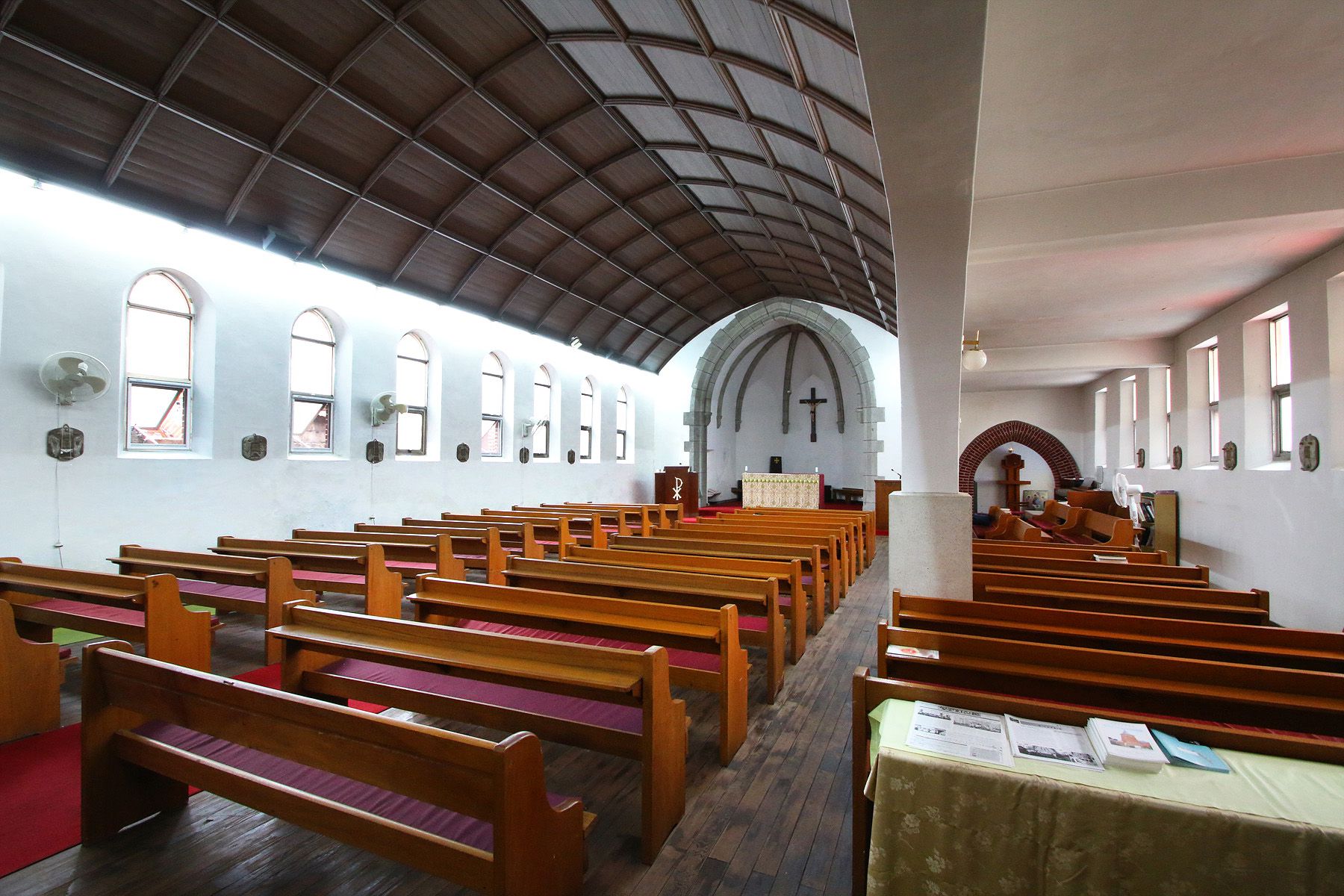 불을 켜지 않아도 창문으로 들어오는 빛으로 성당 내부에서