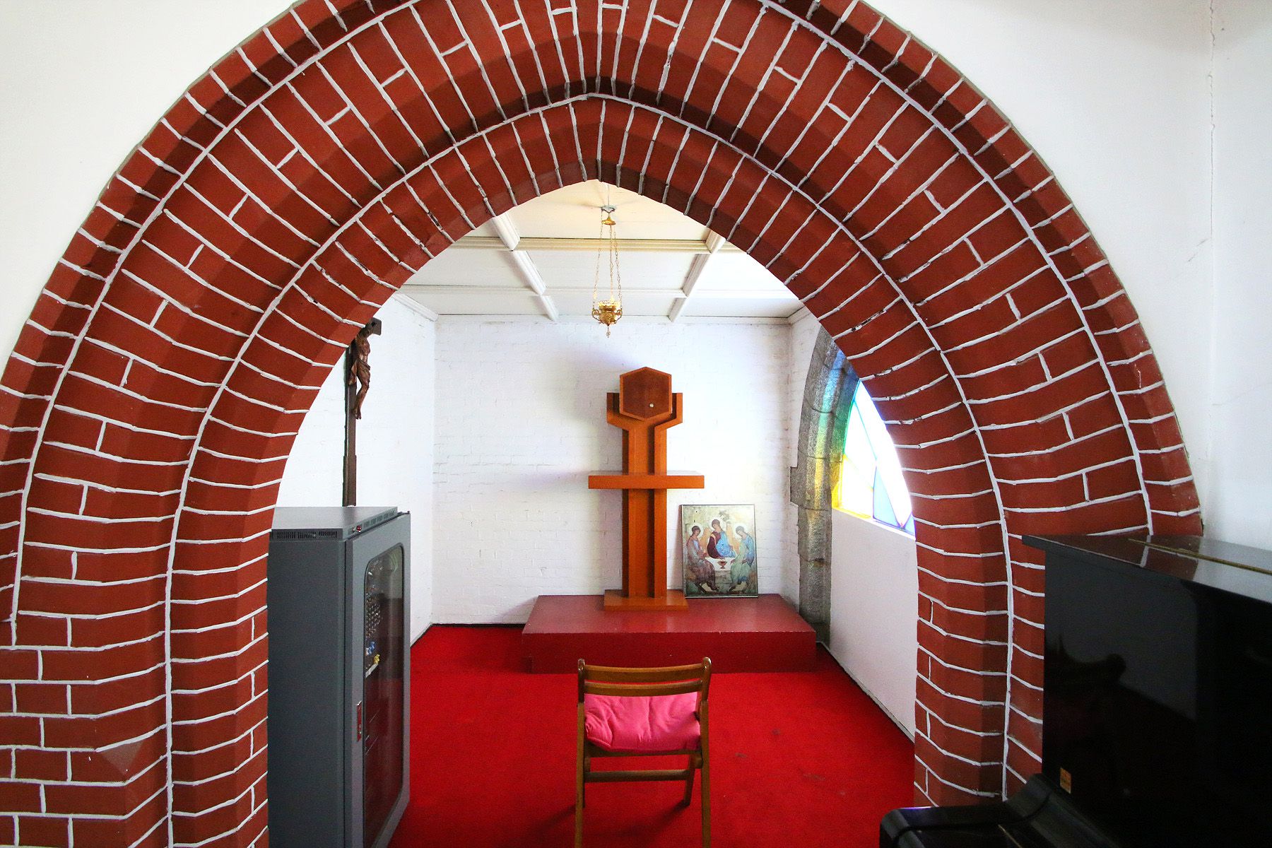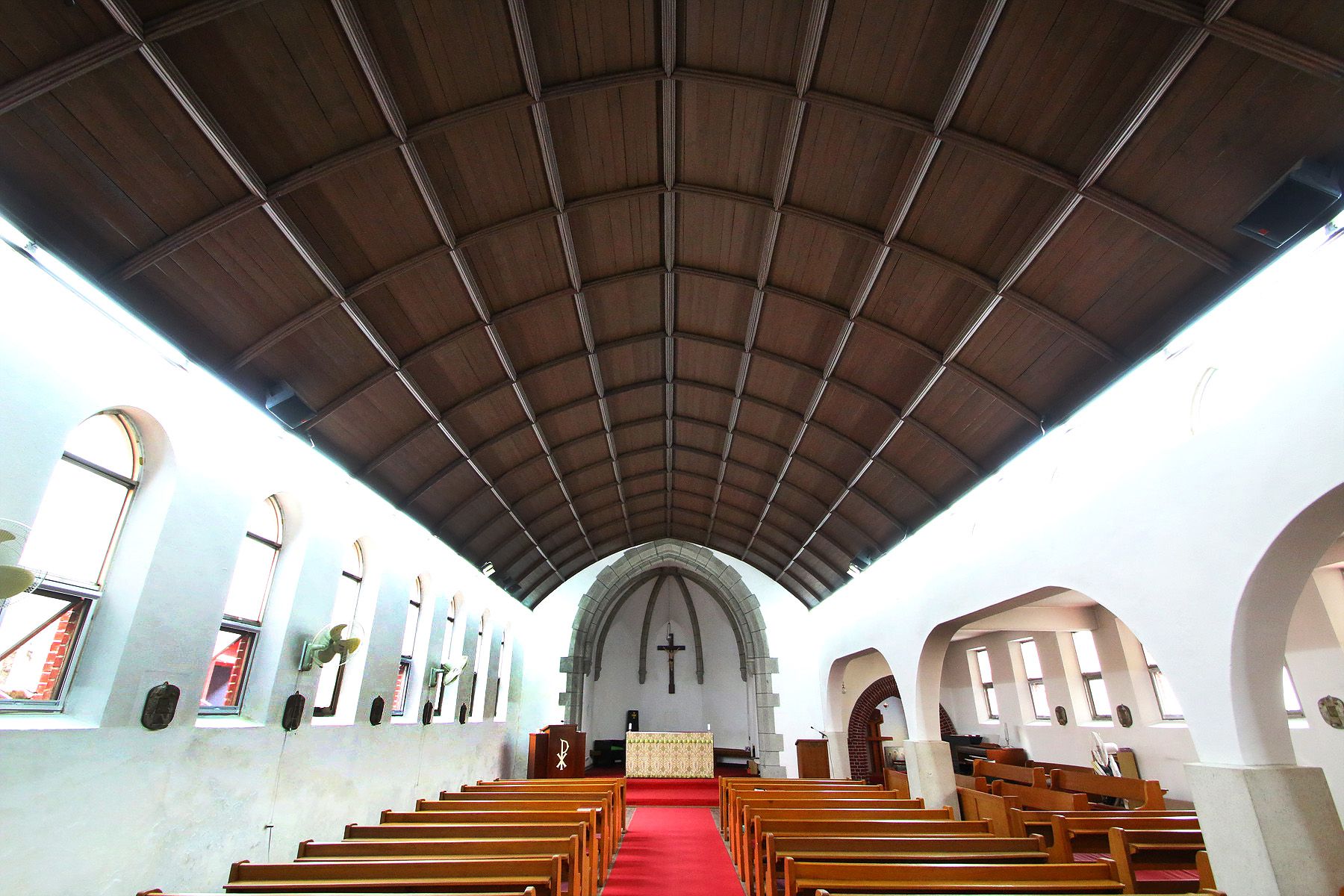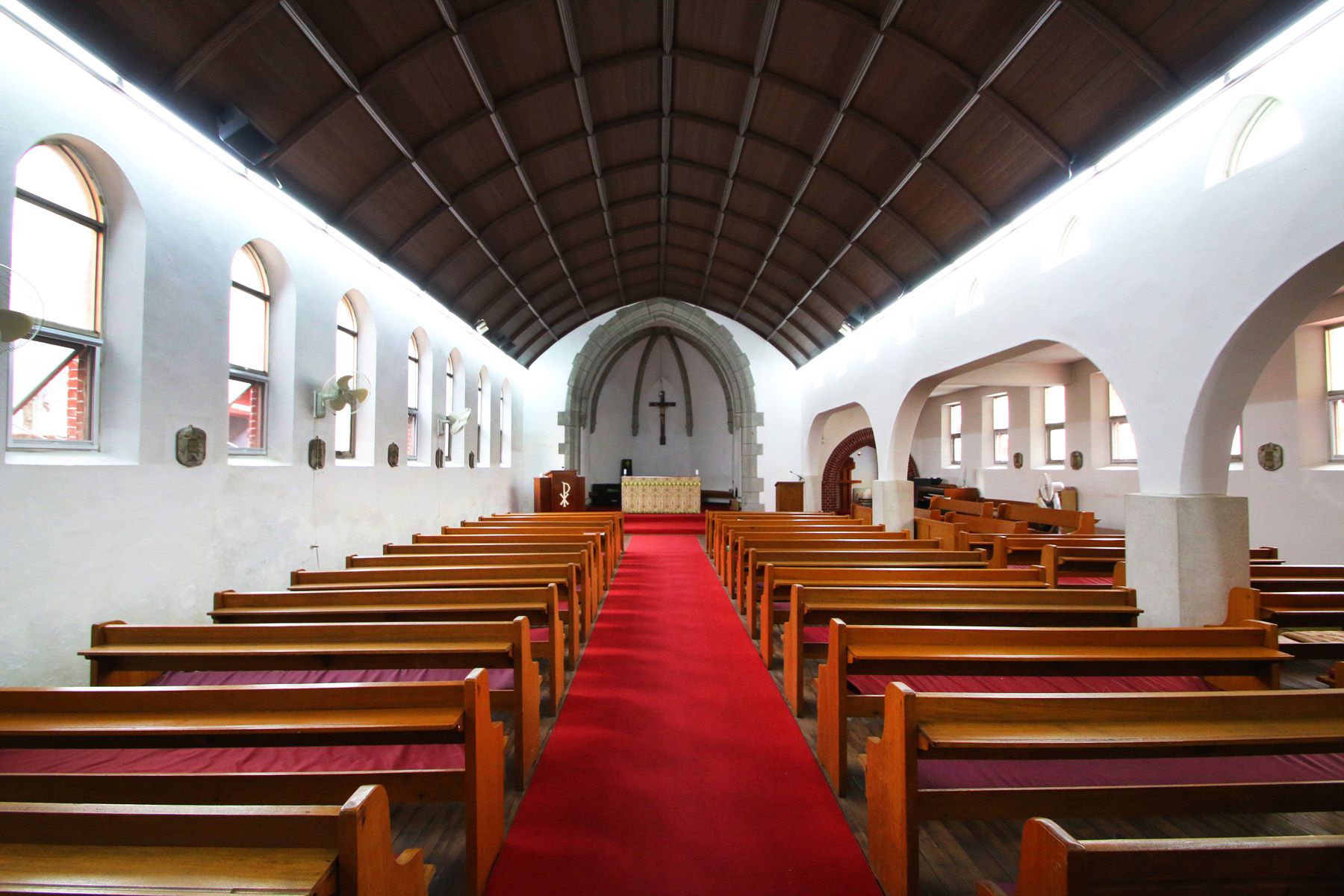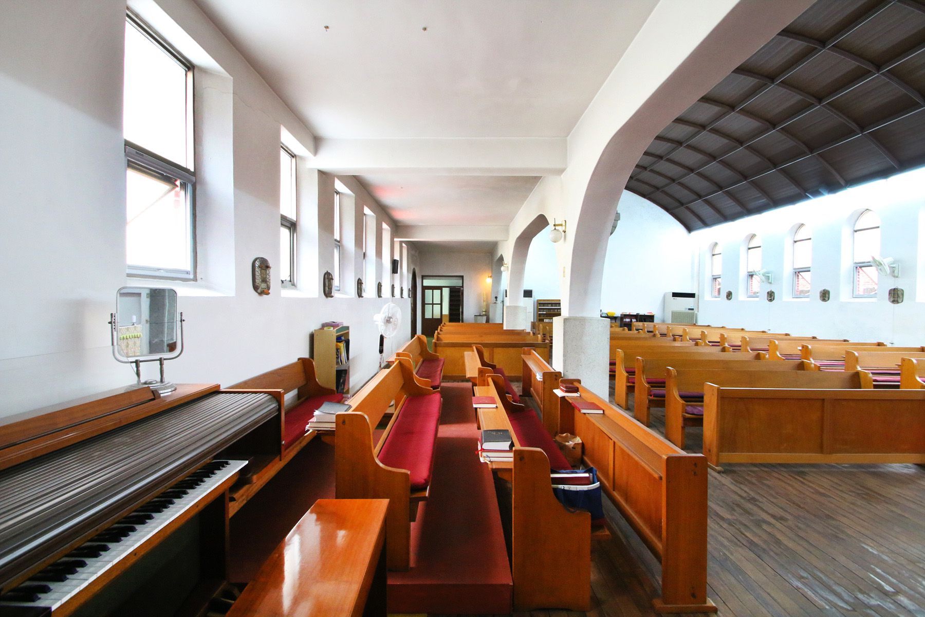 불을 켜지 않아도 창문으로 들어오는 빛으로 성당 내부에서