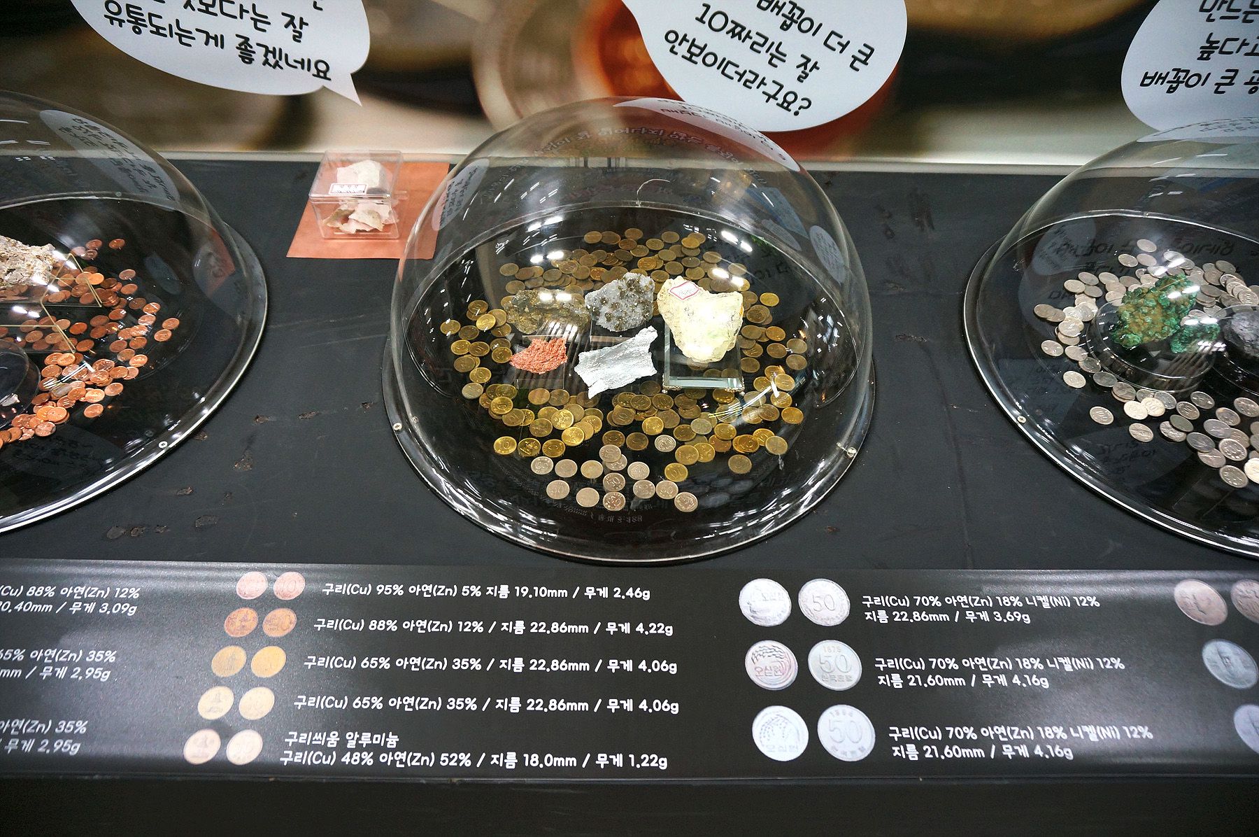 동전을 만드는 광석이 전시되어 있어