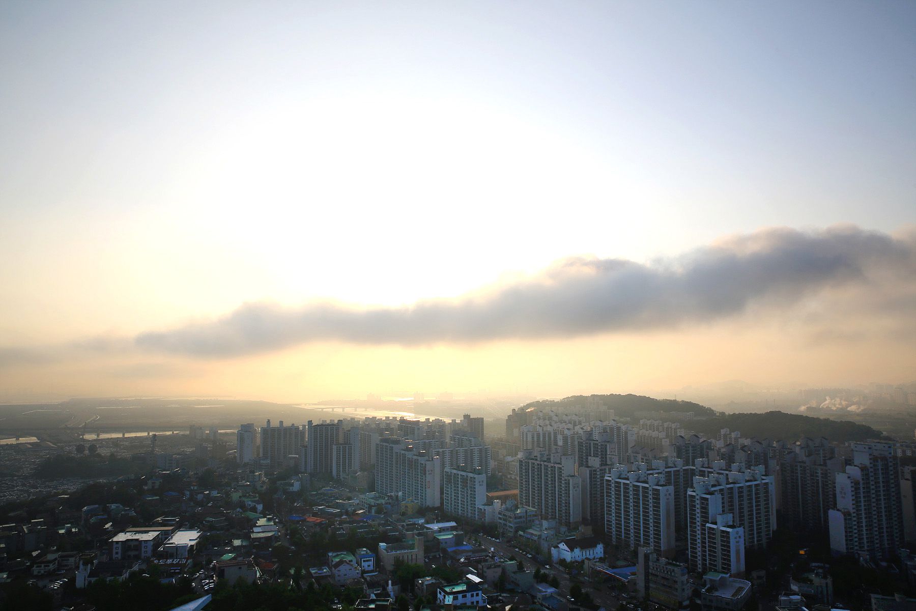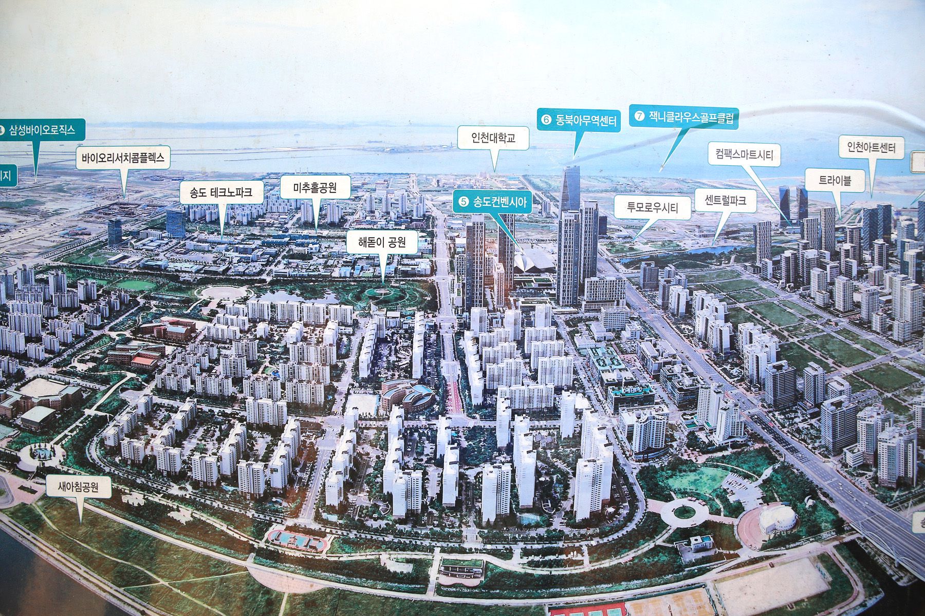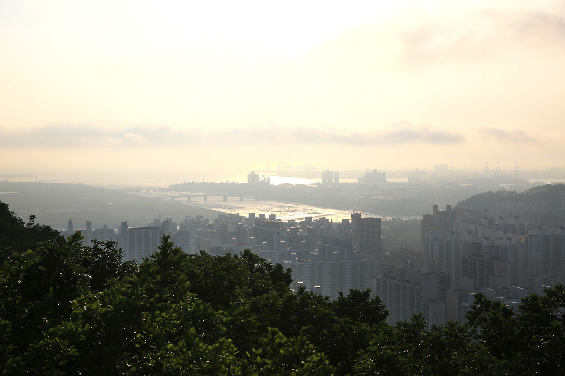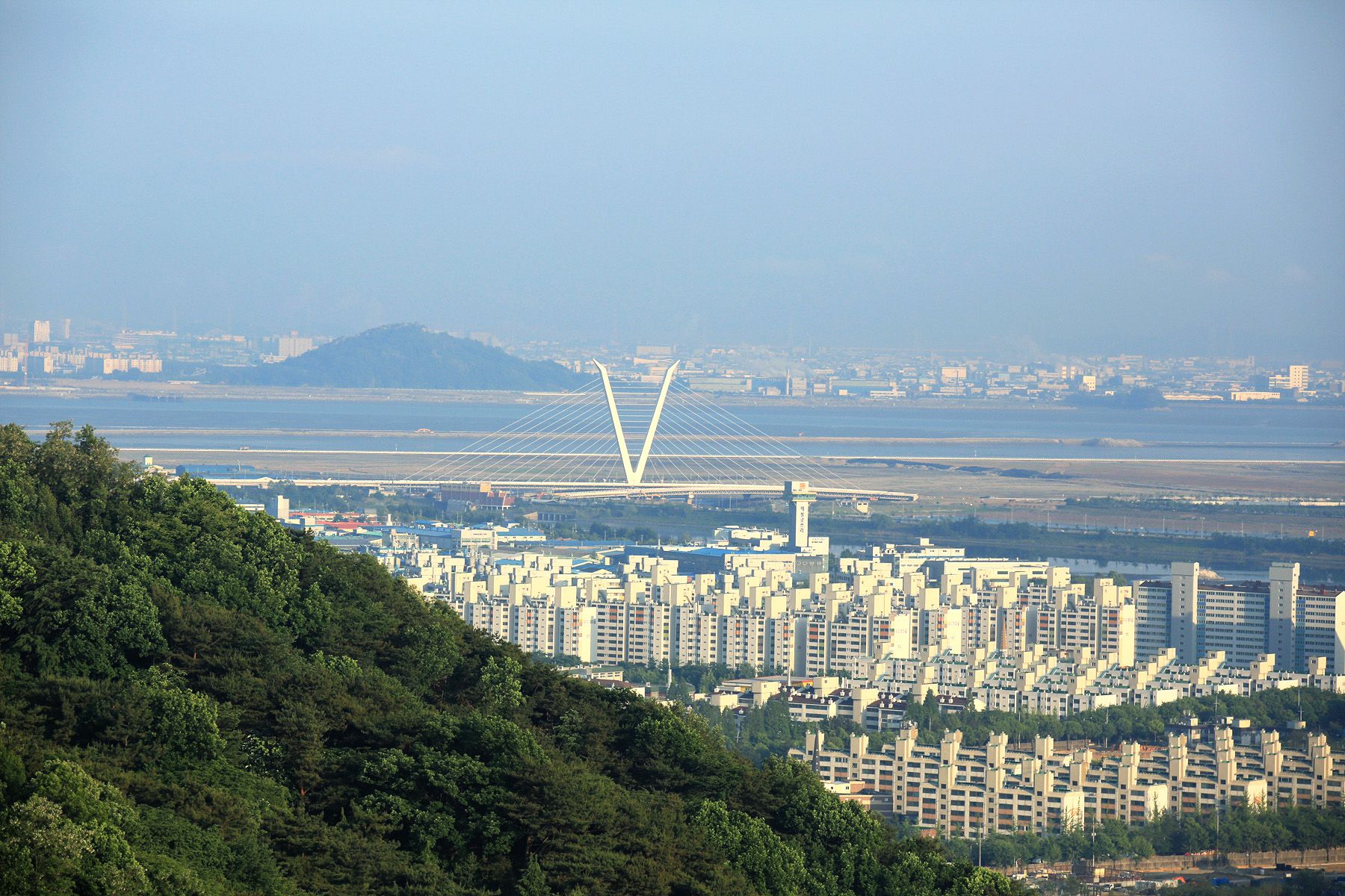 정상에서는 송도 신도시와 인천대교를 한눈에 조망할 수 있습니다.