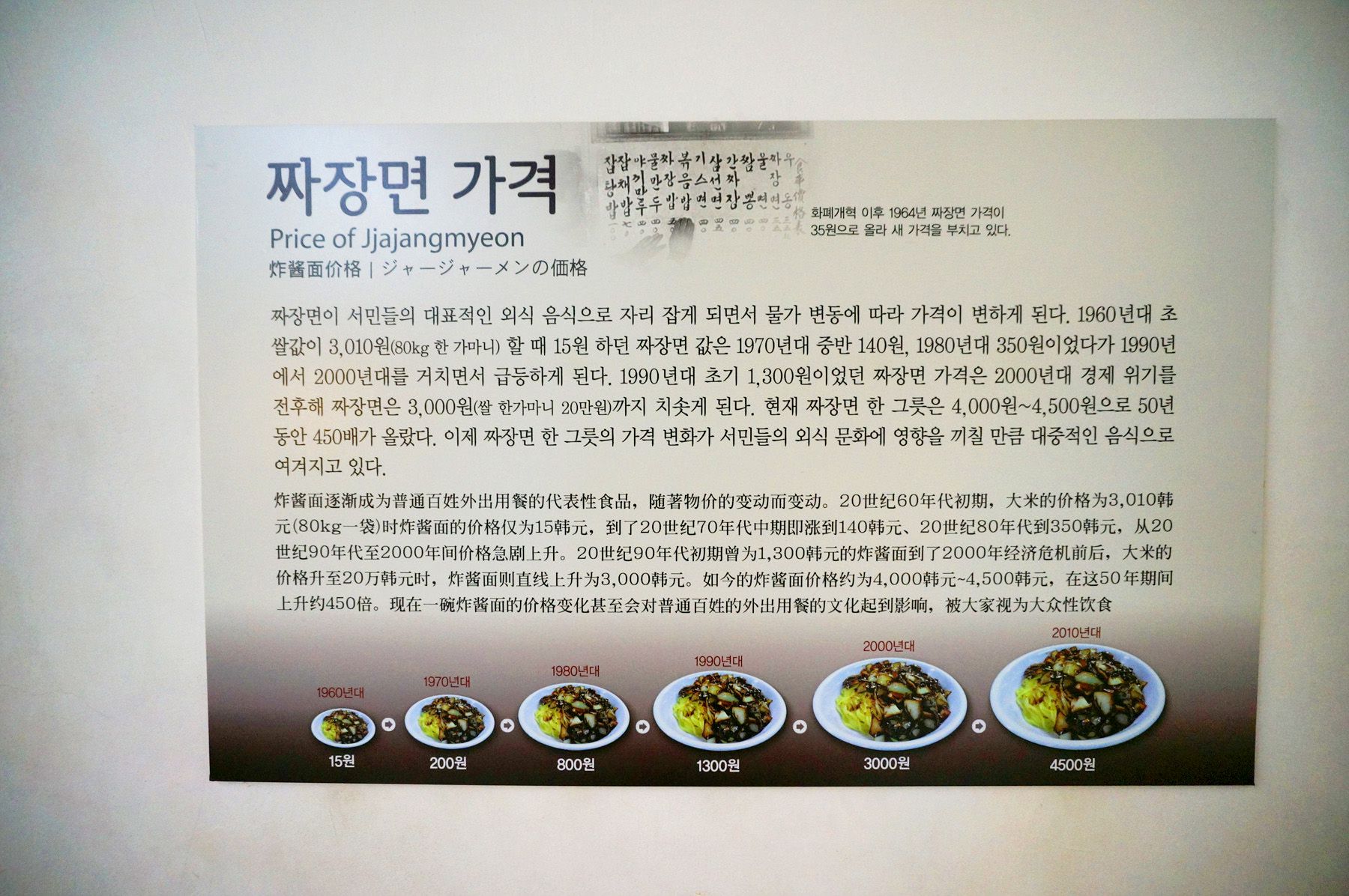 짜장면의 역사와 함께 짜장면 조리법도 배울 수 있어 흥미롭습니다.
