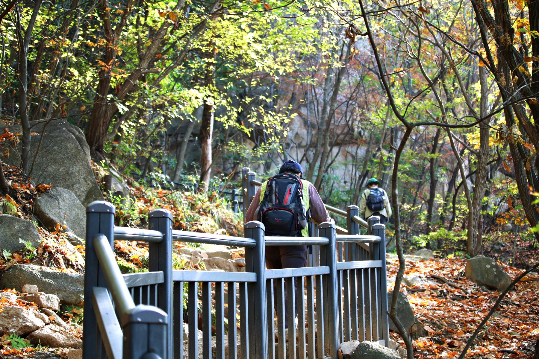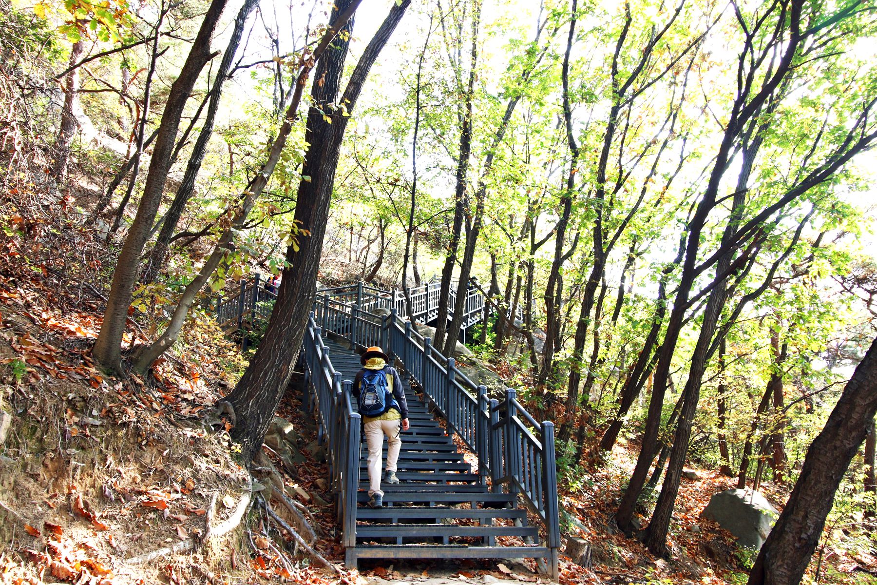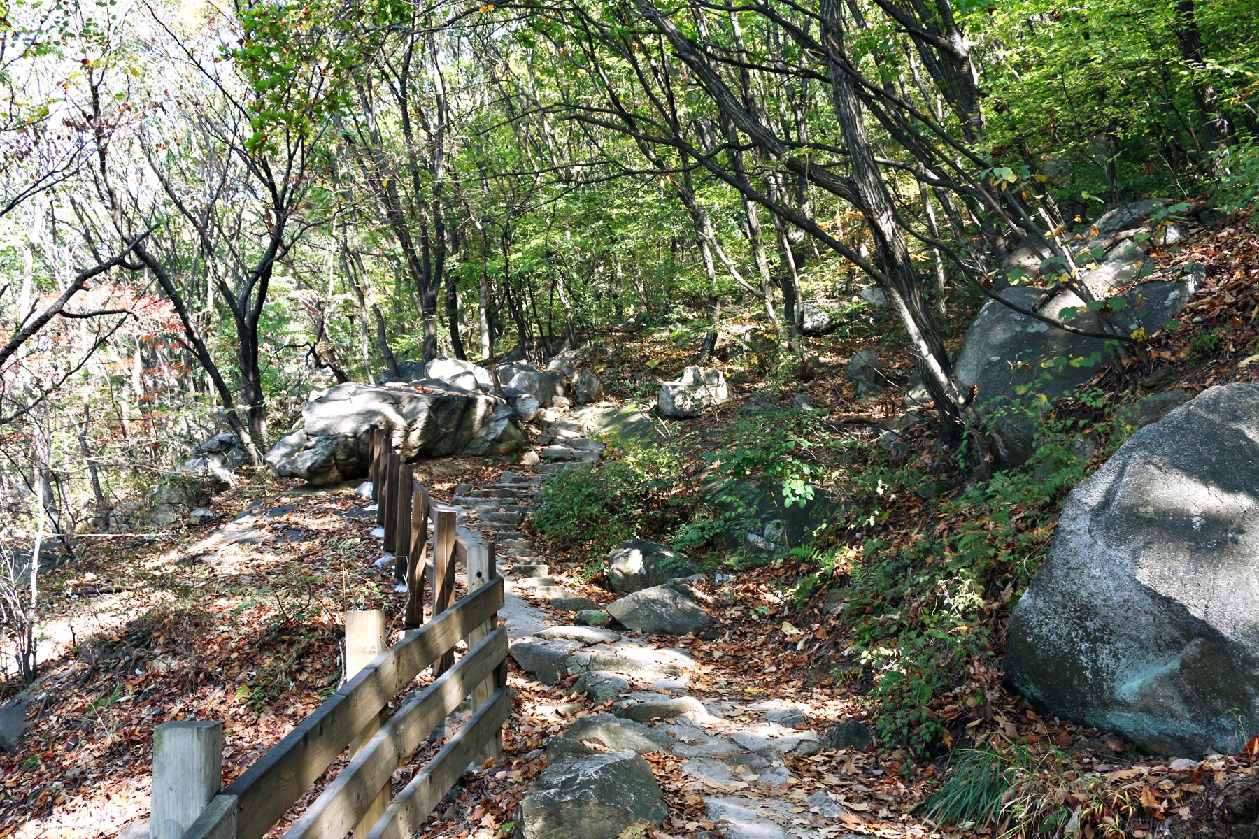 바위산이지만 산길은 완만하고 잘 닦여 있으며 남녀노소 어렵지 않게 산을 오를 수 있습니다.