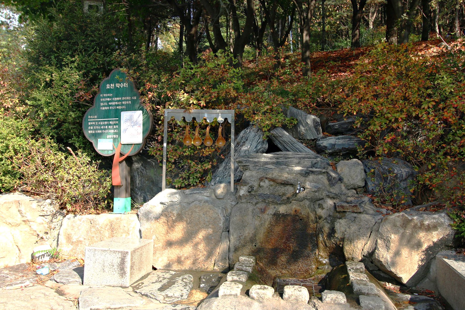 벽산아파트 5단지 산길에 위치한 호천 약수터는 동네 주민들의 쉼터이자
