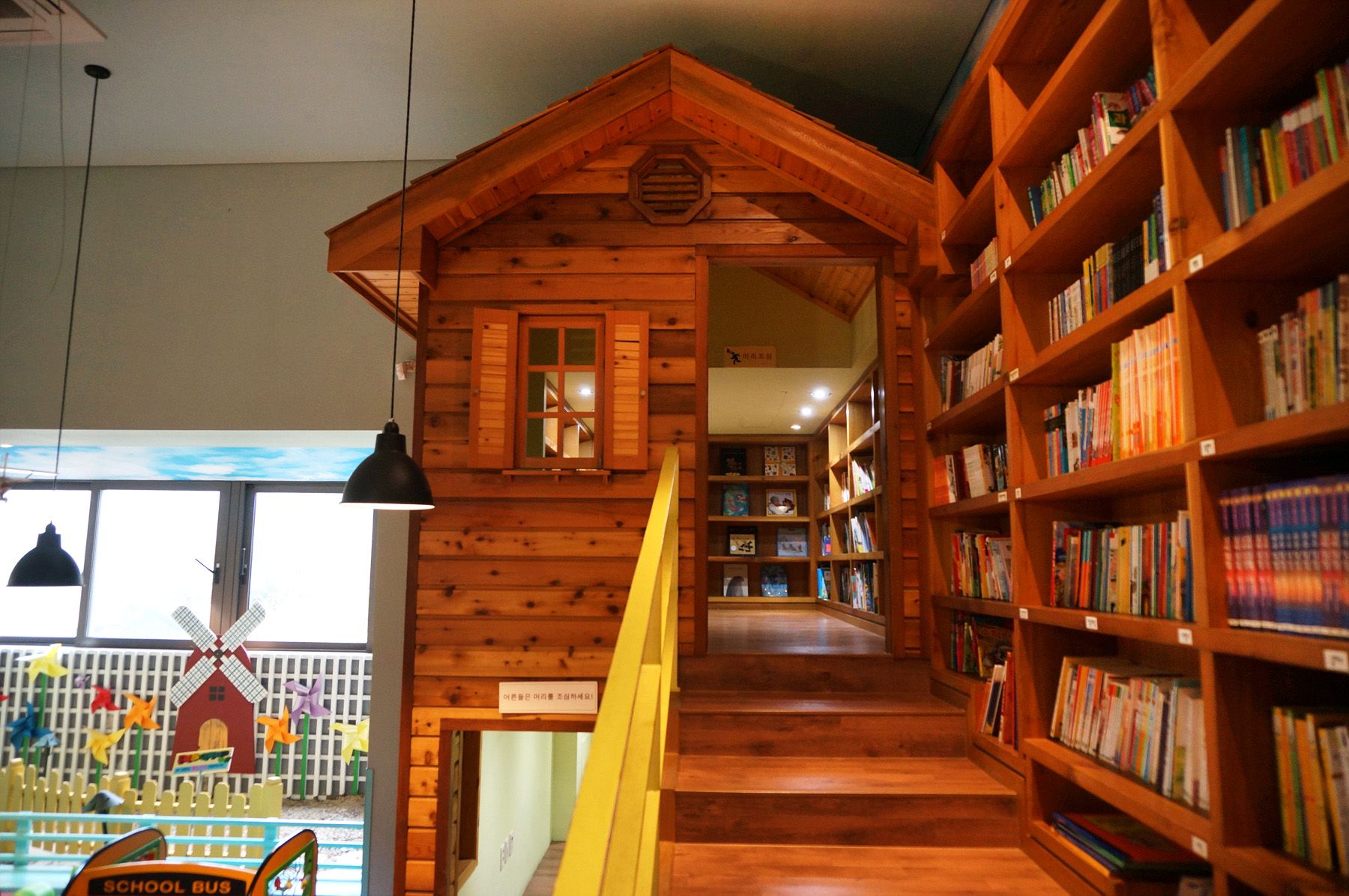 아이들이 안전하고 재미지게 즐겨 볼 수 있을법한 놀이시설과 함께 3,000여권의 책이 전시되어 있는 공간이 마련되어 있습니다.