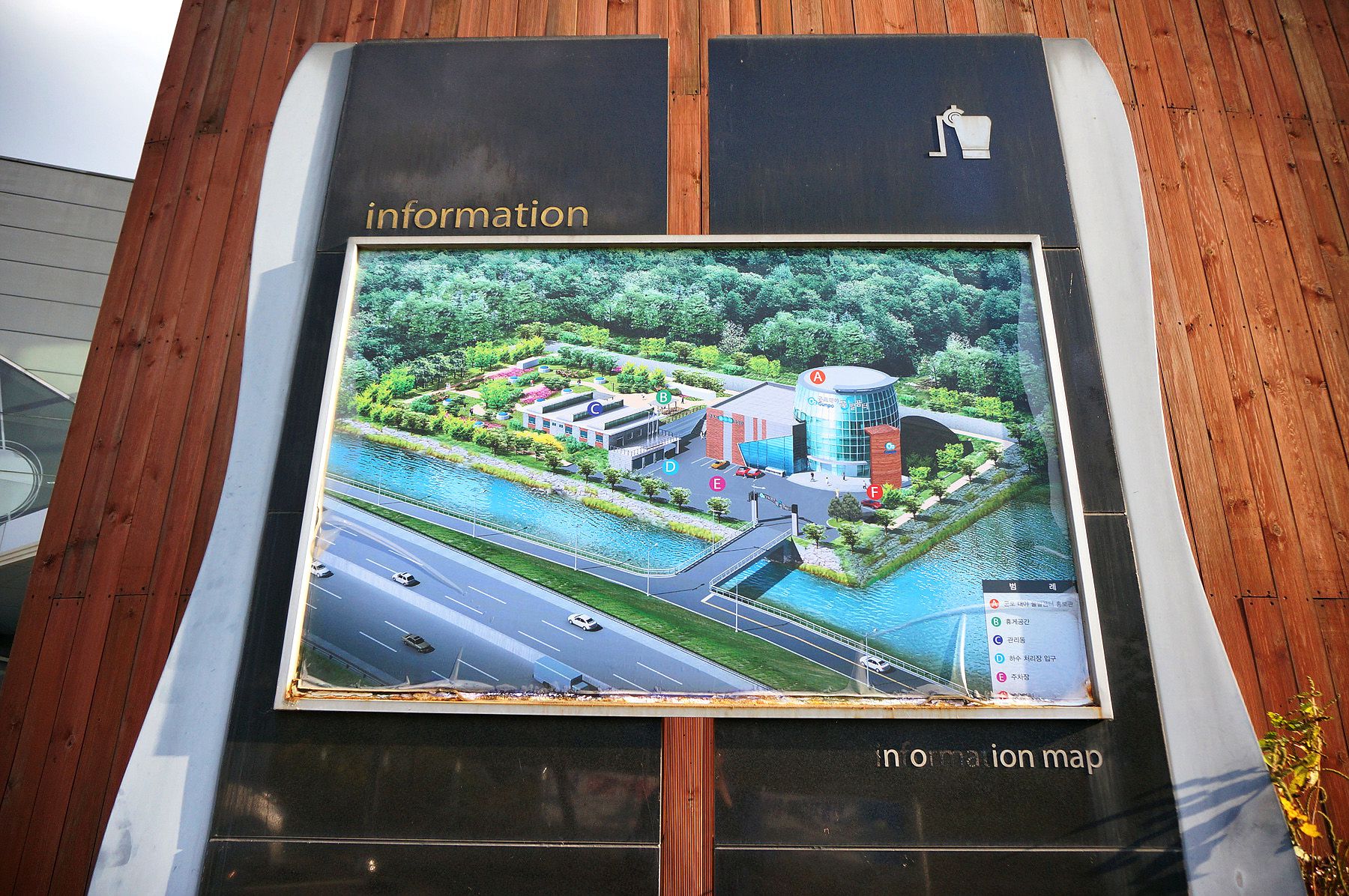 물말끔터는 물말끔터 홍보관과 휴게공간, 관리동, 하수처리장 입구, 주차장 등으로 구성되었으며,