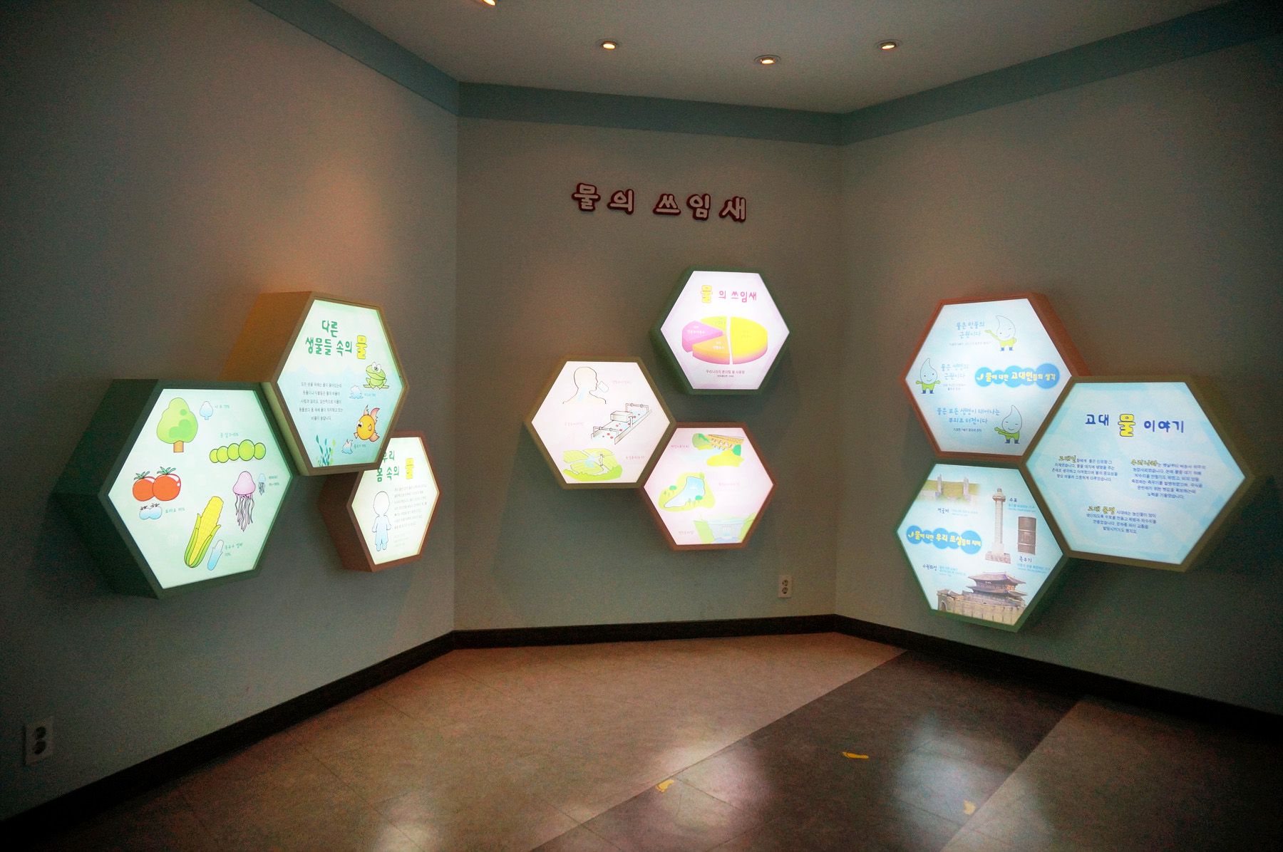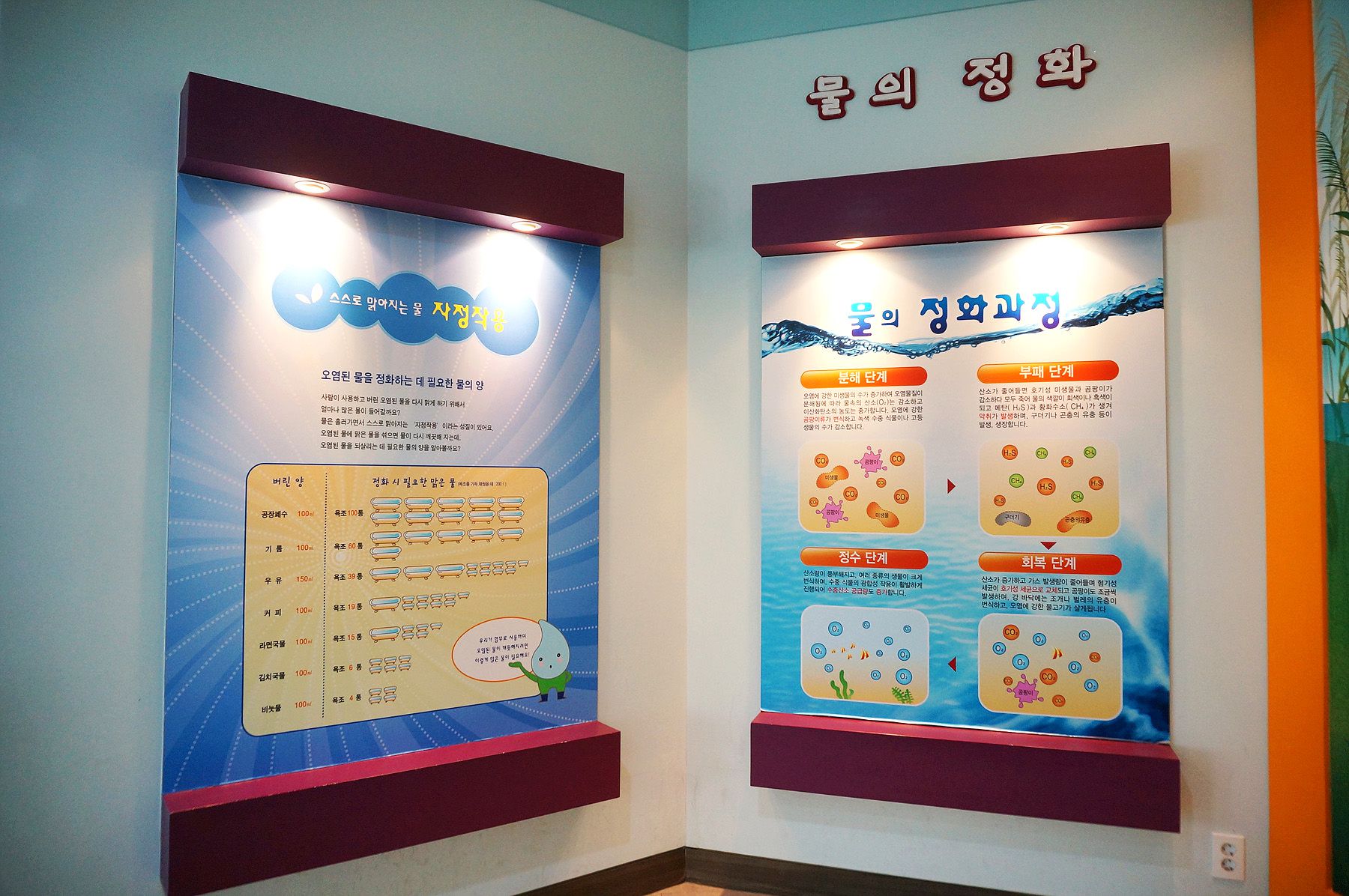 에코 갤러리(물과 환경을 주제로 그림, 시화, 사진 등을 전시한 공간)로 구성되어 있습니다.