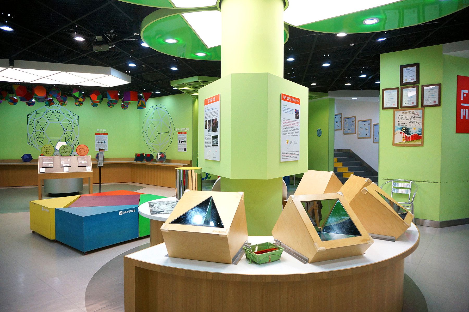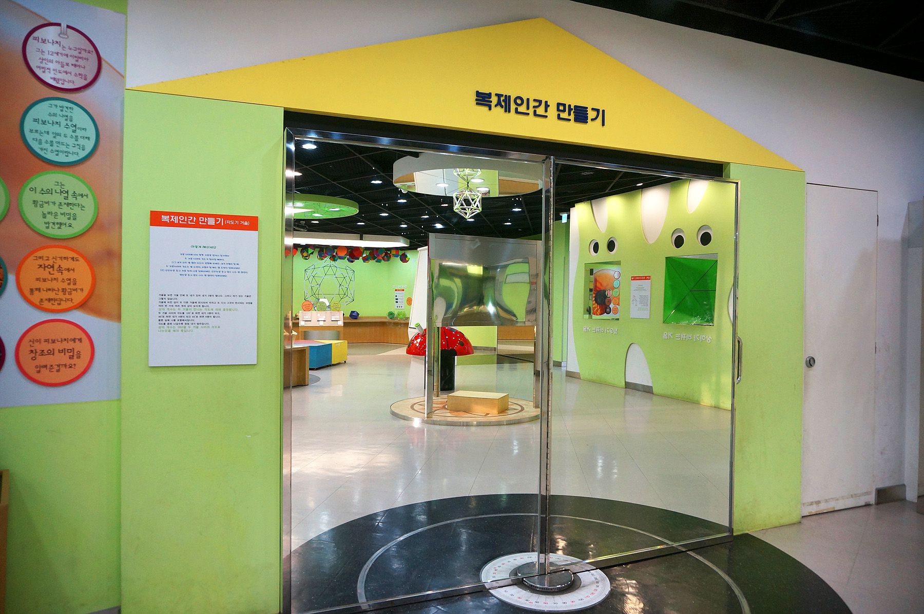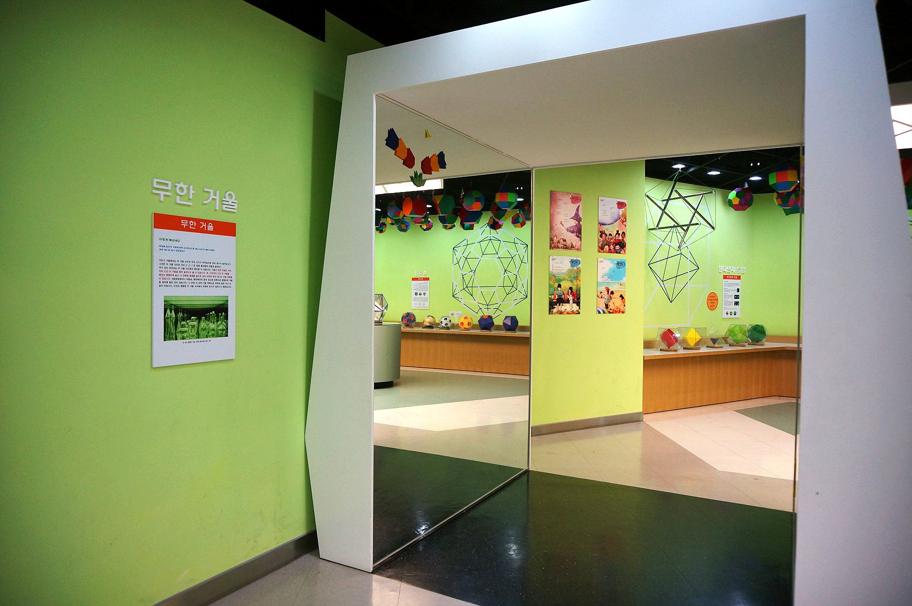 원기둥 거울, 다면체 거울, 각의 3등분 자, 키 재는 황금비자 등이며 직접 체험해 볼 수 있습니다.