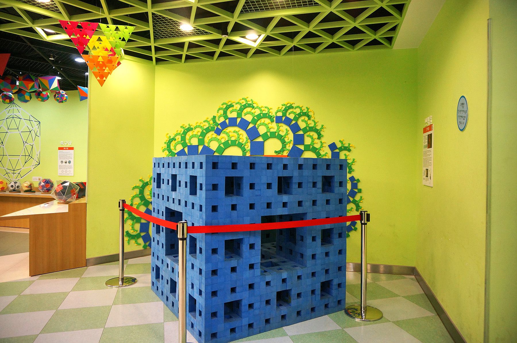 전시 교구는 화전체 관찰기, 무한 터널, 복제 거울, 맹거스펀지, 삼각 거울, 피타고라스 의자, 대칭 거울, 원뿔 거울,