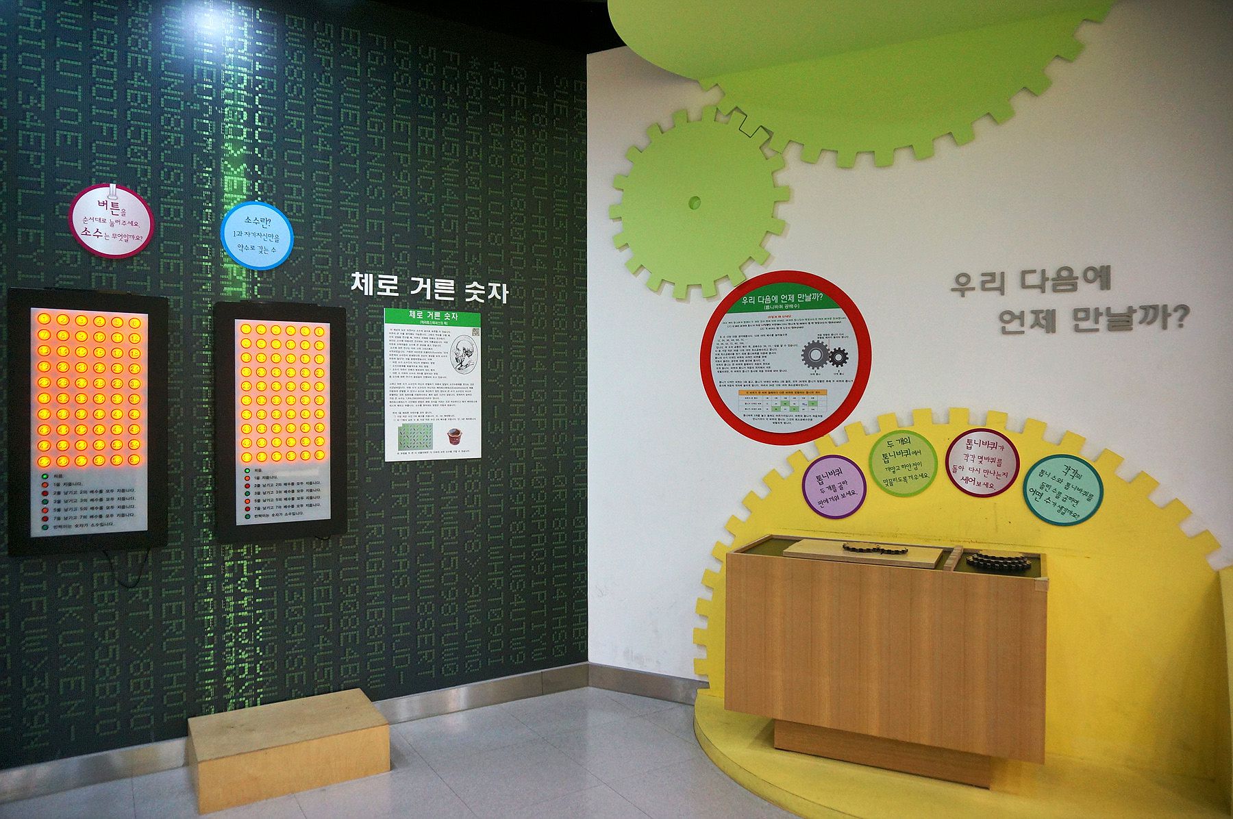 이진법 키재기, 피타고라스 음계, 공배수 찾는 톱니바퀴 등을 만날 수가 있습니다.