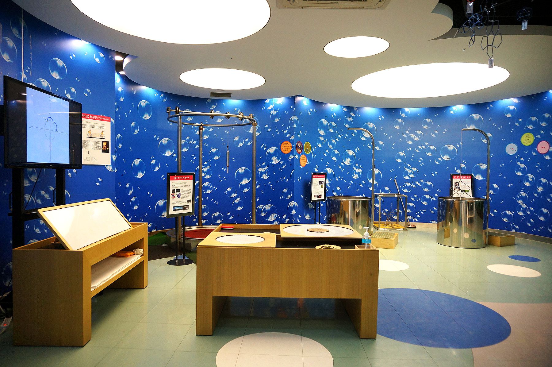 체험관에서는 전문 큐레이터가 전시물을 따라서 이동하면서 원리와 교구의 사용법 등을