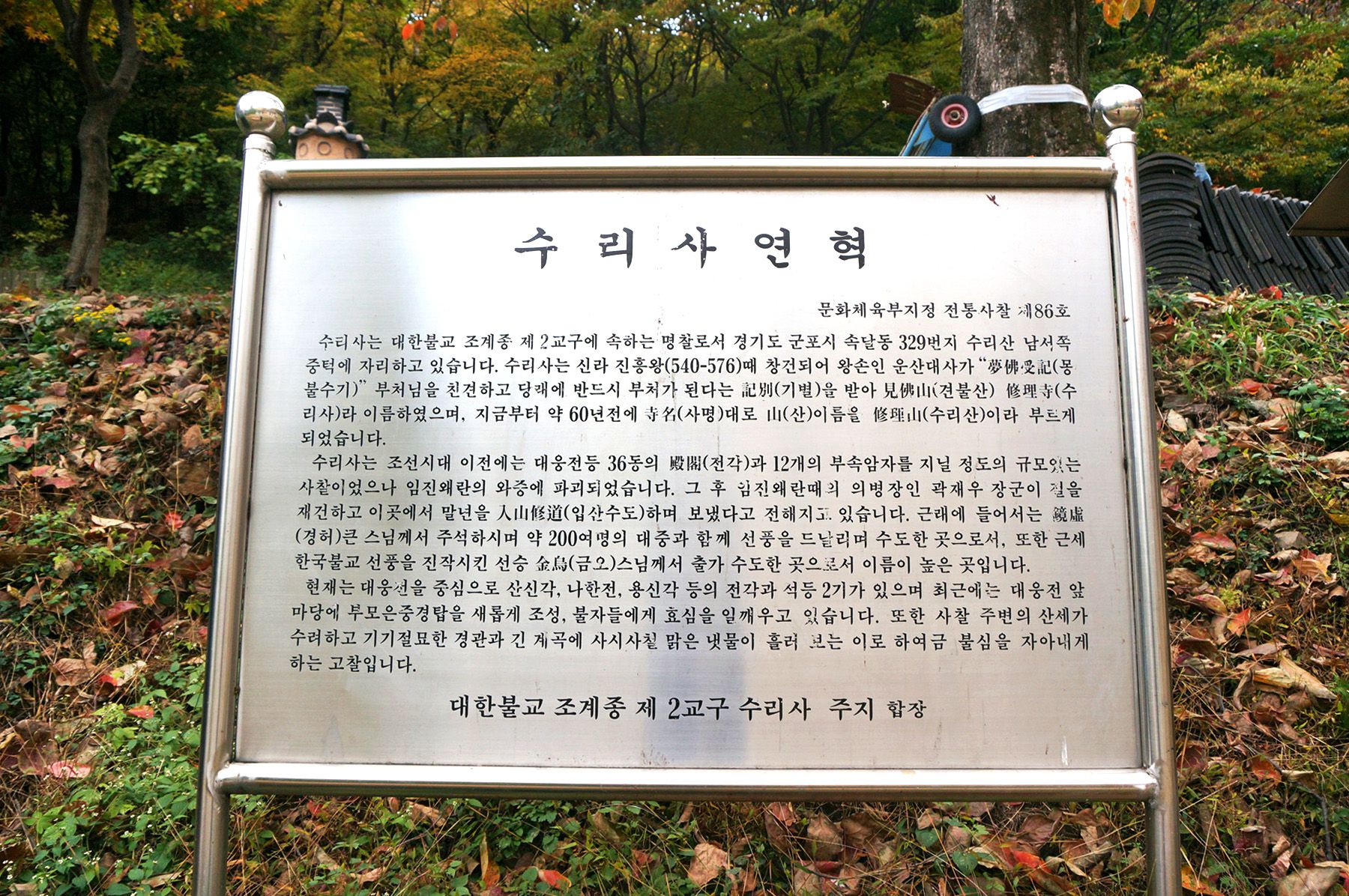 대한불교조계종 제2교구 본사인 용주사의 말사인 수리사는