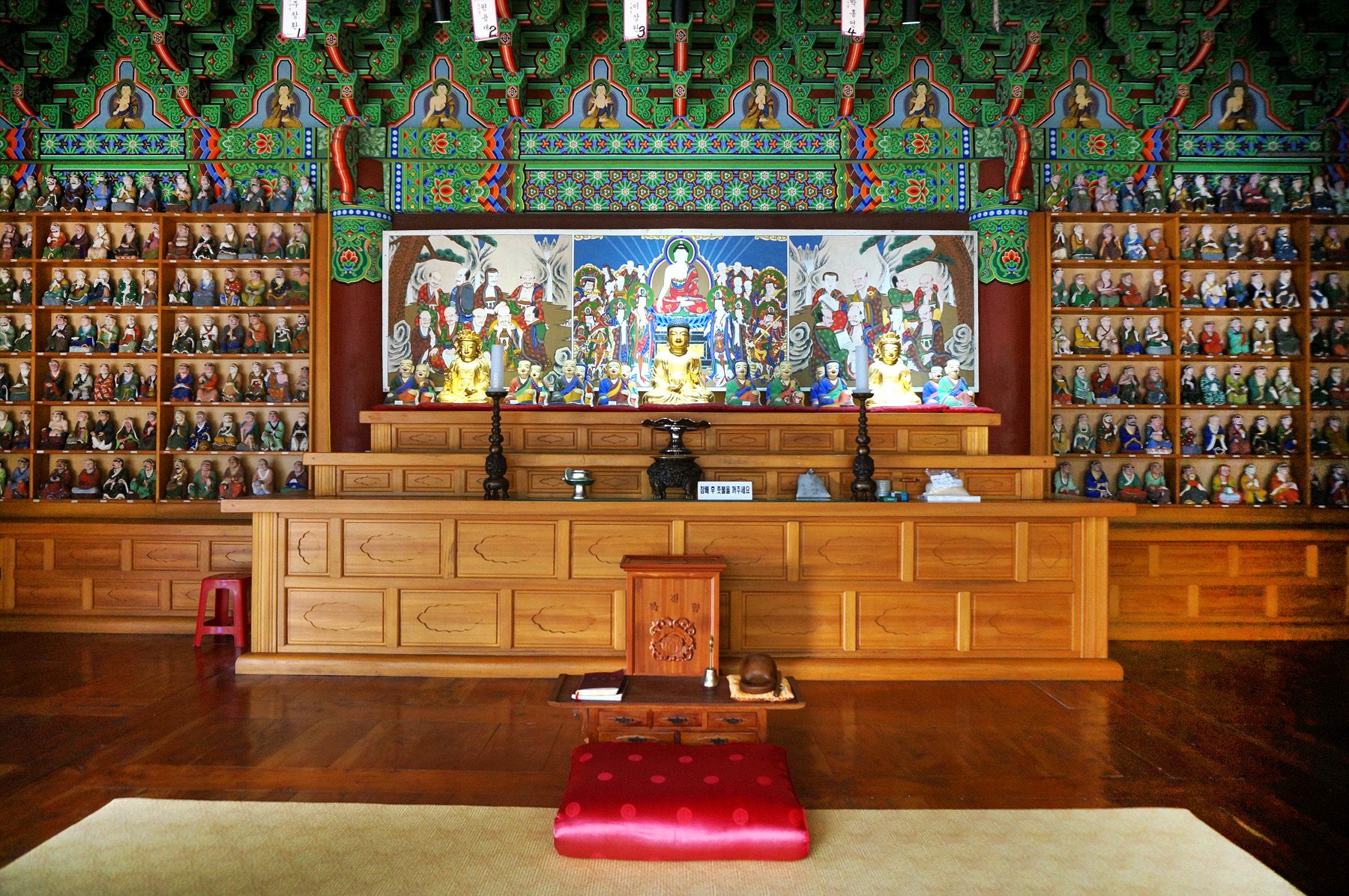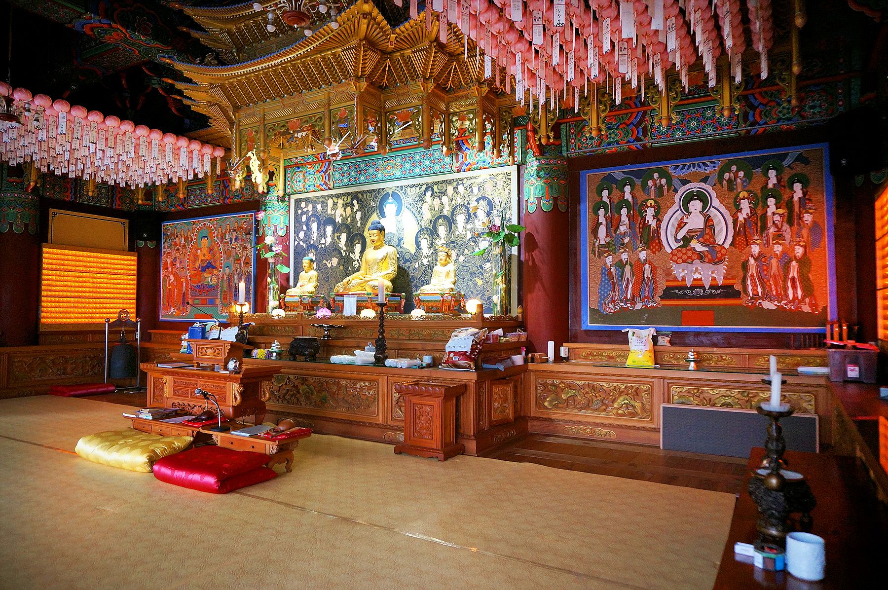 대웅전 내부에는 석가여래좌상을 비롯하여 관음보살좌상, 지장보살좌상 등이 봉안되어 있습니다.