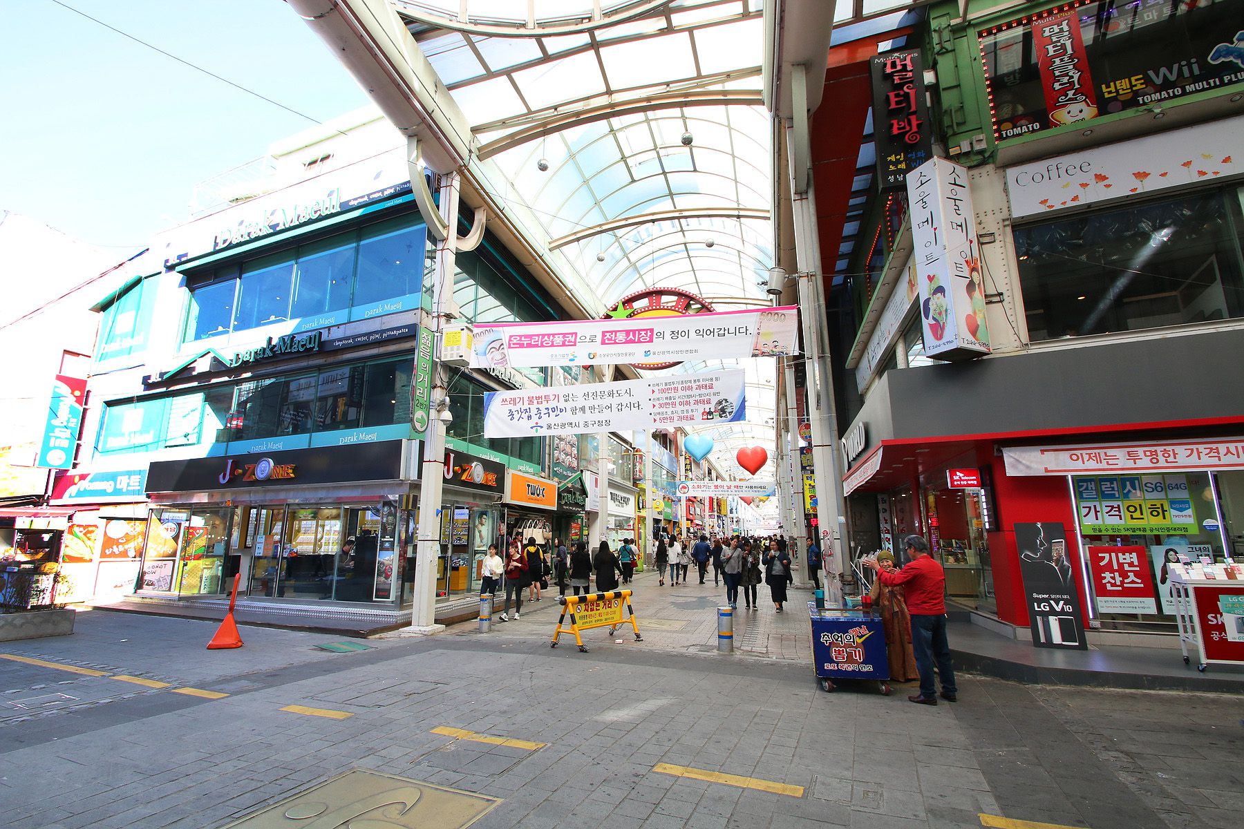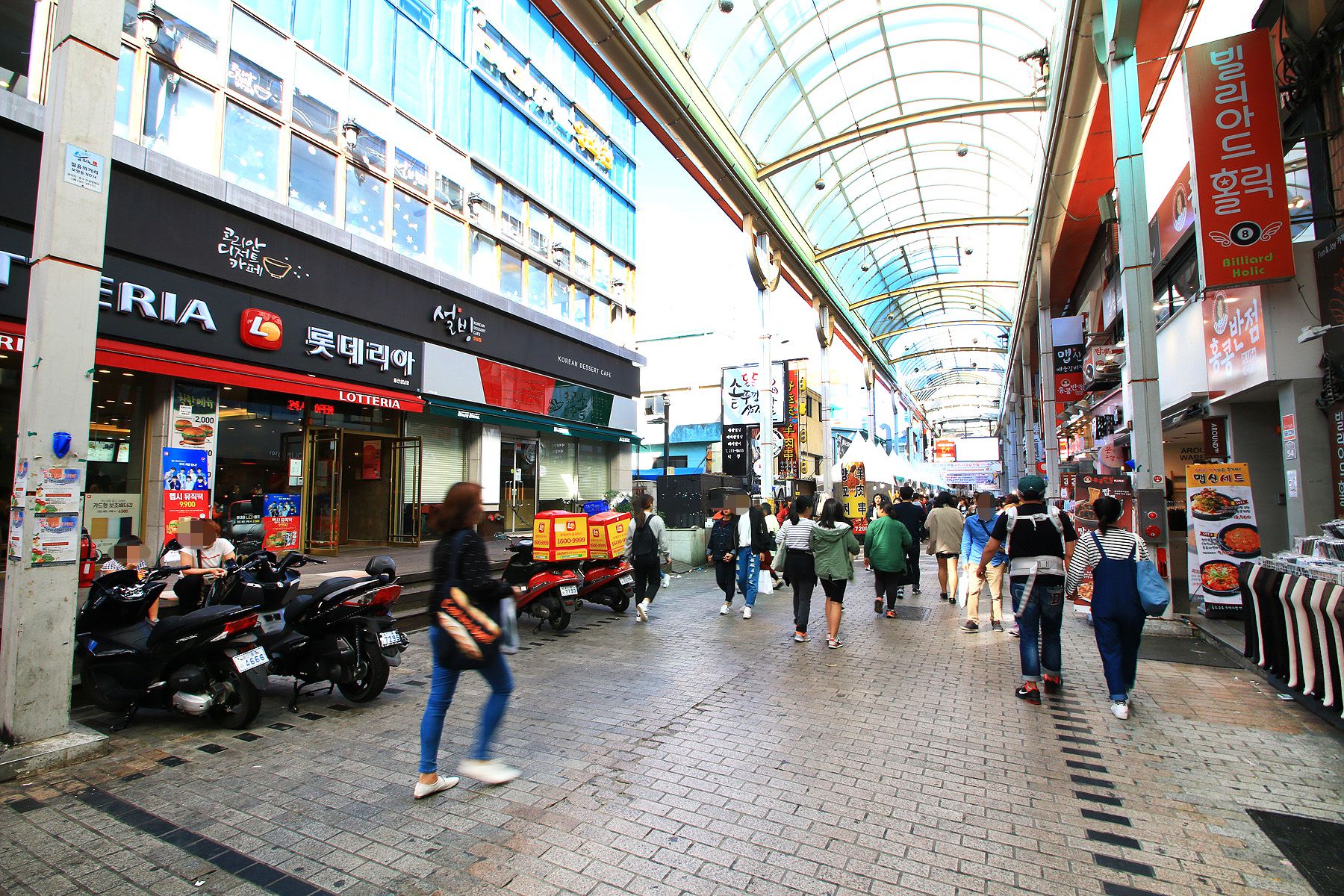 젊음의 열기로 가득한 '젊음의 거리'에는 대형 영화관, 의류 전문점, 햄버거 가게, 게임장, 호프집 등 다양한 종류의 상점이 즐비해 있습니다.