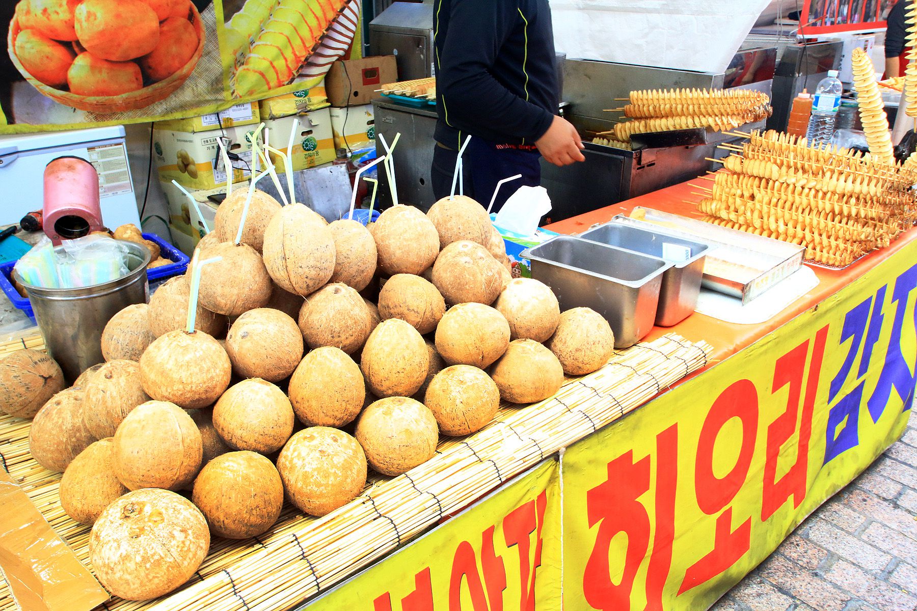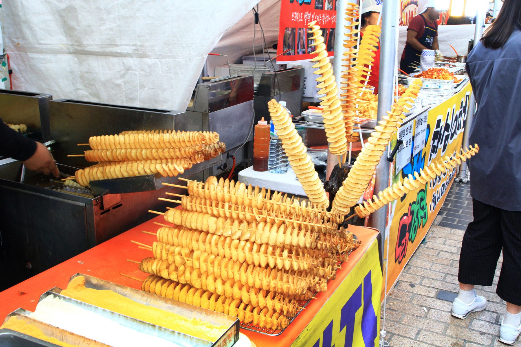 다양한 종류의 먹거리가 가득해 지나가는 사람들의 발길을 사로잡고 있습니다.