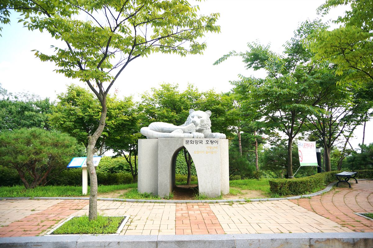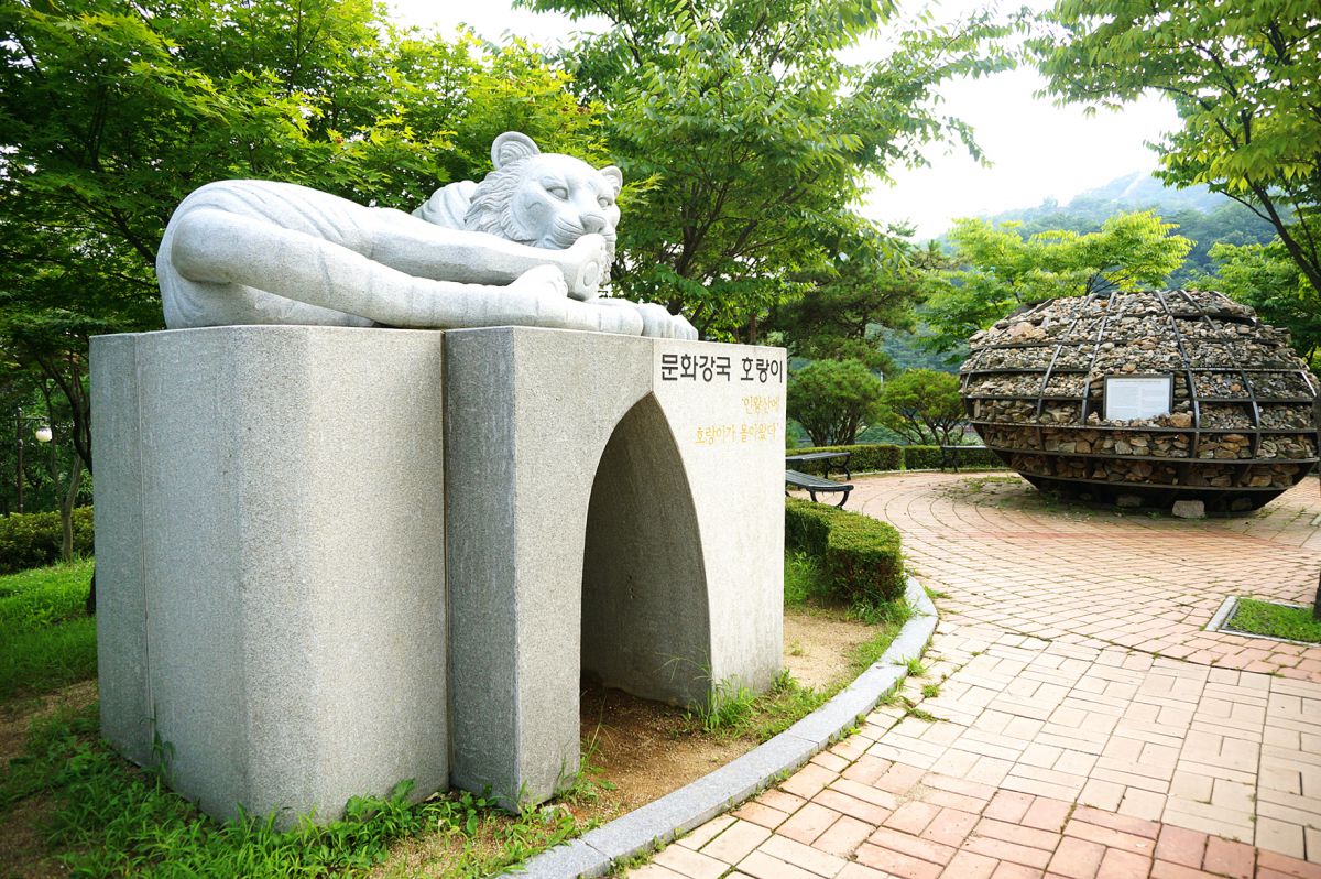 공원 내에는 인왕산 호랑이와 인왕산에서 굴러 왔다는 바위 조형물이 있는데요,