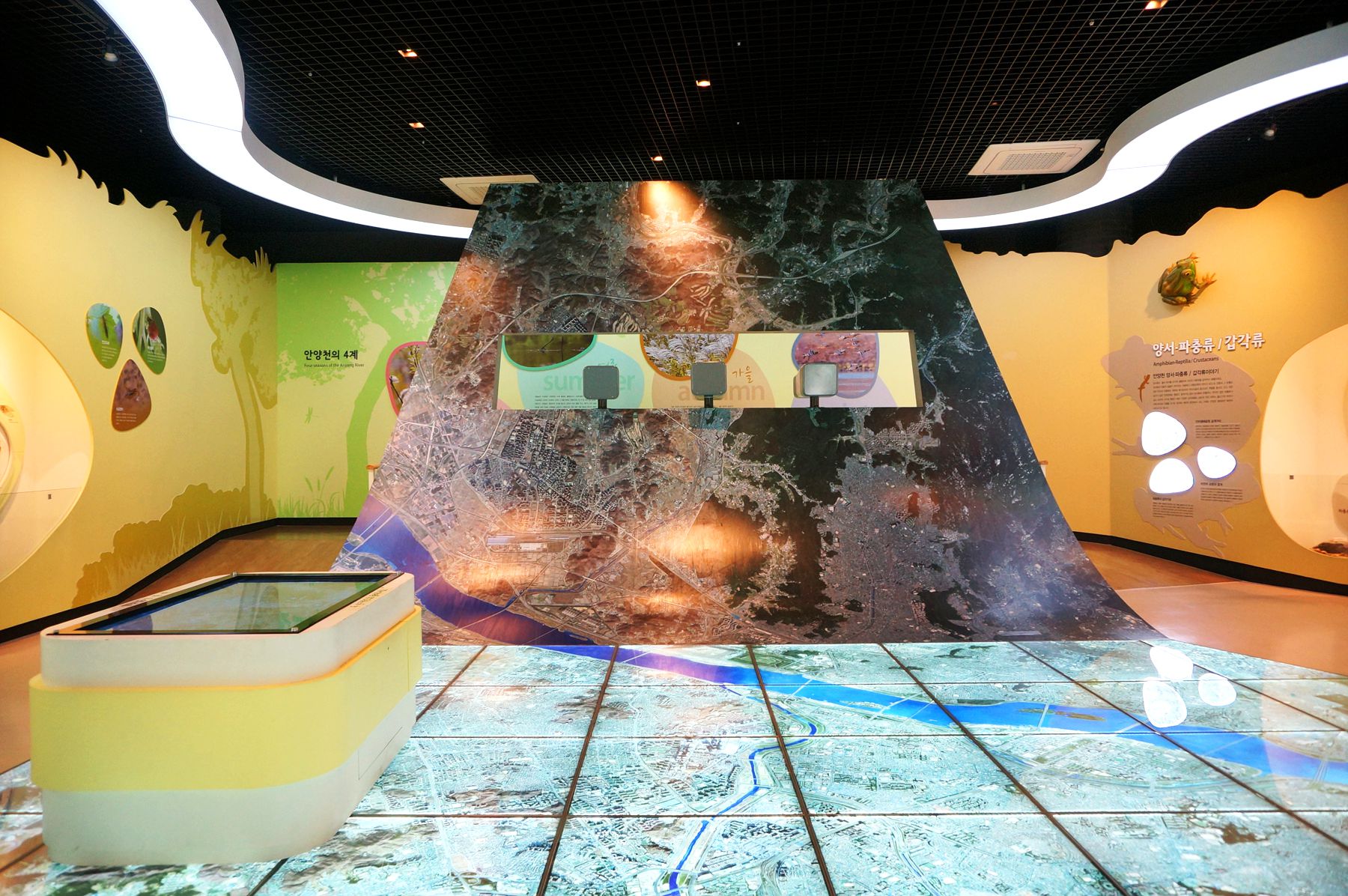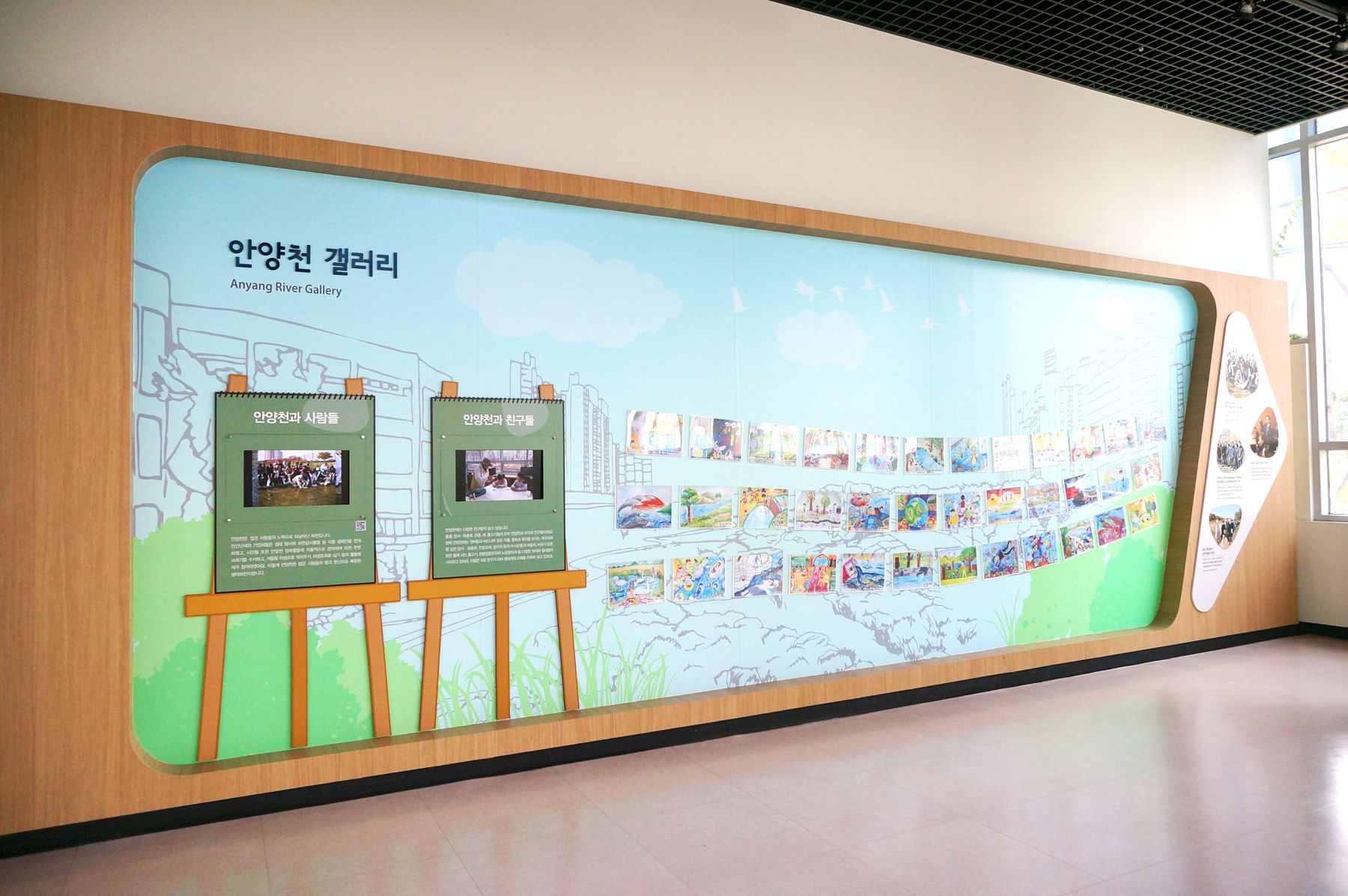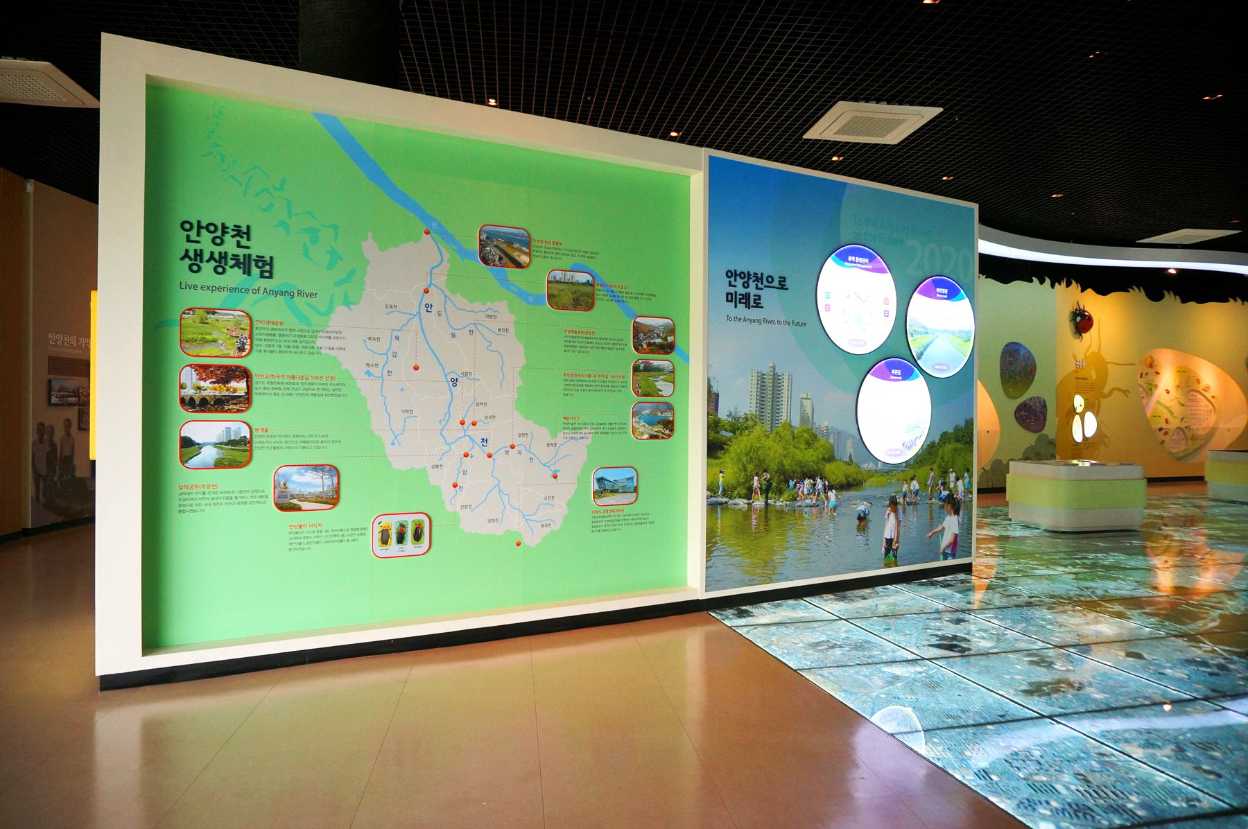 2층 전시관에서는 안양천의 역사(안양천의 기억, 위기의 순간, 모두의 노력, 안양천 살리기 10가지 이야기,