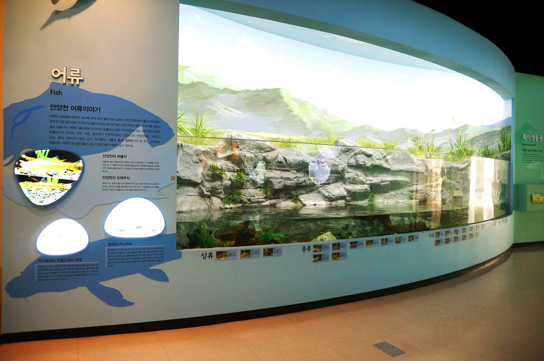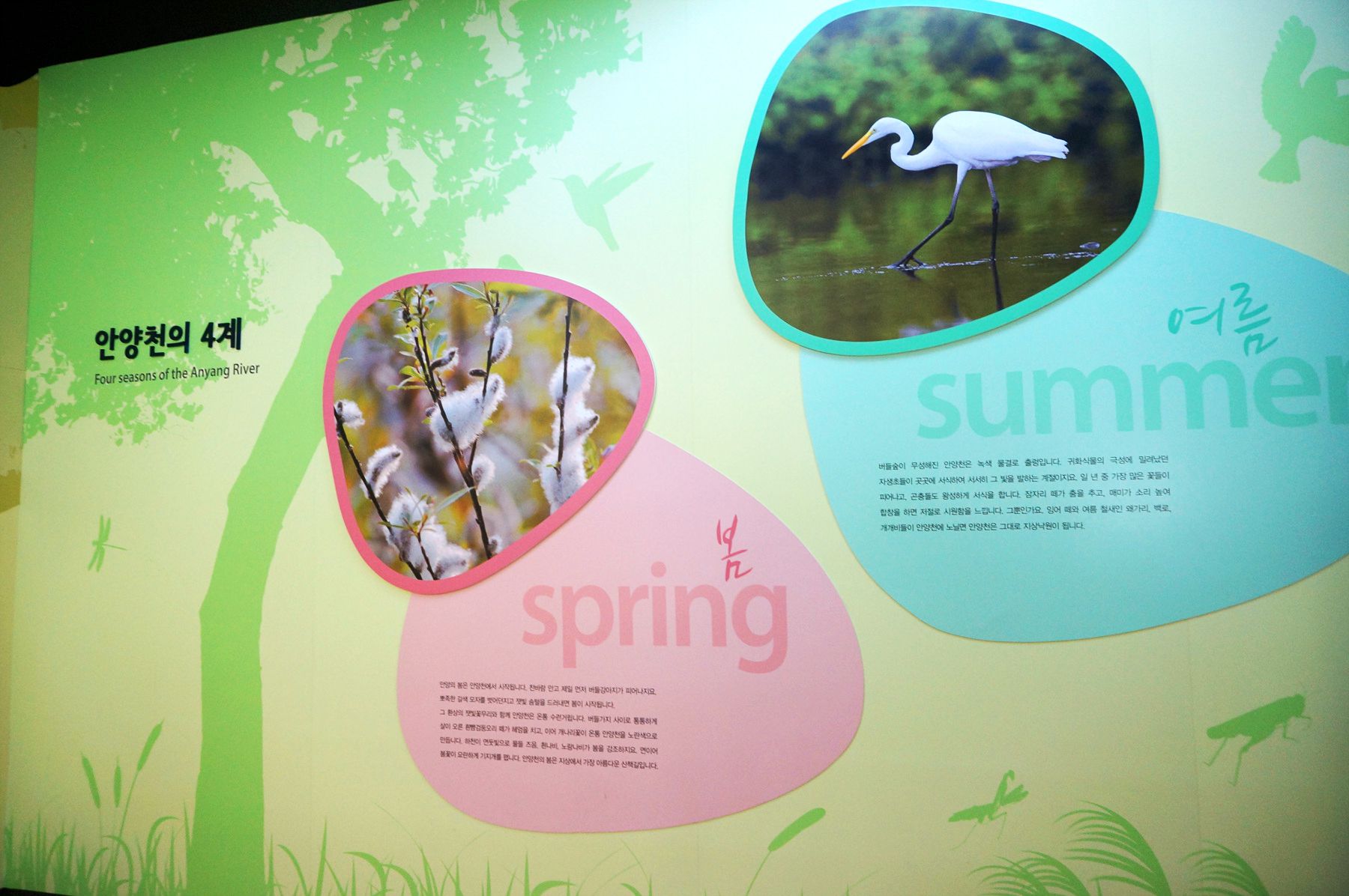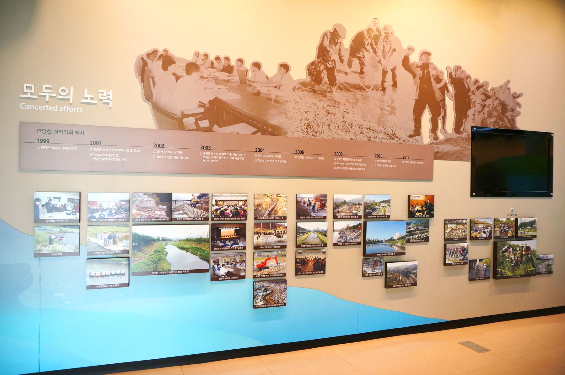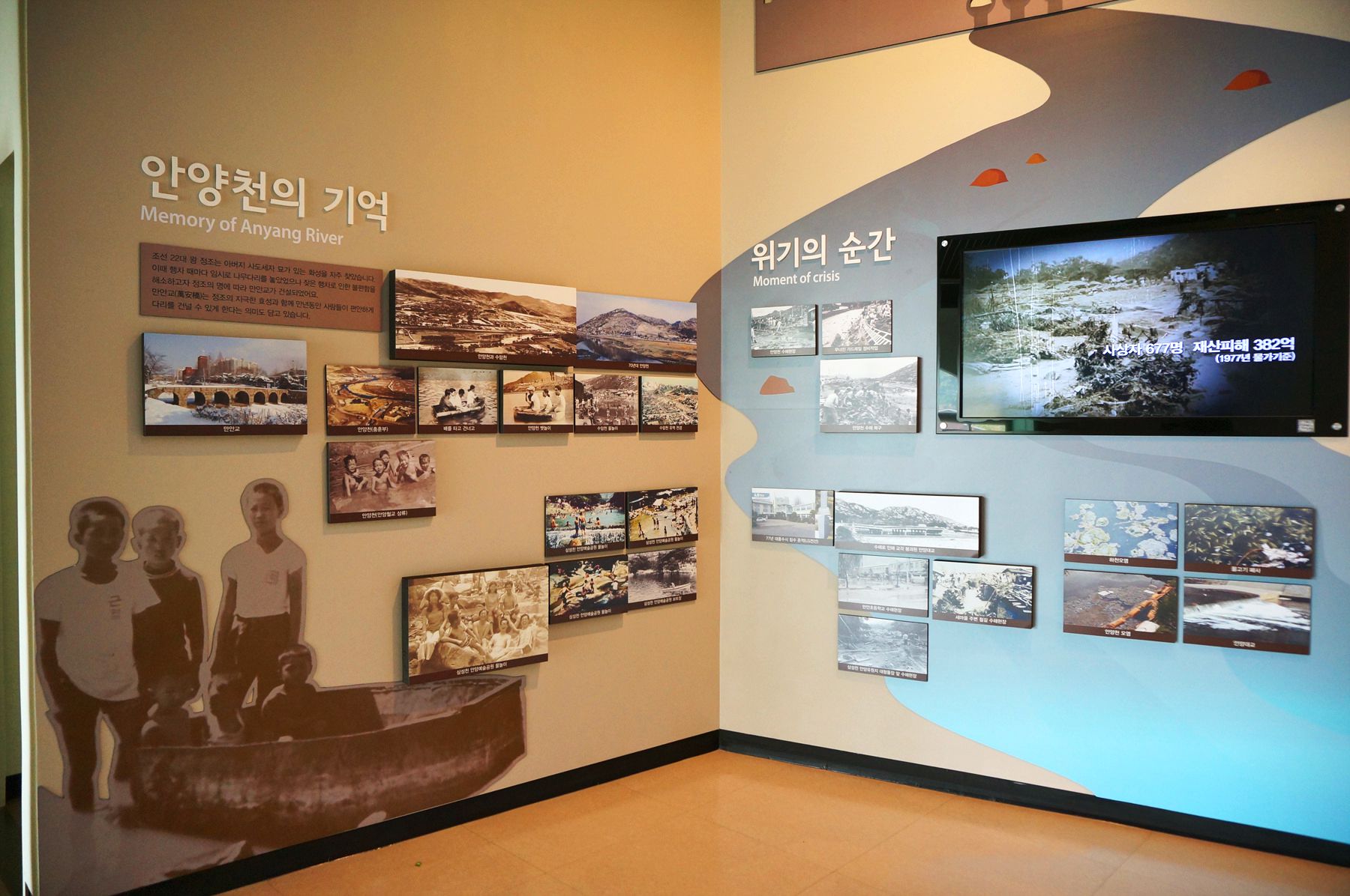 2층 전시관에서는 안양천의 역사(안양천의 기억, 위기의 순간, 모두의 노력, 안양천 살리기 10가지 이야기,