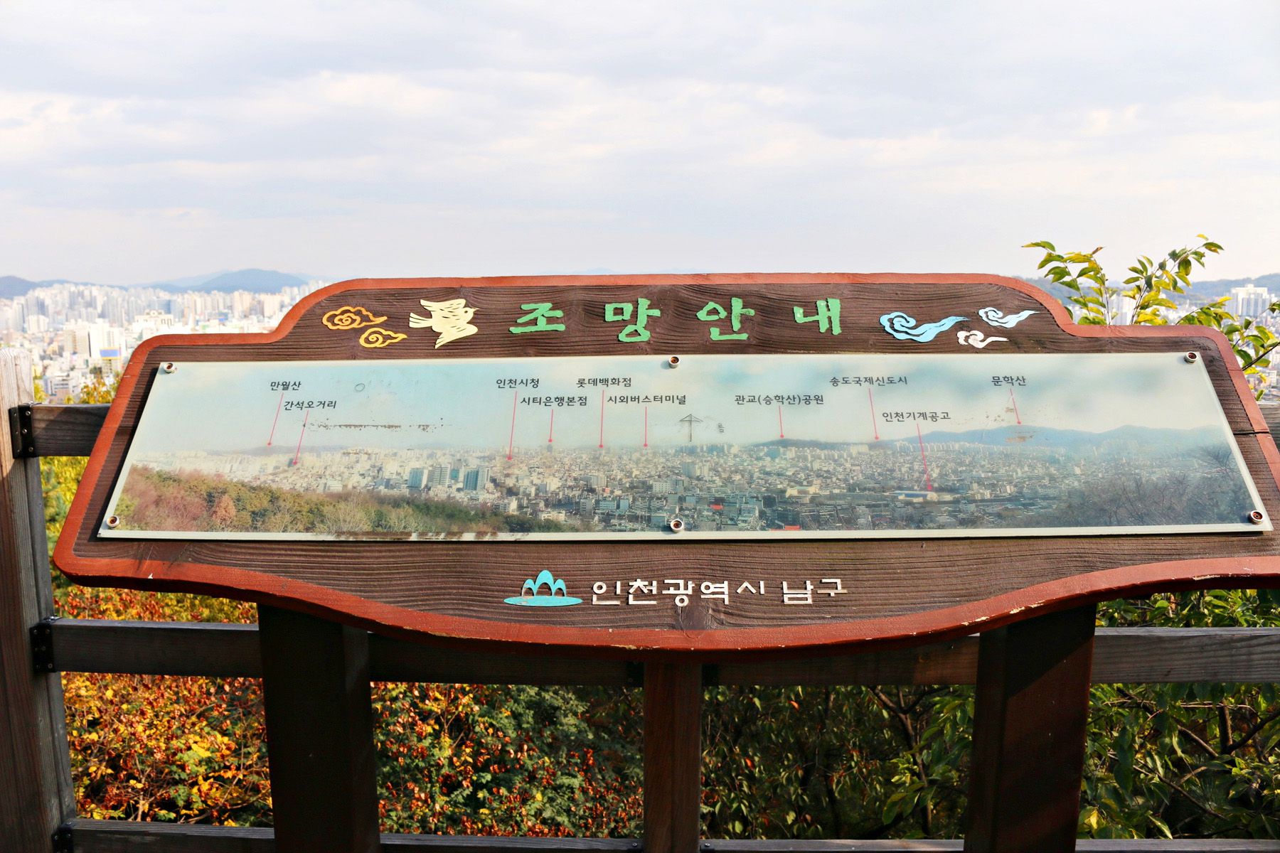 수봉공원은 숭의동, 도화동, 용현동에 위치한 곳이라 다리를 건너면