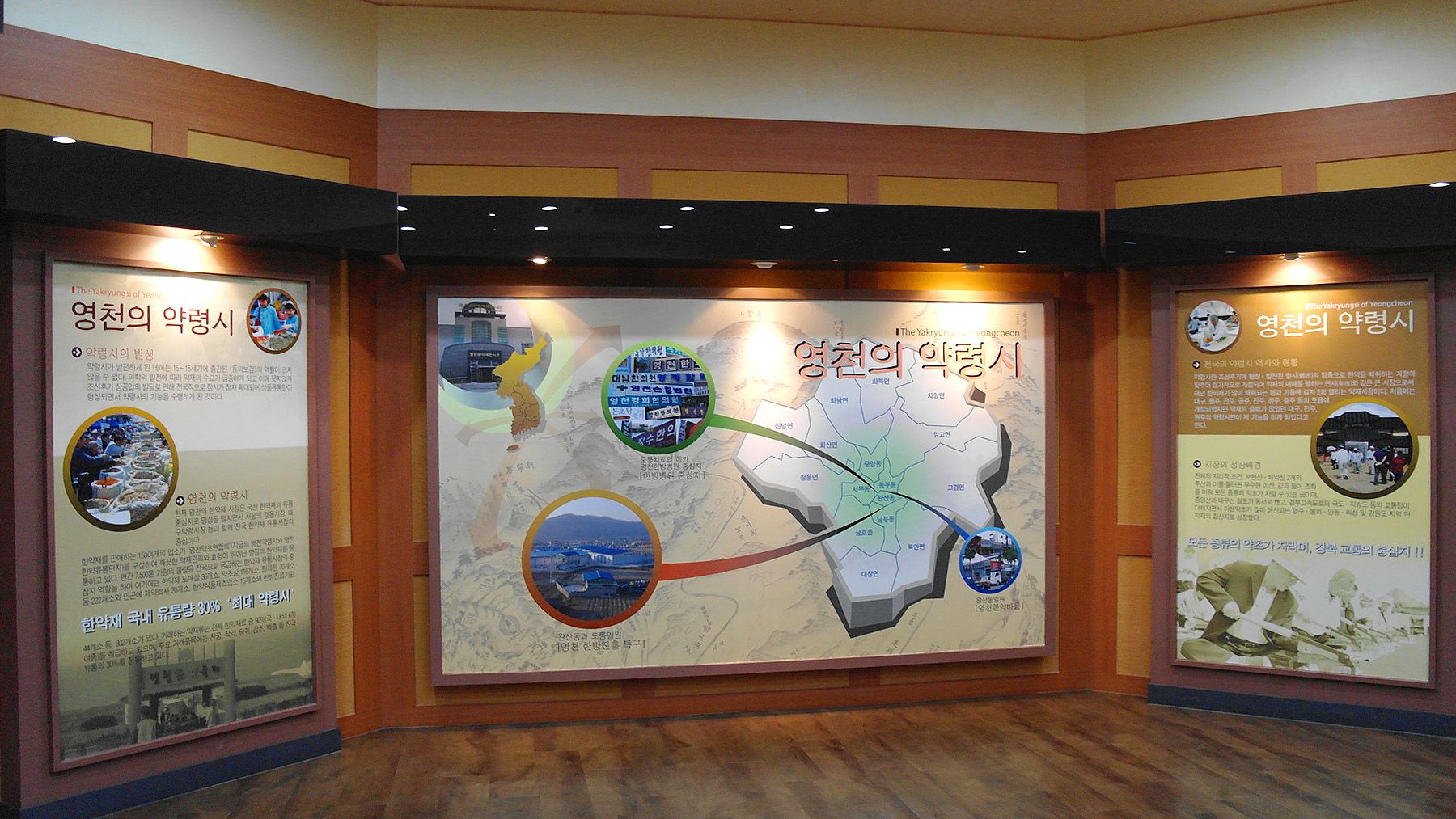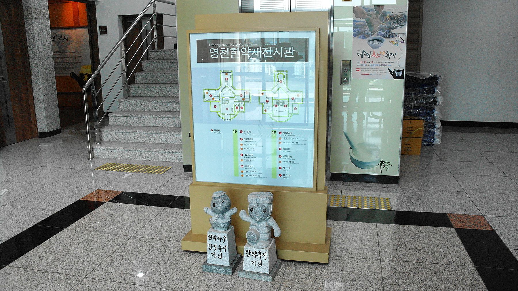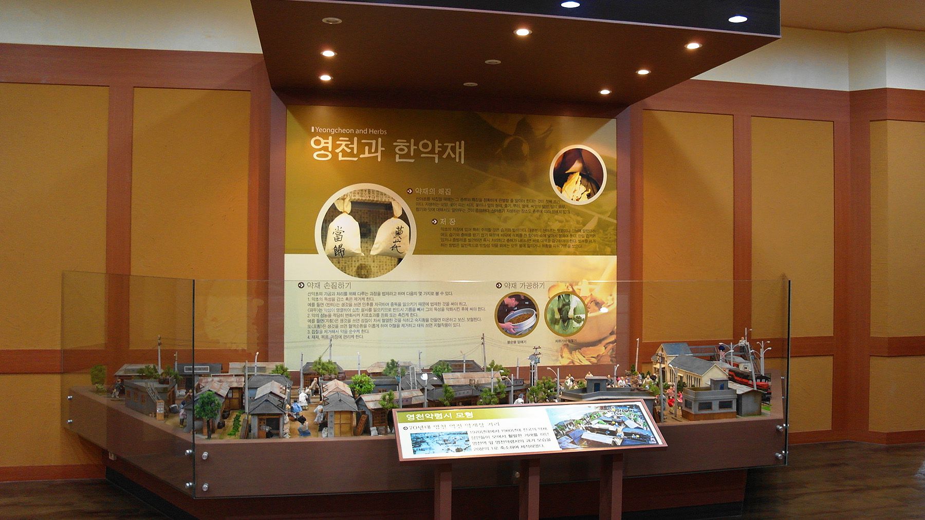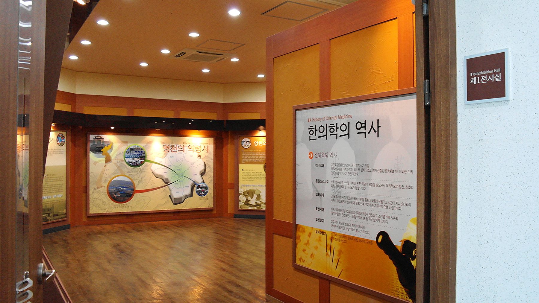 1층에는 제1전시실 영천(한의학의 역사/영천의 역사와 문화, 영천의 약령시/영천과 한약재), 제2전시실 한약재