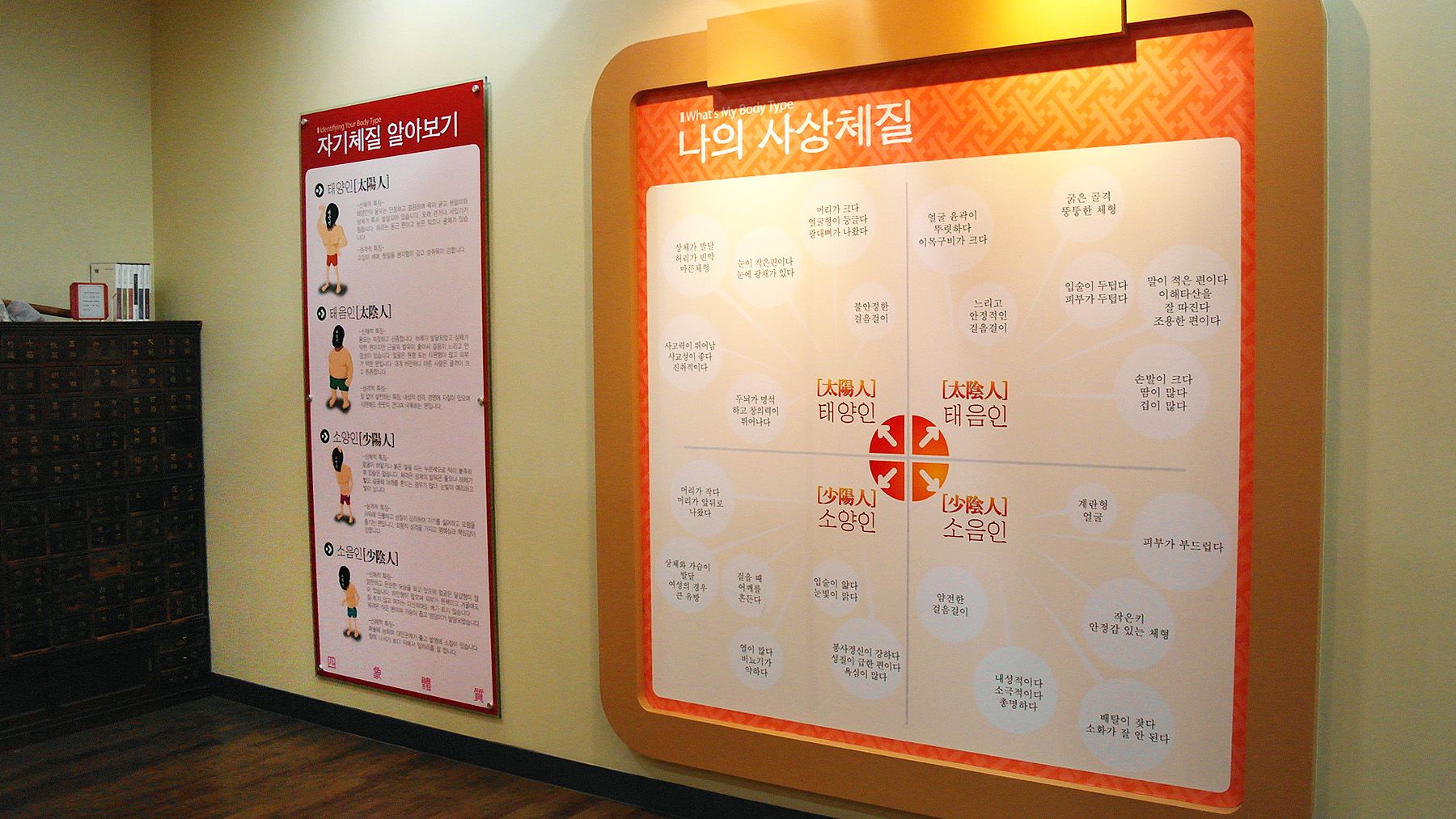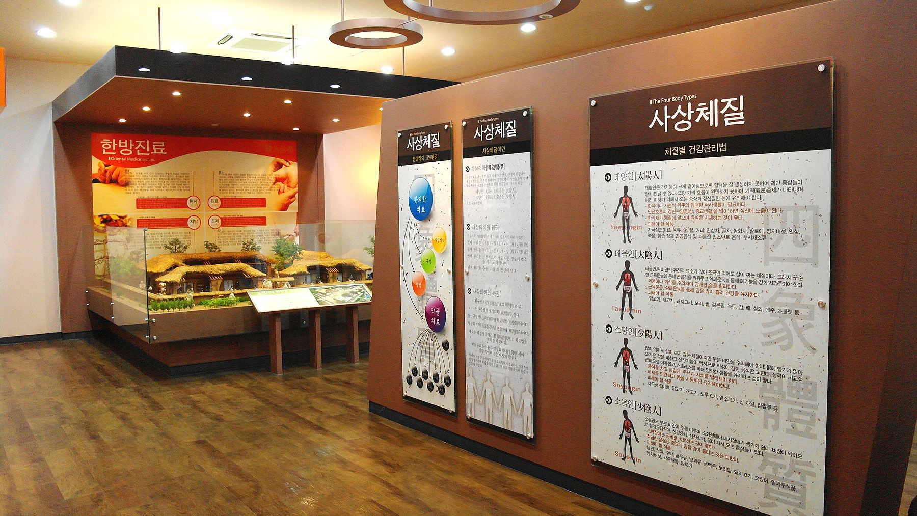 사상체질 분류/음양오행, 한약 8제형) 그리고 영상실, 복도와 로비로 조성되어있답니다.