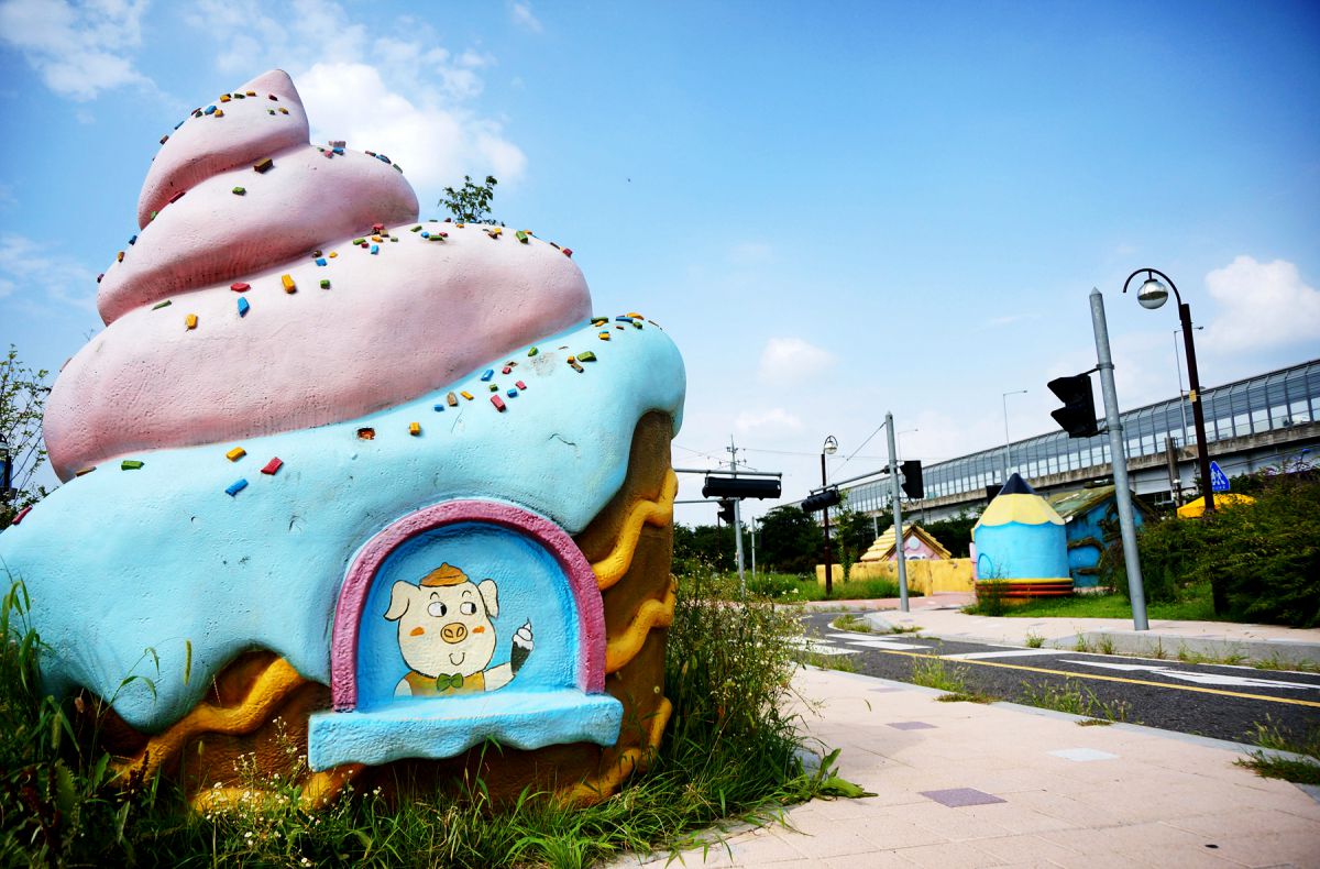야외 체험장에는 도로와 마을의 모양이 그대로 만들어져 있어 마치 작은 마을에 온 듯한데요,