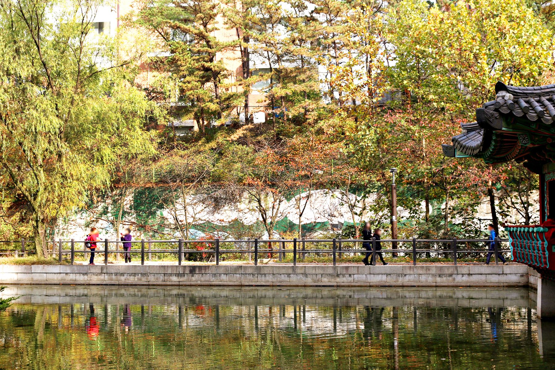 호수 주변으로 펼쳐진 멋스러운 조경을 감상해보세요.
