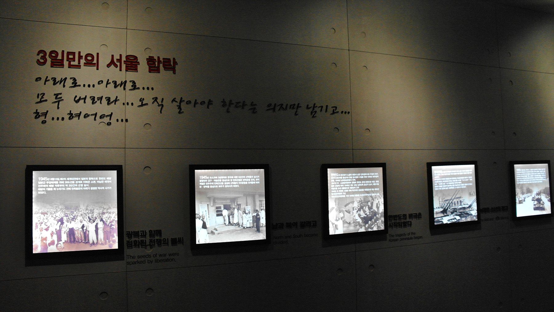 이곳에서는 한국전쟁과 역사에 관련된 전시품들을 볼 수 있으며
