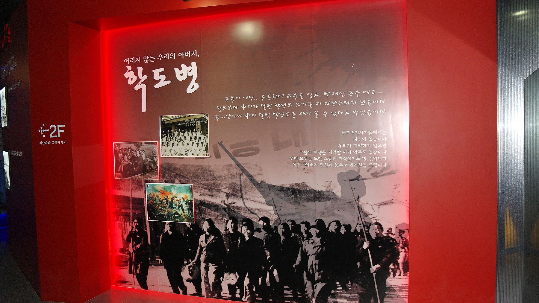 2층 전시관에는 '기적의 이름으로 다시 서는 Korea'라는 주제로
