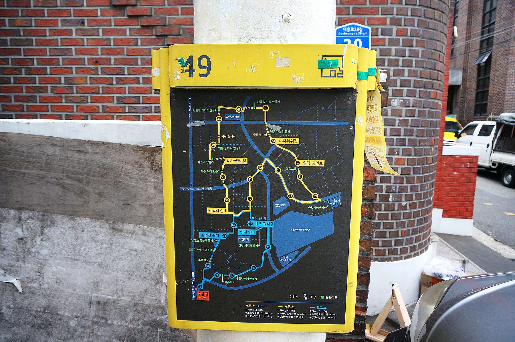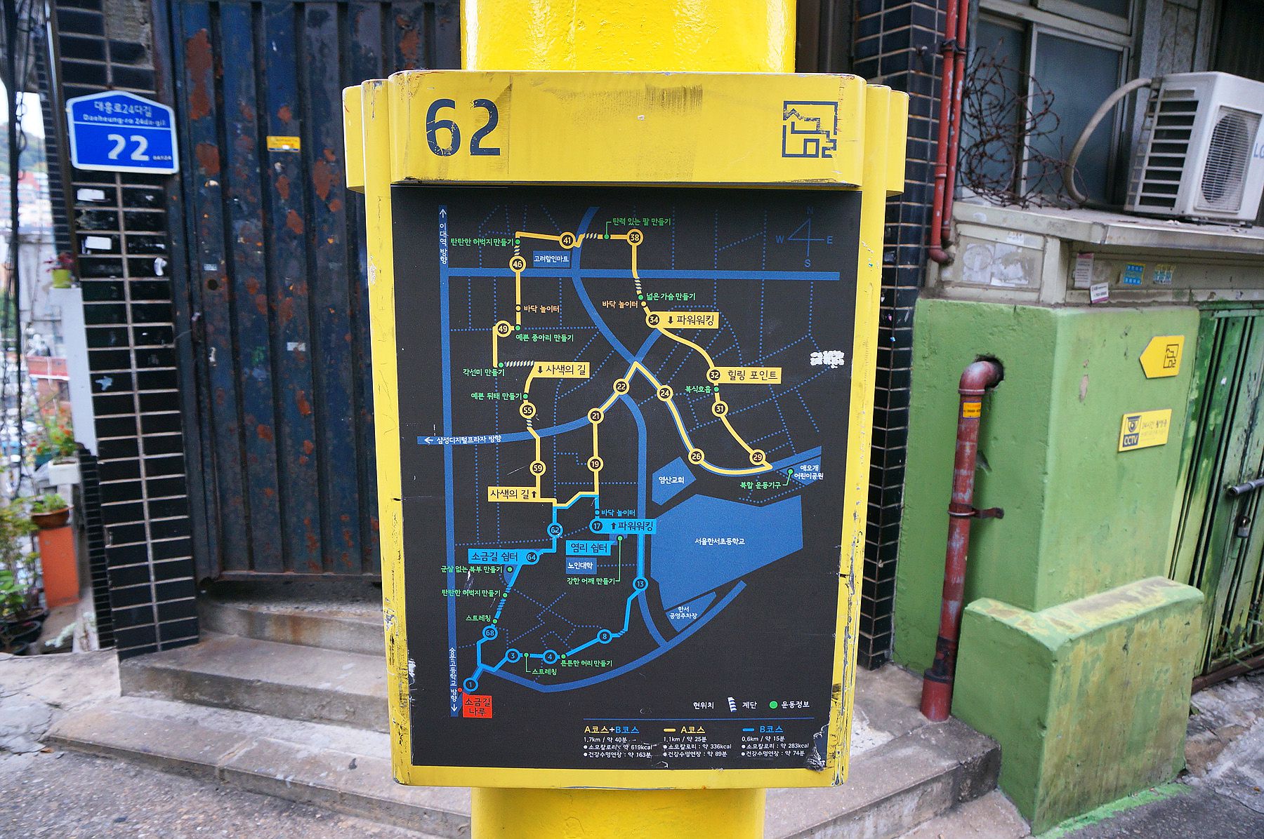 소금길은 전봇대에 1번부터 68번까지 순서가 있어 A, B 코스로 나누어져 있습니다.