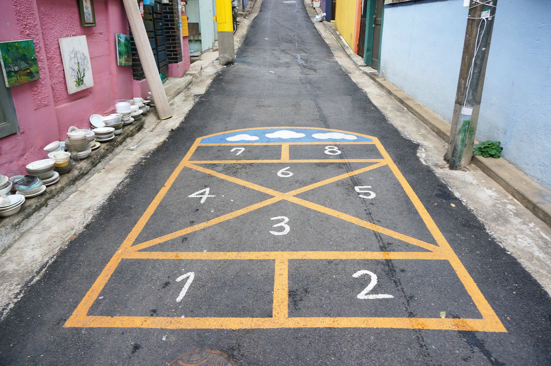 골목길을 누비며 놀았던 옛 놀이들이 그려져 있어 어릴 적 추억이 저절로 떠오르는 곳입니다.