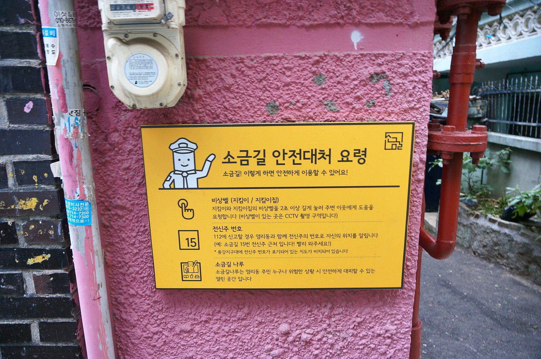 골목 중간중간에 비상벨도 갖추고 있으니 안전합니다.