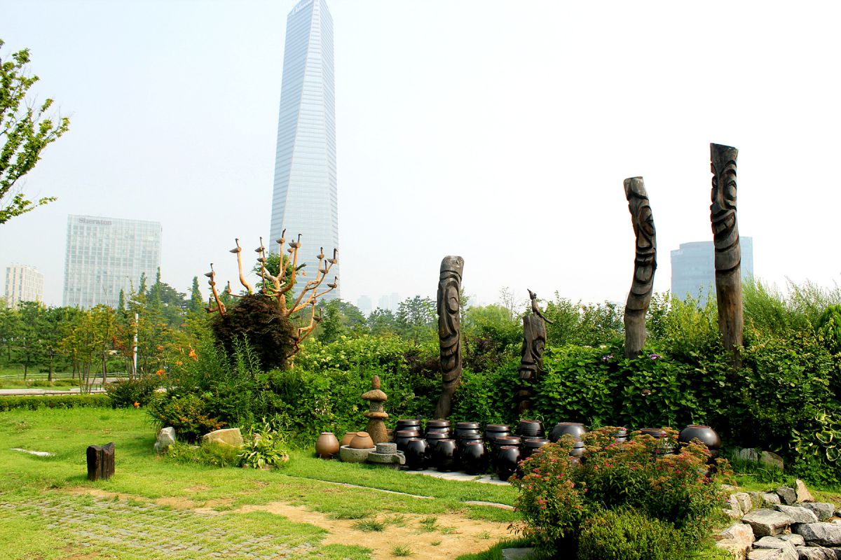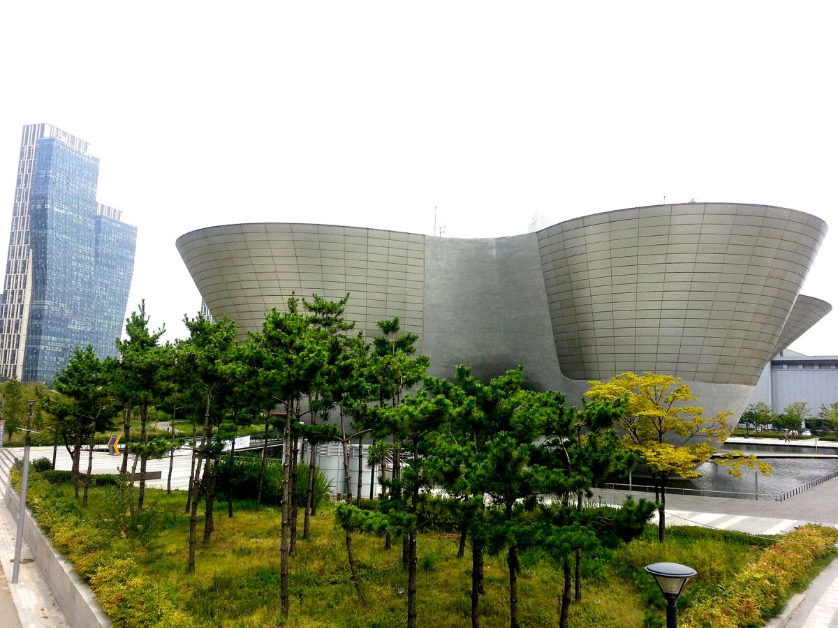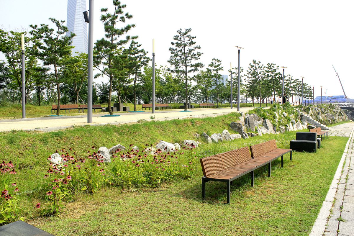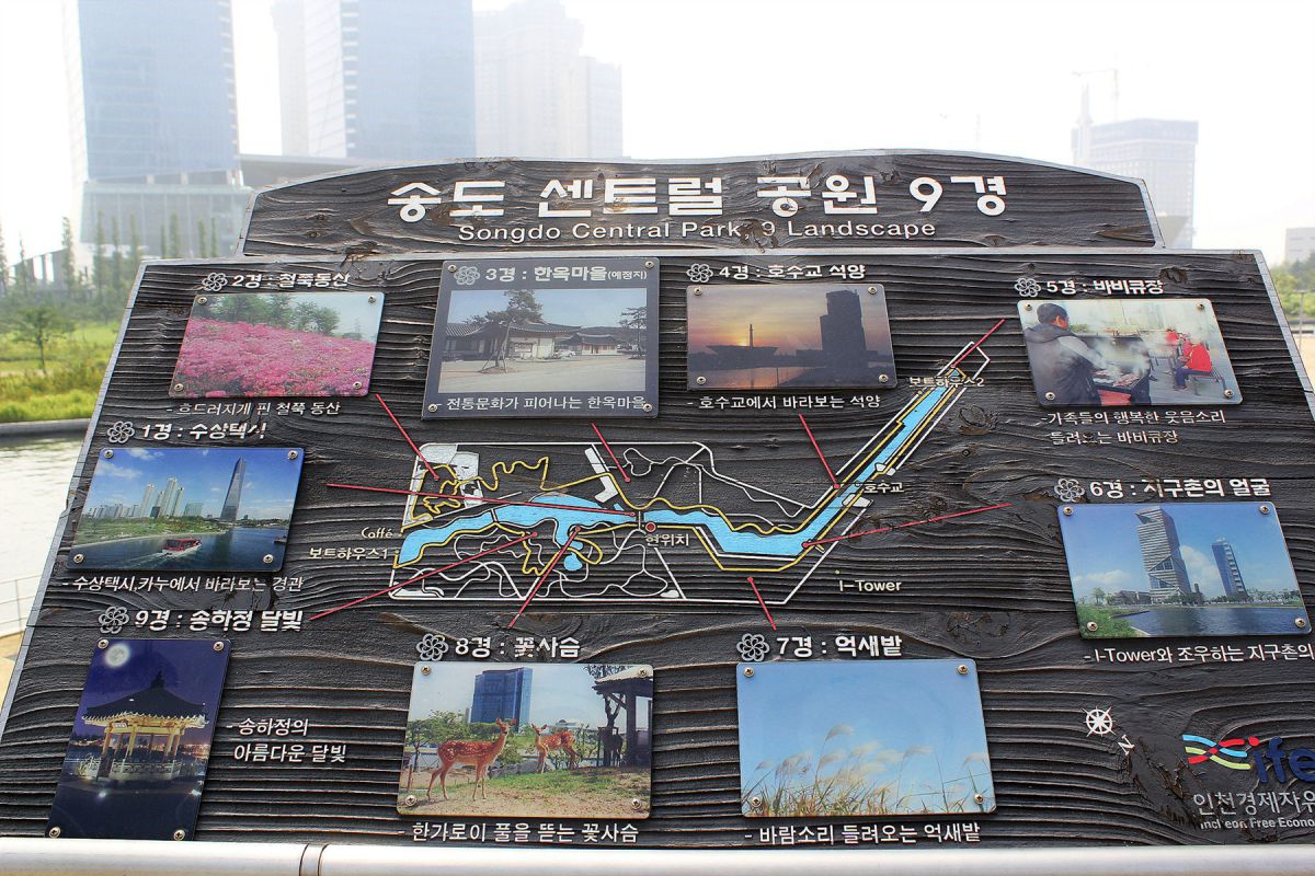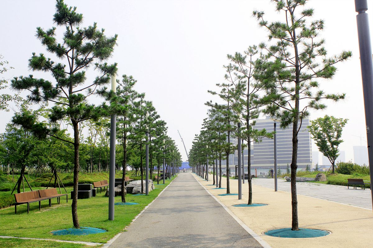 송도국제도시의 높고 멋진 건물들 사이에 자리잡은 송도 센트럴공원