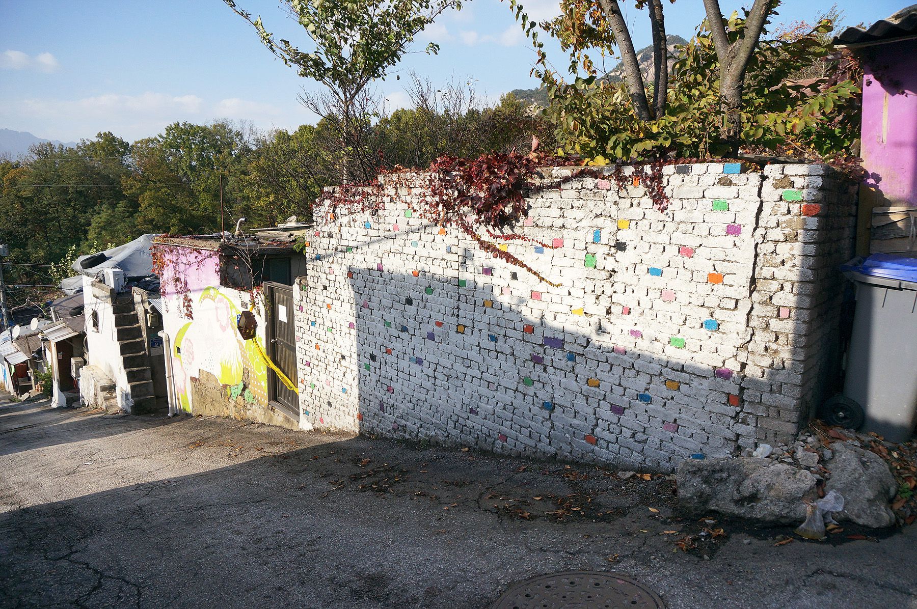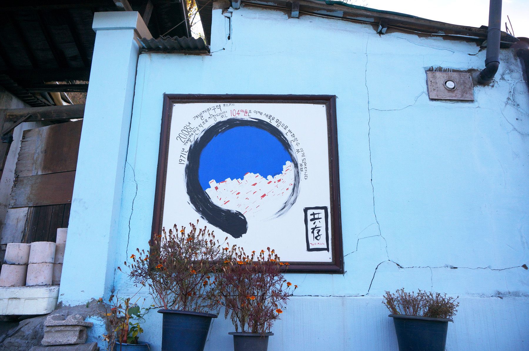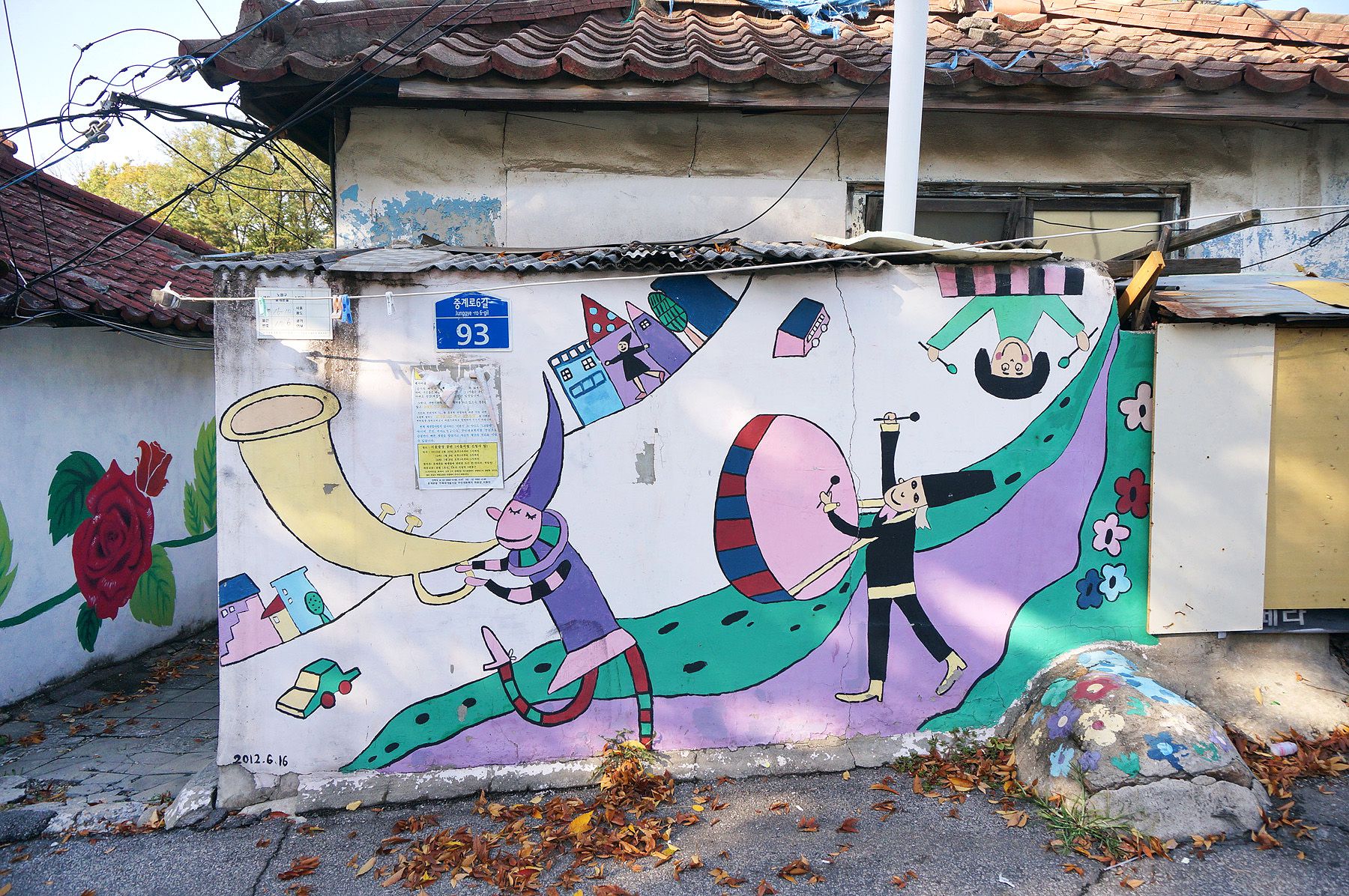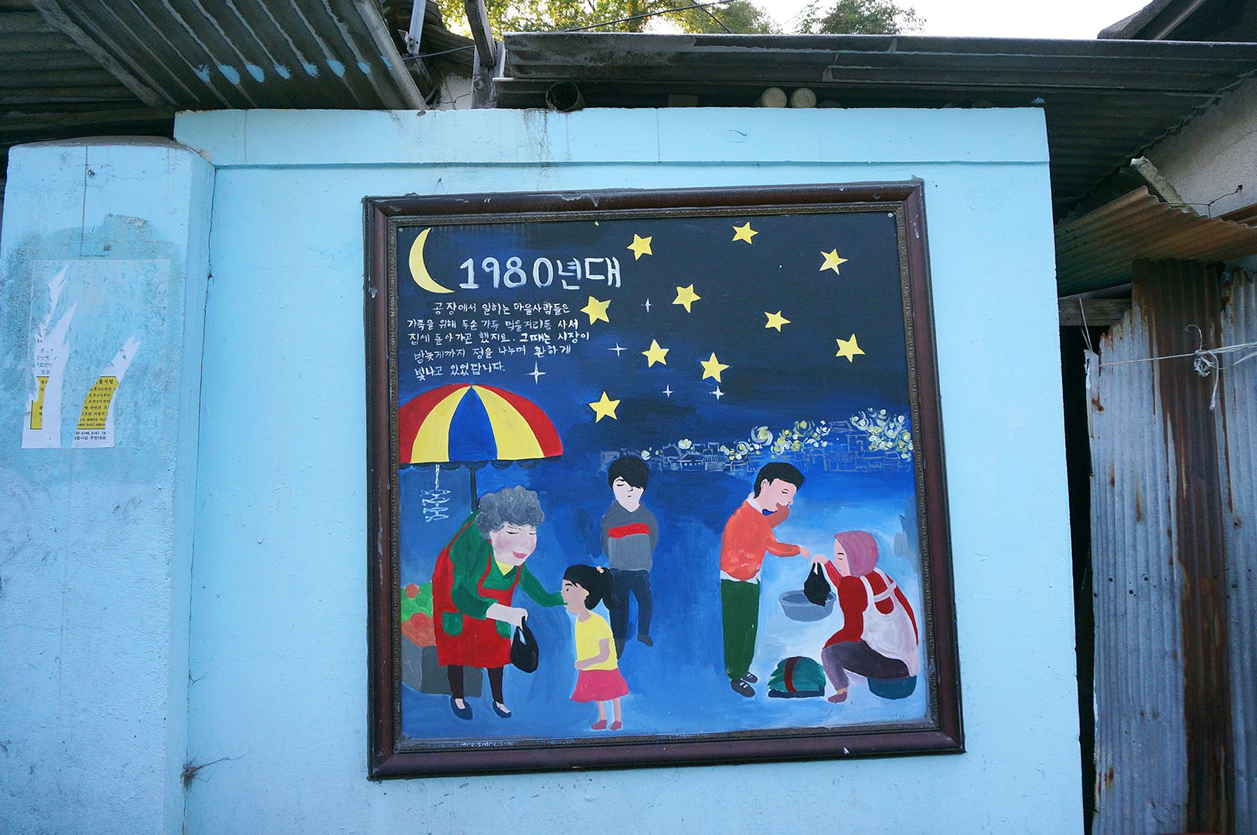 쓸쓸해 보이지 않는 것은 활기차고 웃는 그림들의 벽화와 온기가 전해지는 듯한 연탄 때문일 것입니다.