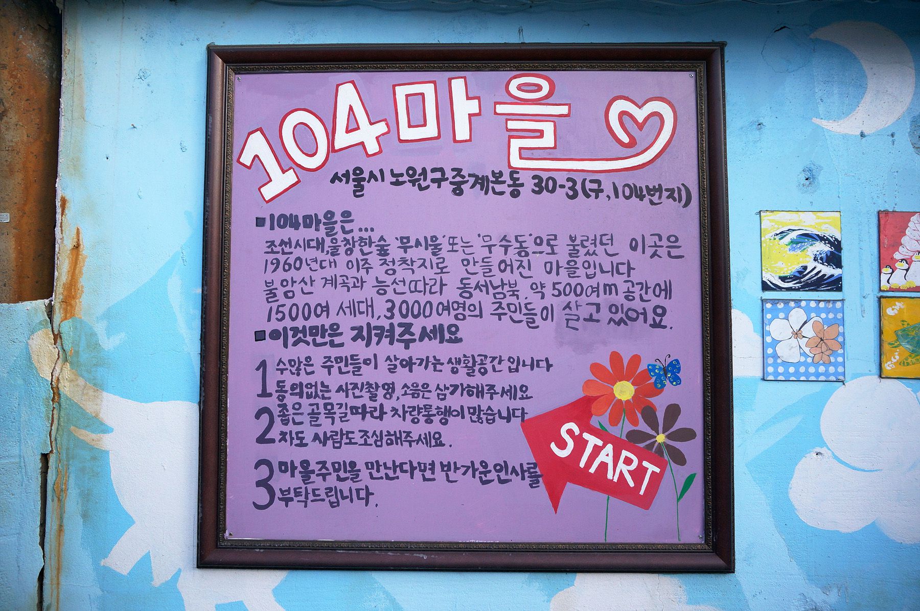 옛 주소 104번지였고 104번 버스 종점이 있던 곳이어서 백사마을입니다.