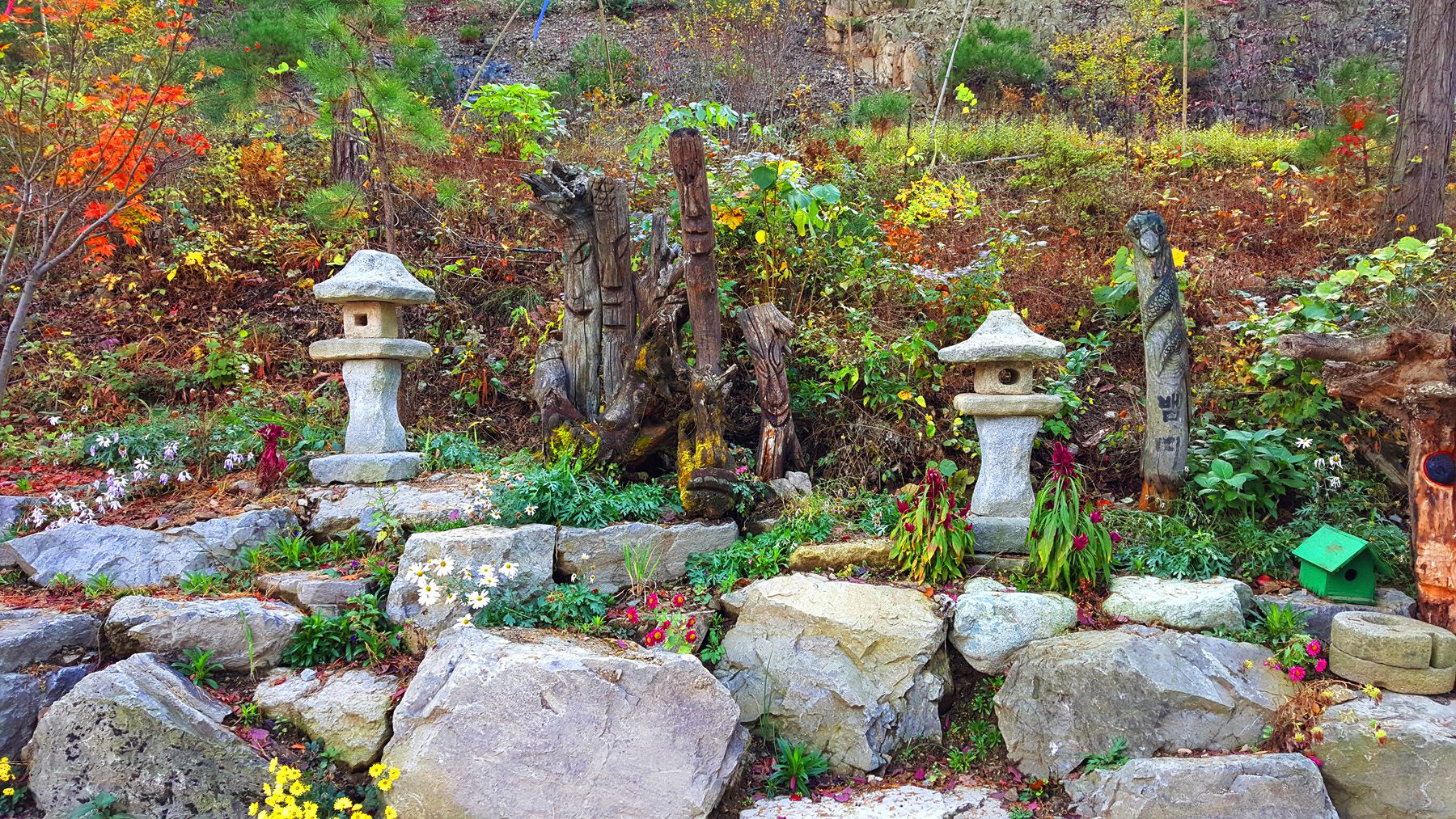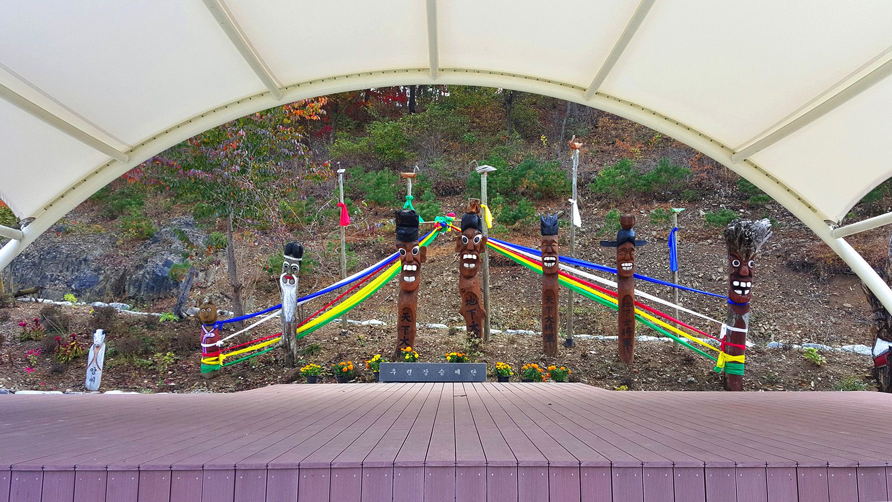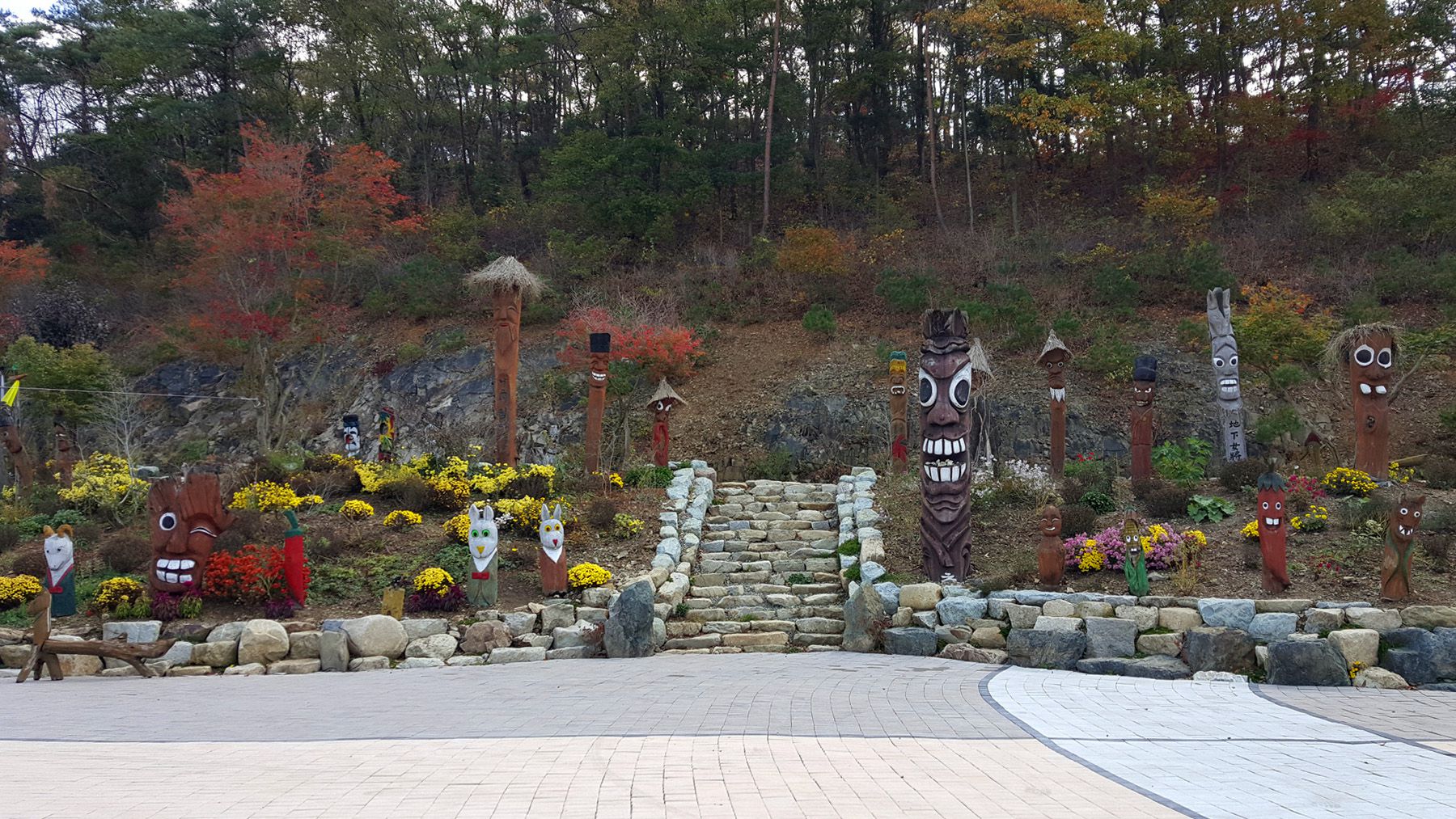 용도에 따라서 각양각색으로 다르게 꾸며진 장승들과 형형색색 다른 다양한 야생화들로 멋지게 꾸며져 있어
