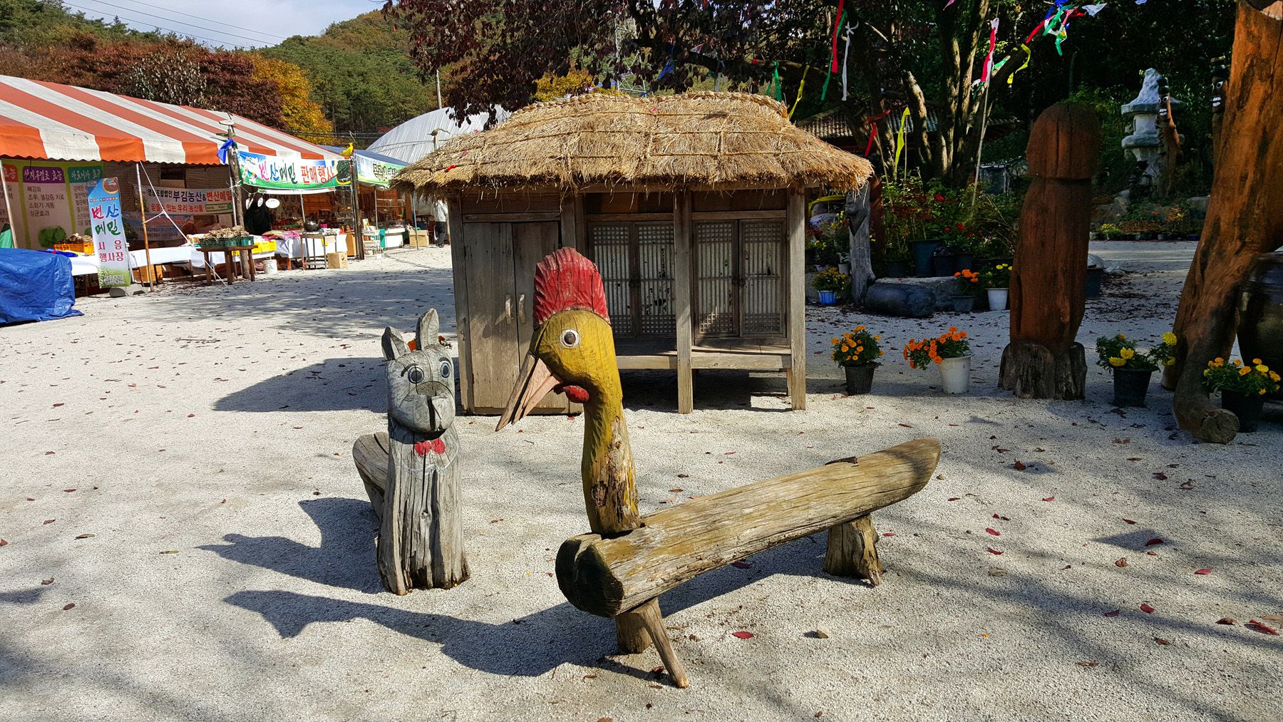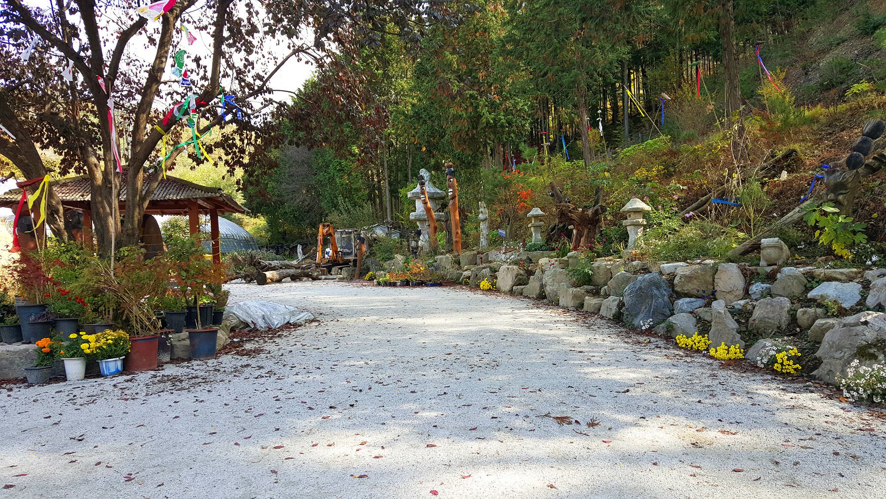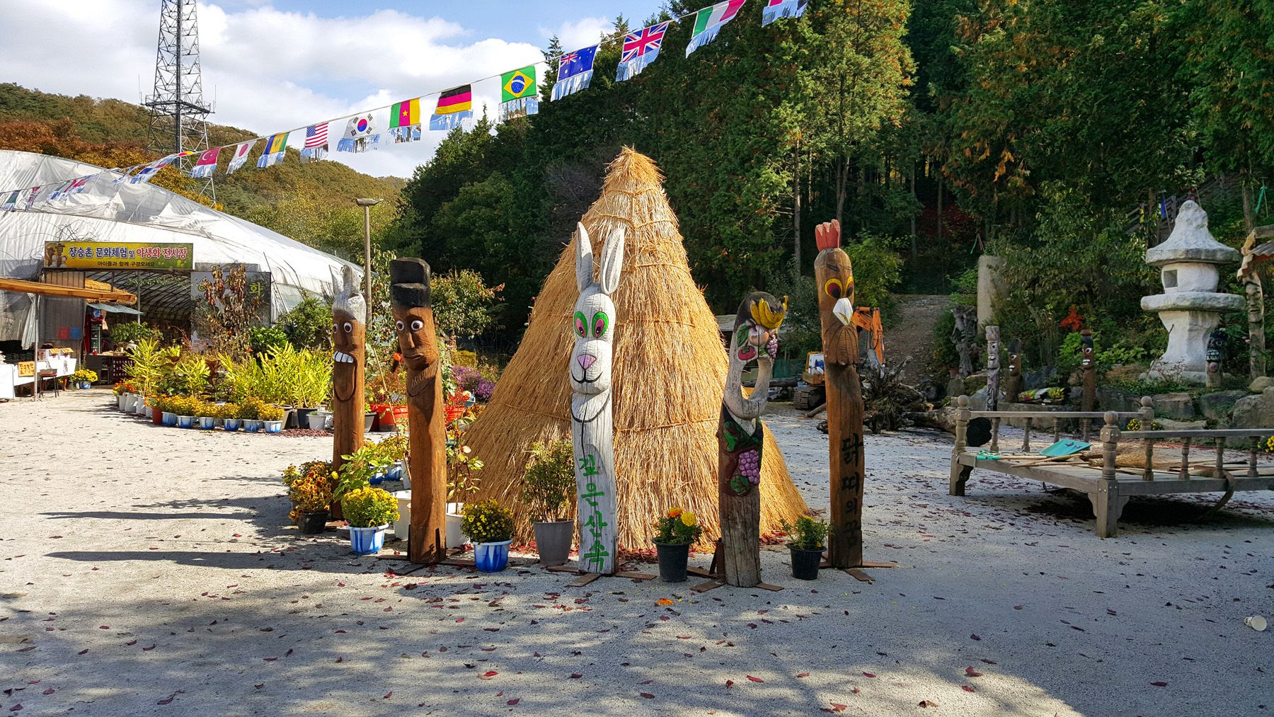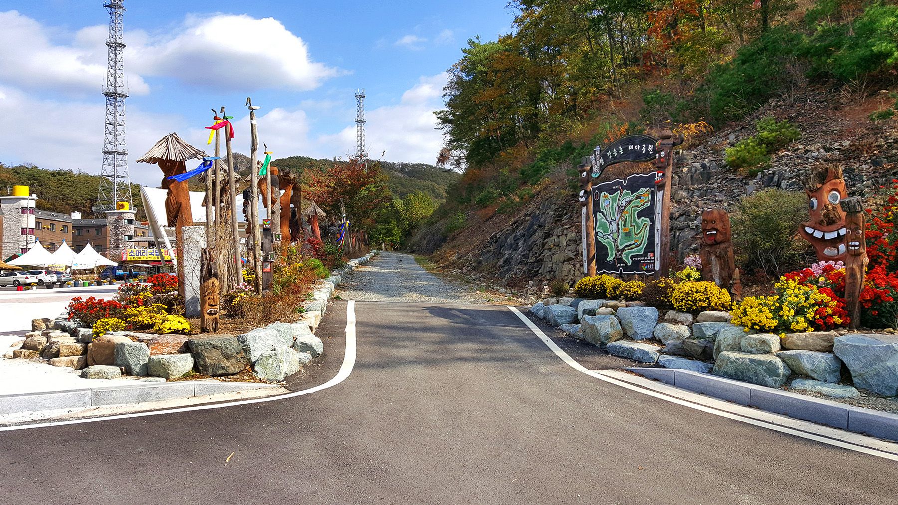 용도에 따라서 각양각색으로 다르게 꾸며진 장승들과 형형색색 다른 다양한 야생화들로 멋지게 꾸며져 있어