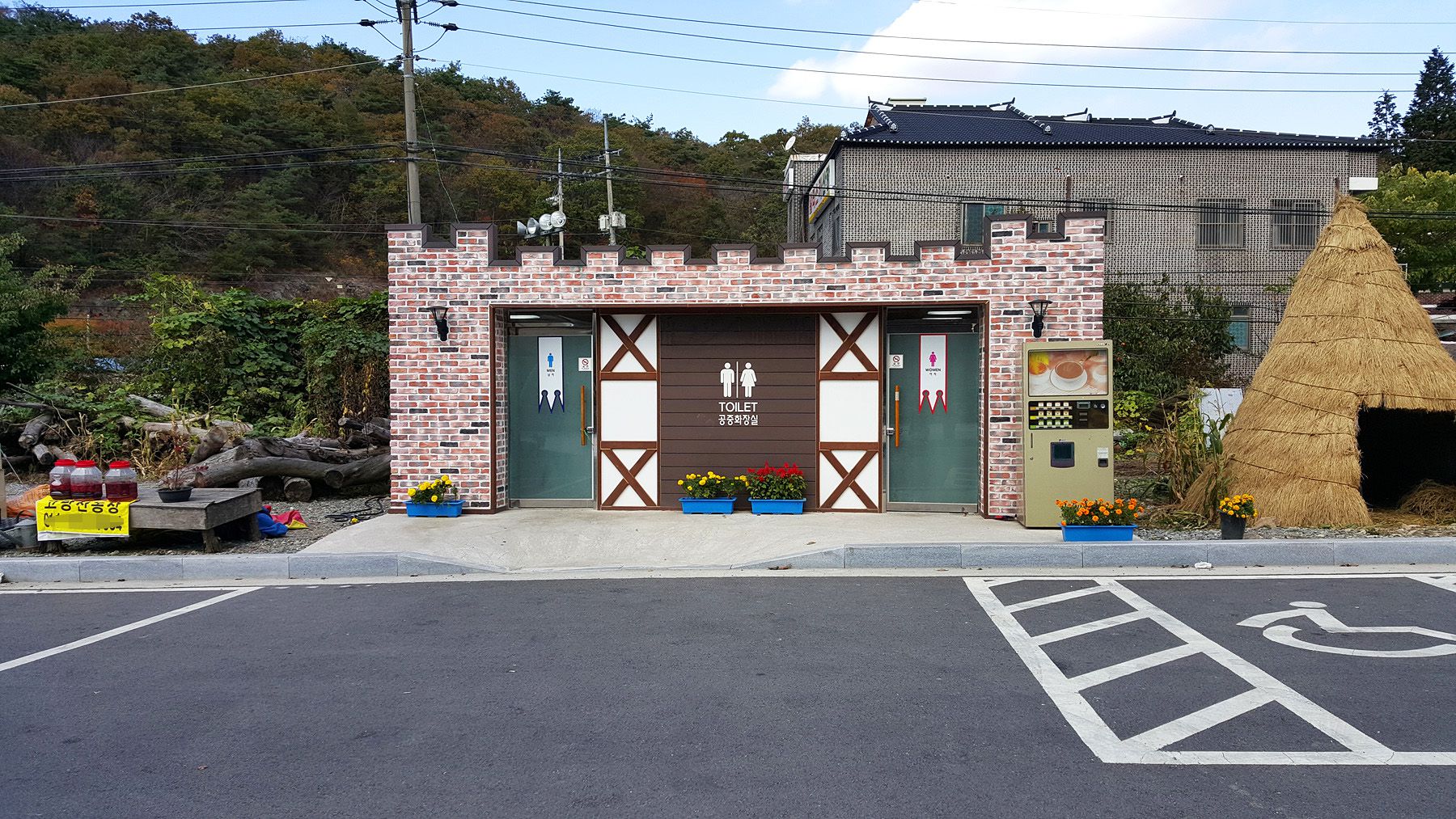 1년에 한번 축제가 진행되는 추령장승촌의 큰 앞마당에는 넓은 주차 공간과 함께 공중 화장실 등
