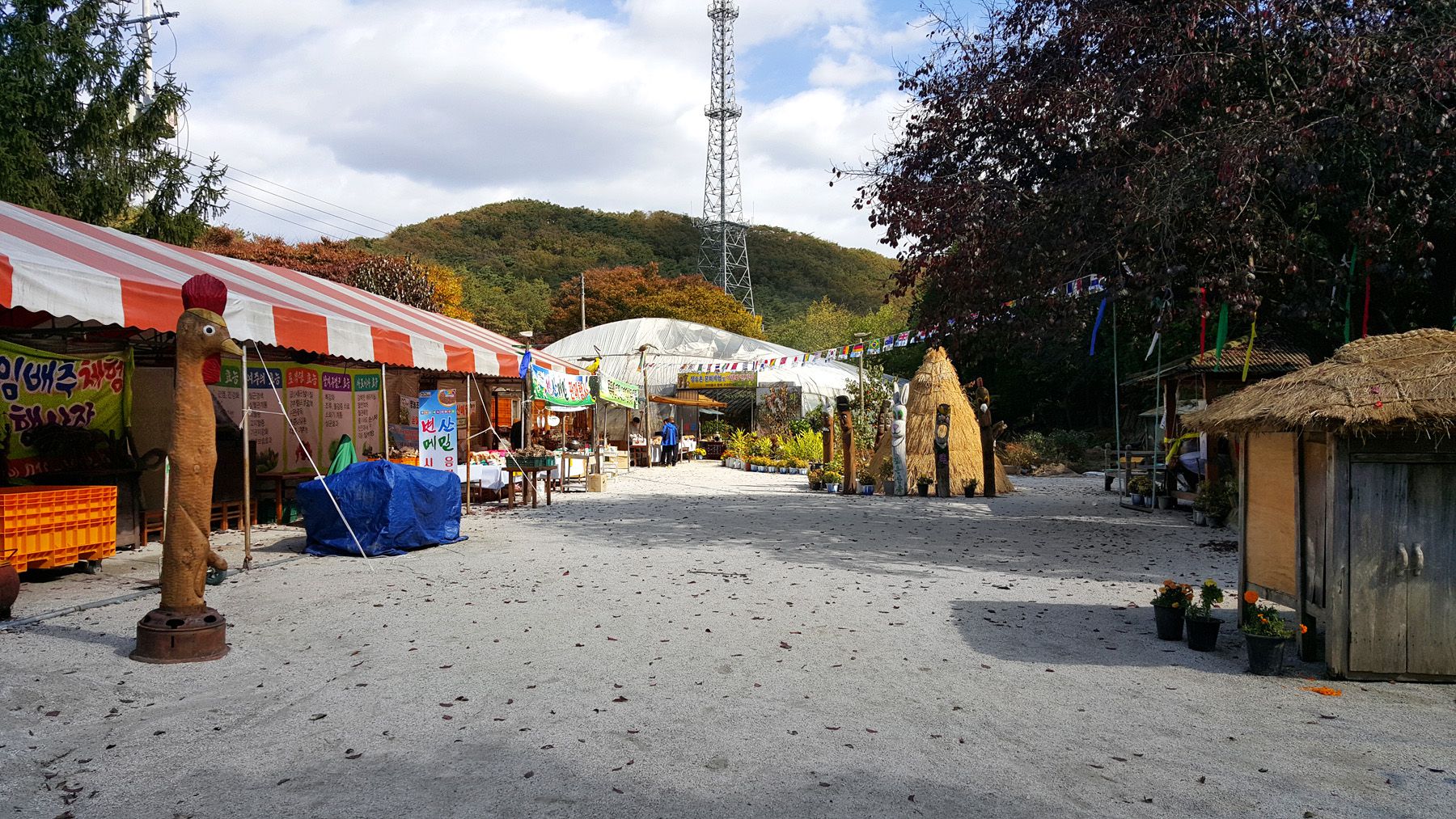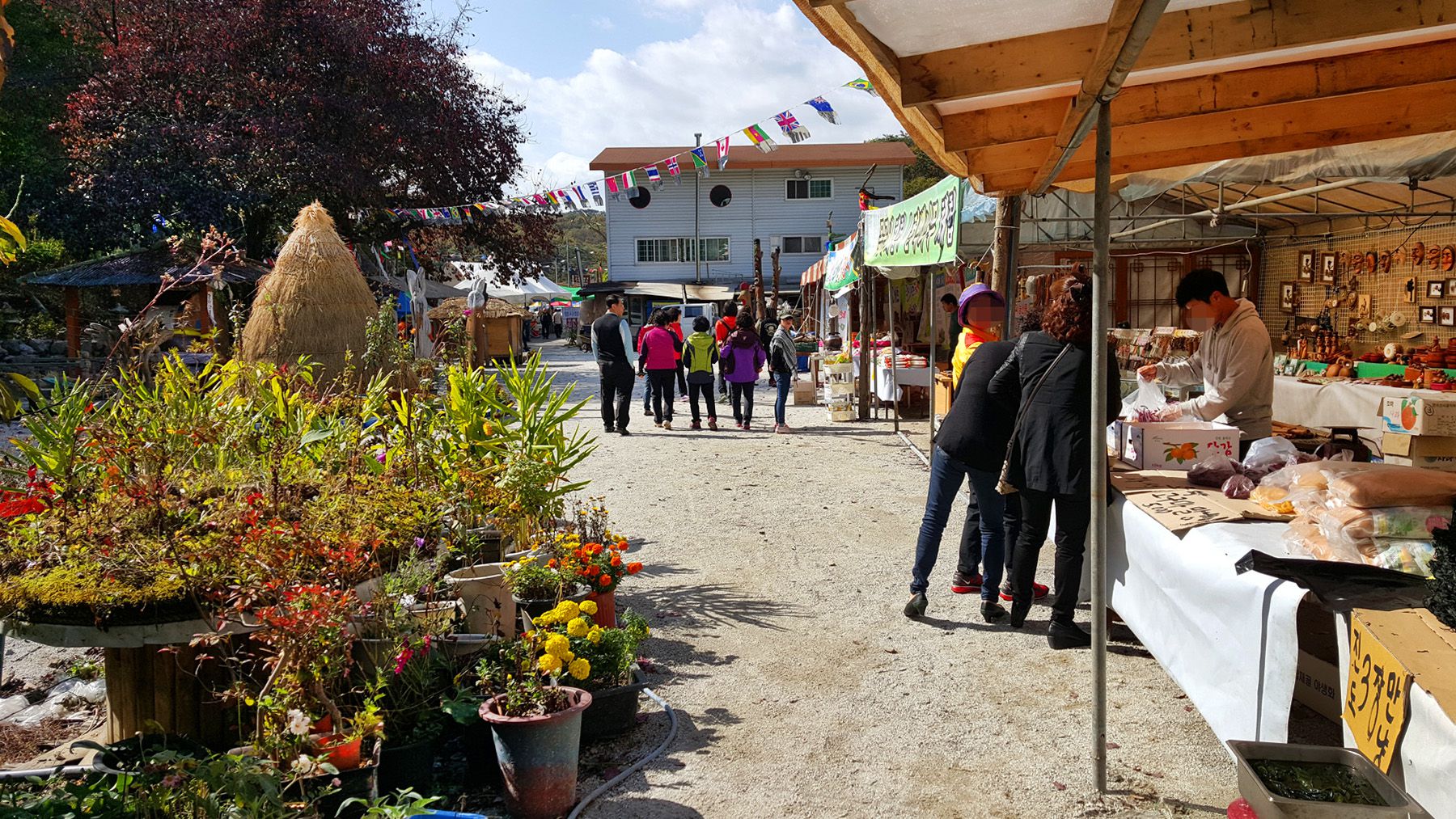 공공 시설물과 다양한 지역 특산품이 판매되는 장사가 열리는 공간이 마련되어 있습니다.