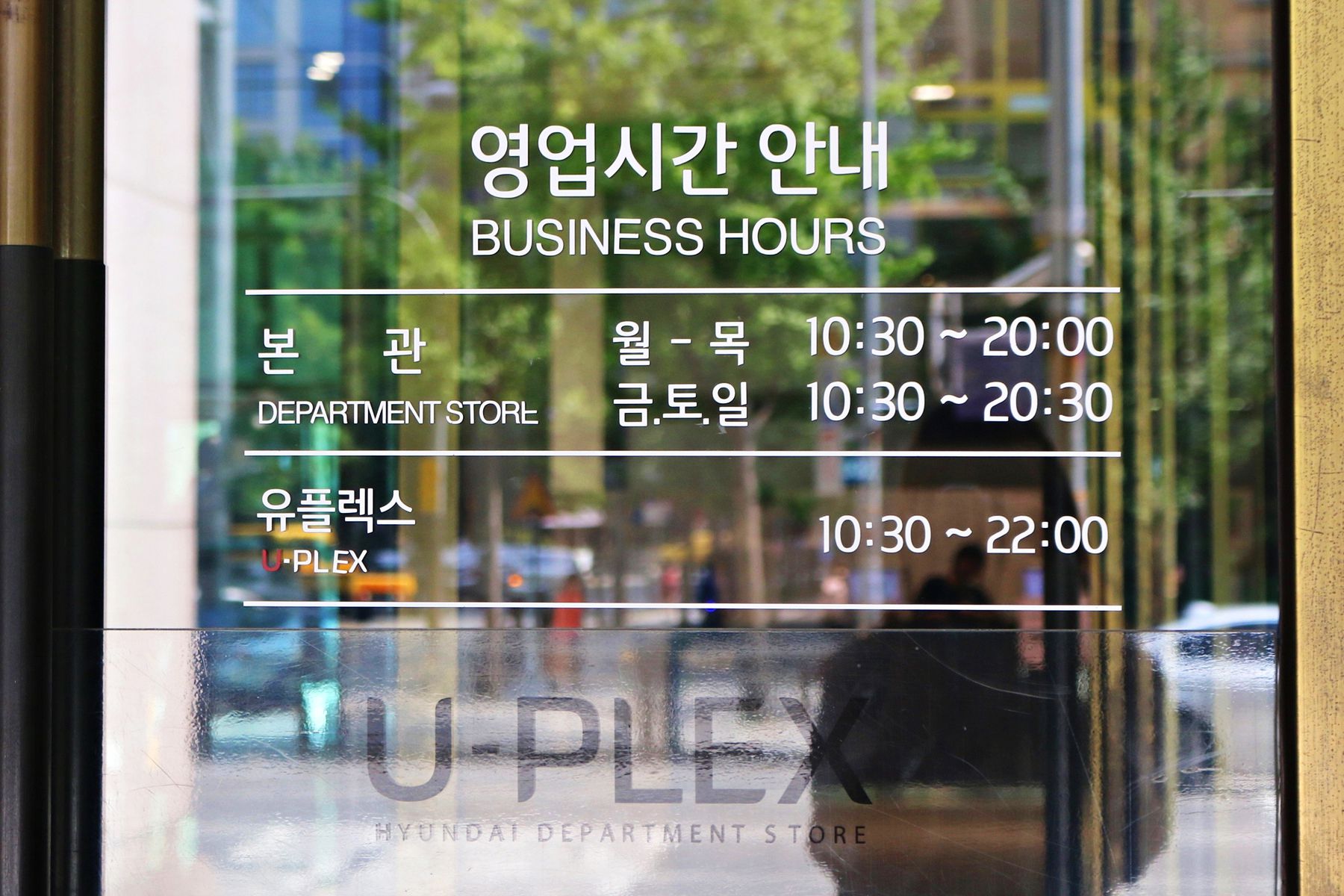 별관 지하에 위치한 현대백화점 유플렉스(U-PLEX)는 지상 1층 지하 6층으로 이루어져 있습니다.