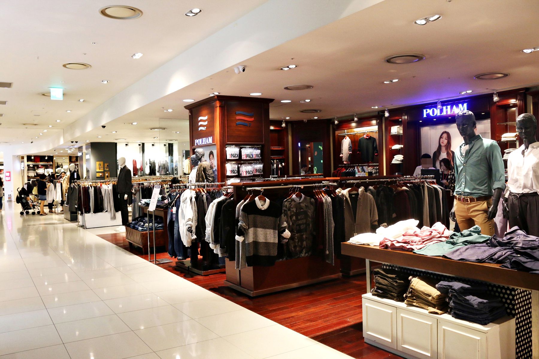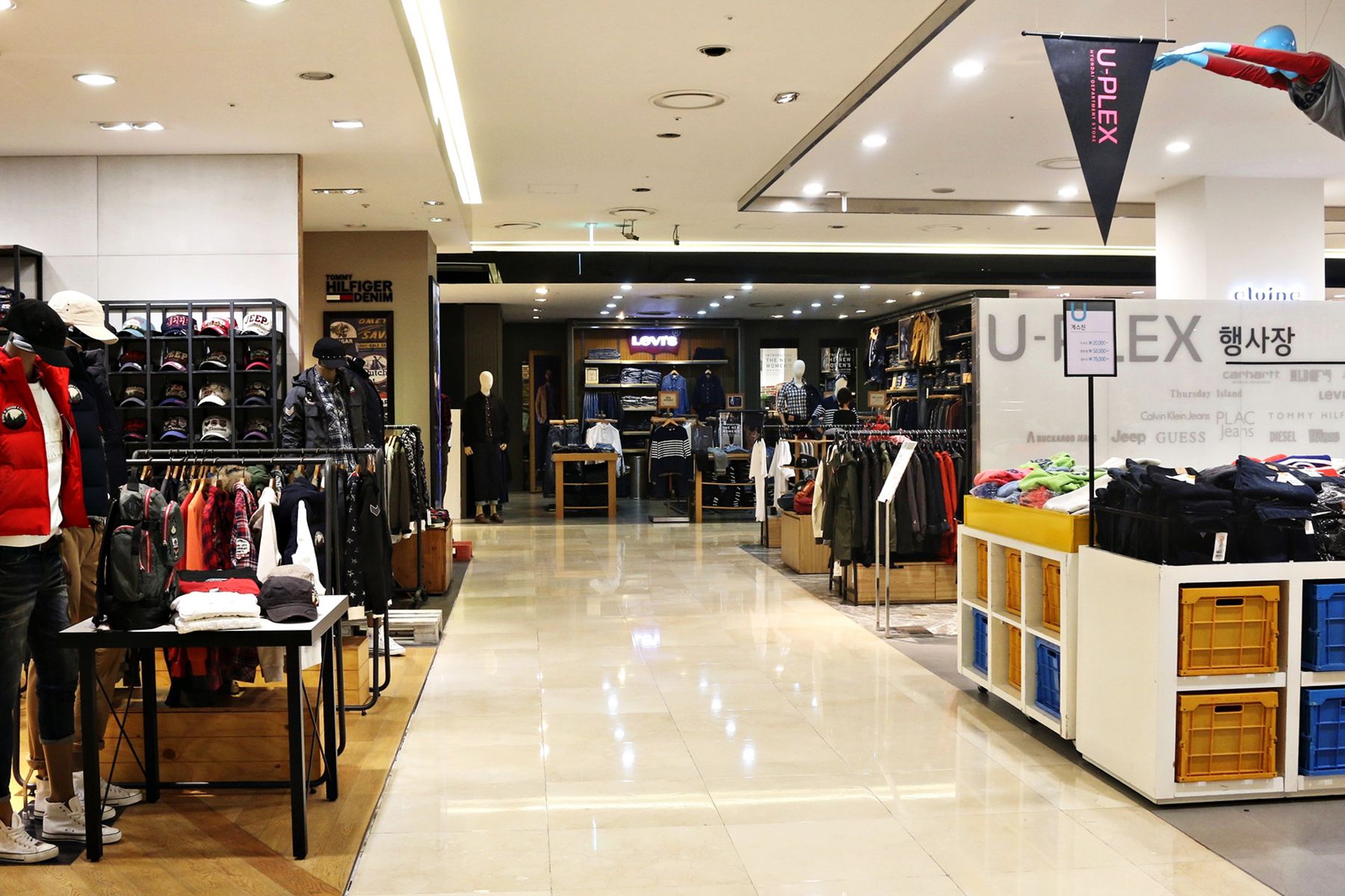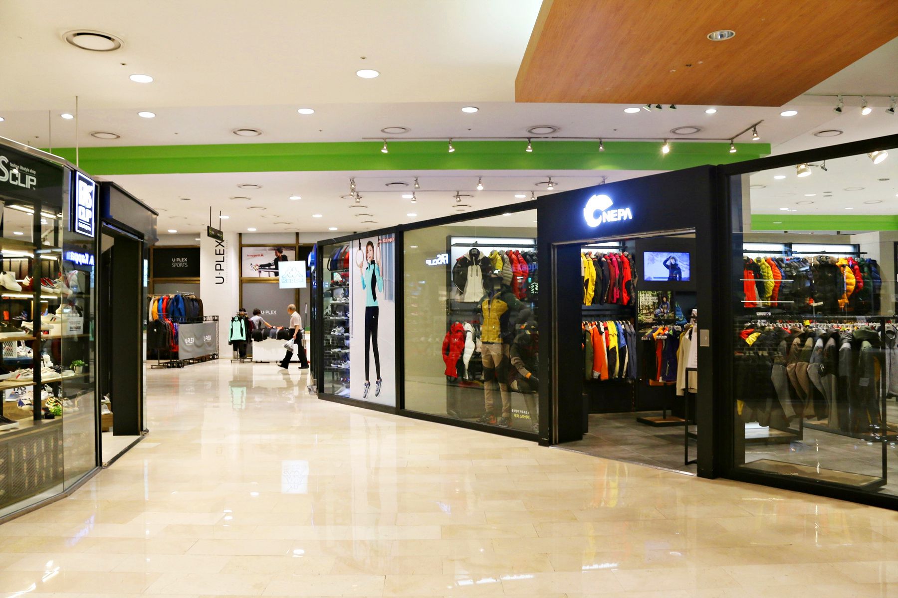 지상 1층의 스포츠 아웃도어 브랜드를 비롯하여 지하 1층의 진, 스포티 캐주얼과 지하 2층의 영캐주얼 및 유명 스포츠 브랜드샵 등