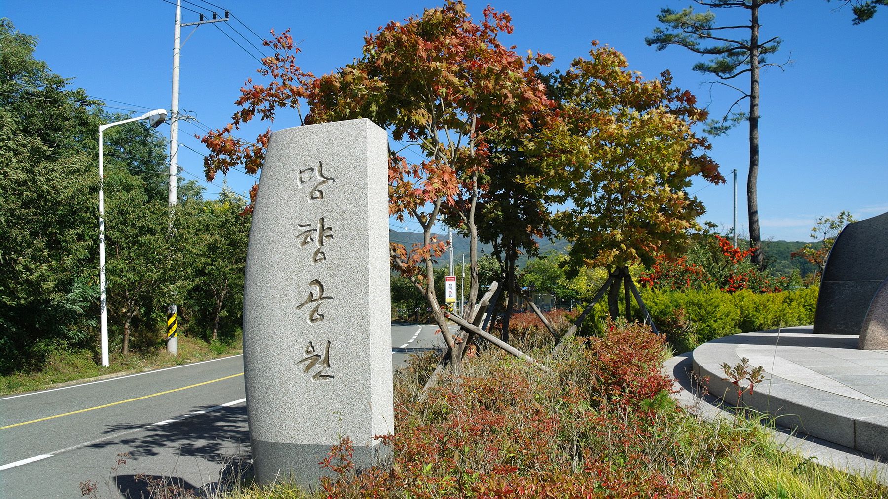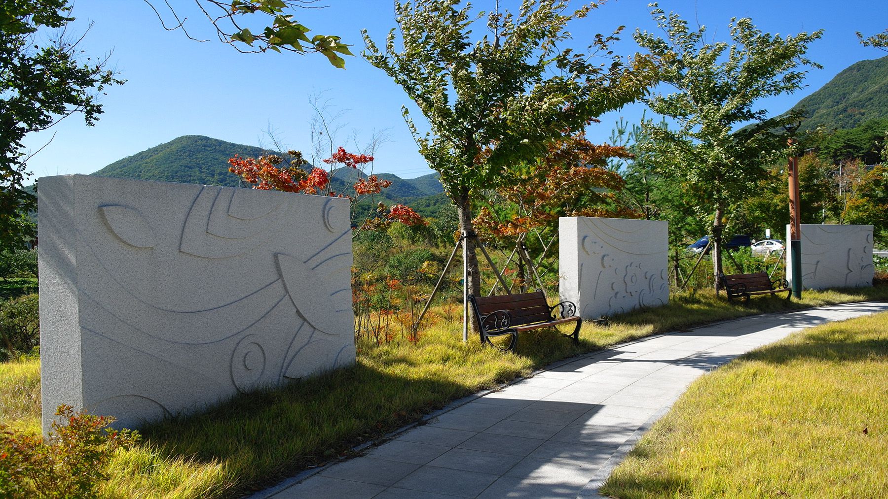 망향 쉼터나 장식벽들 사이에 의자에서 조용히 쉬어갈 수 있습니다.