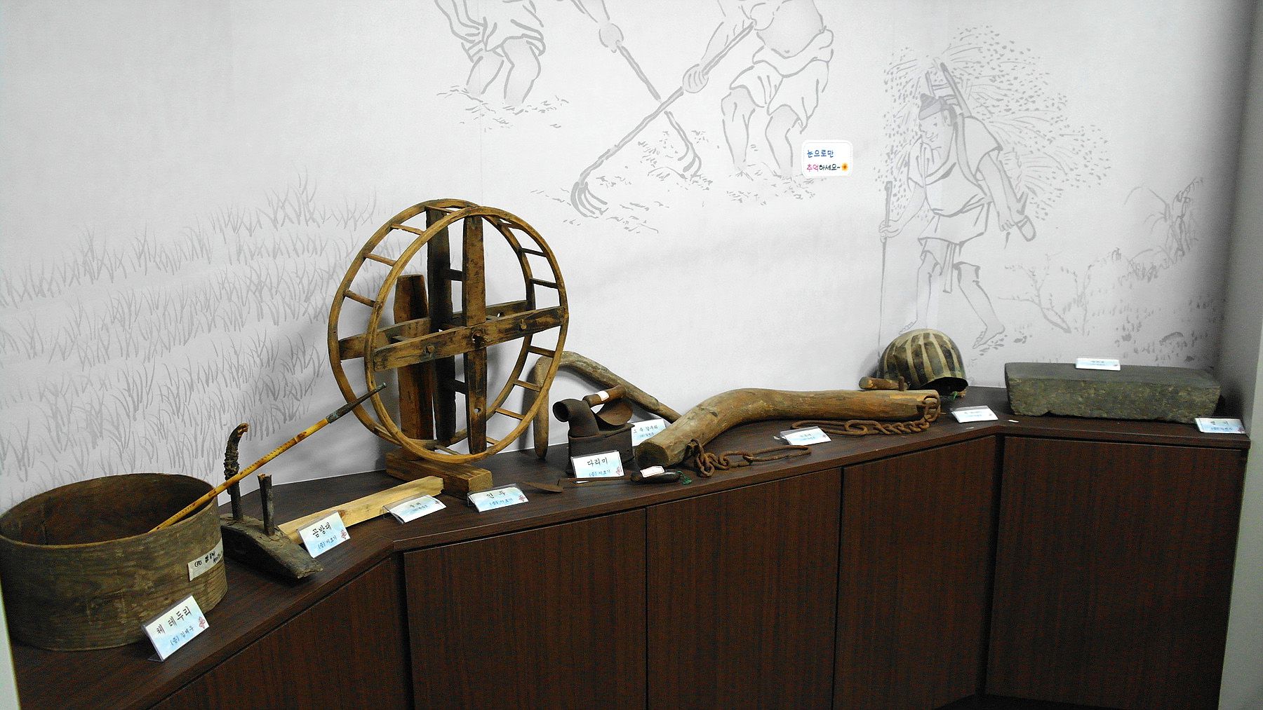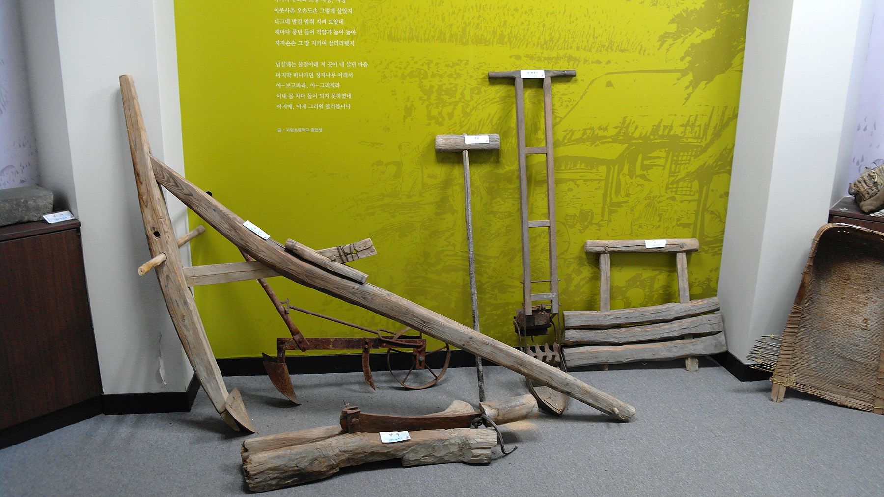 전시관 내에는 예전에 사용하던 농기구들이 전시되어 있습니다.