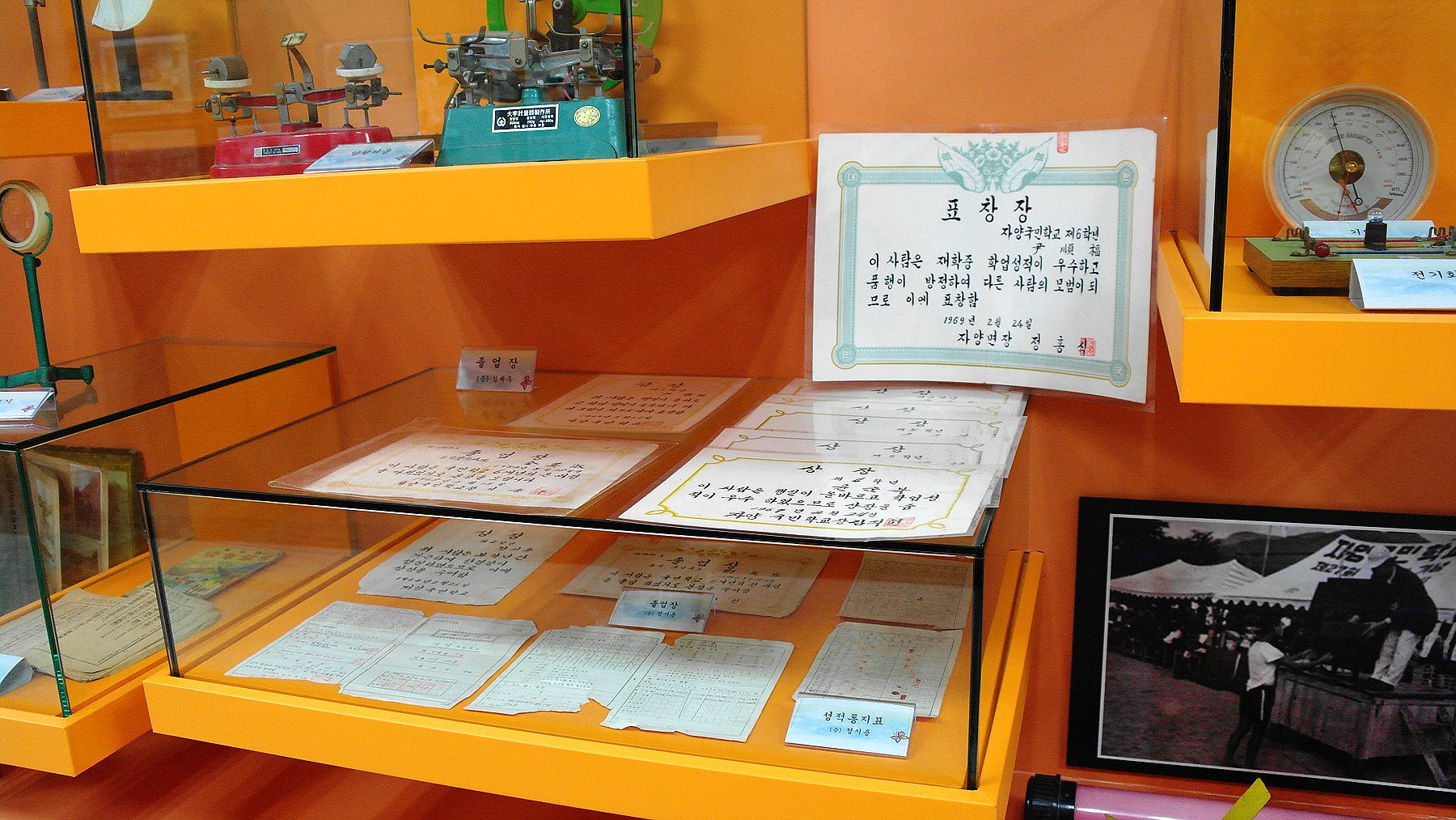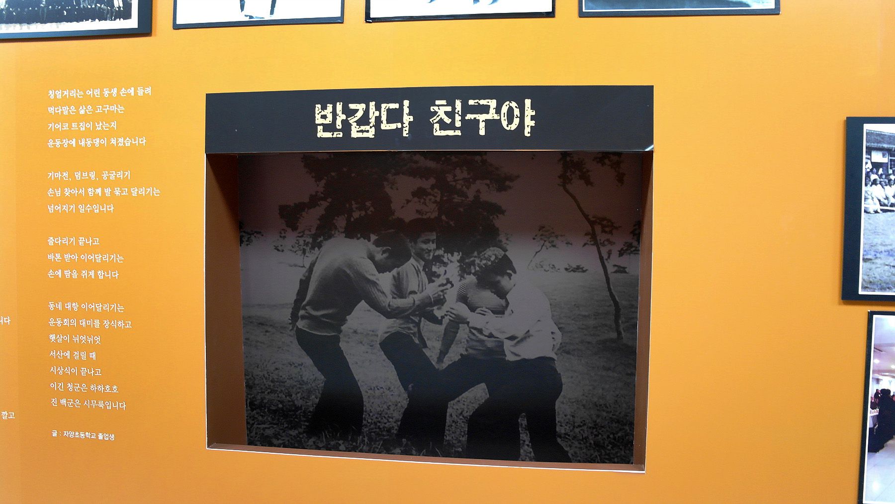 자양초등학교의 여러 물건들과 함께 행사 사진들이 고향의 느낌을 전해주고 있습니다.